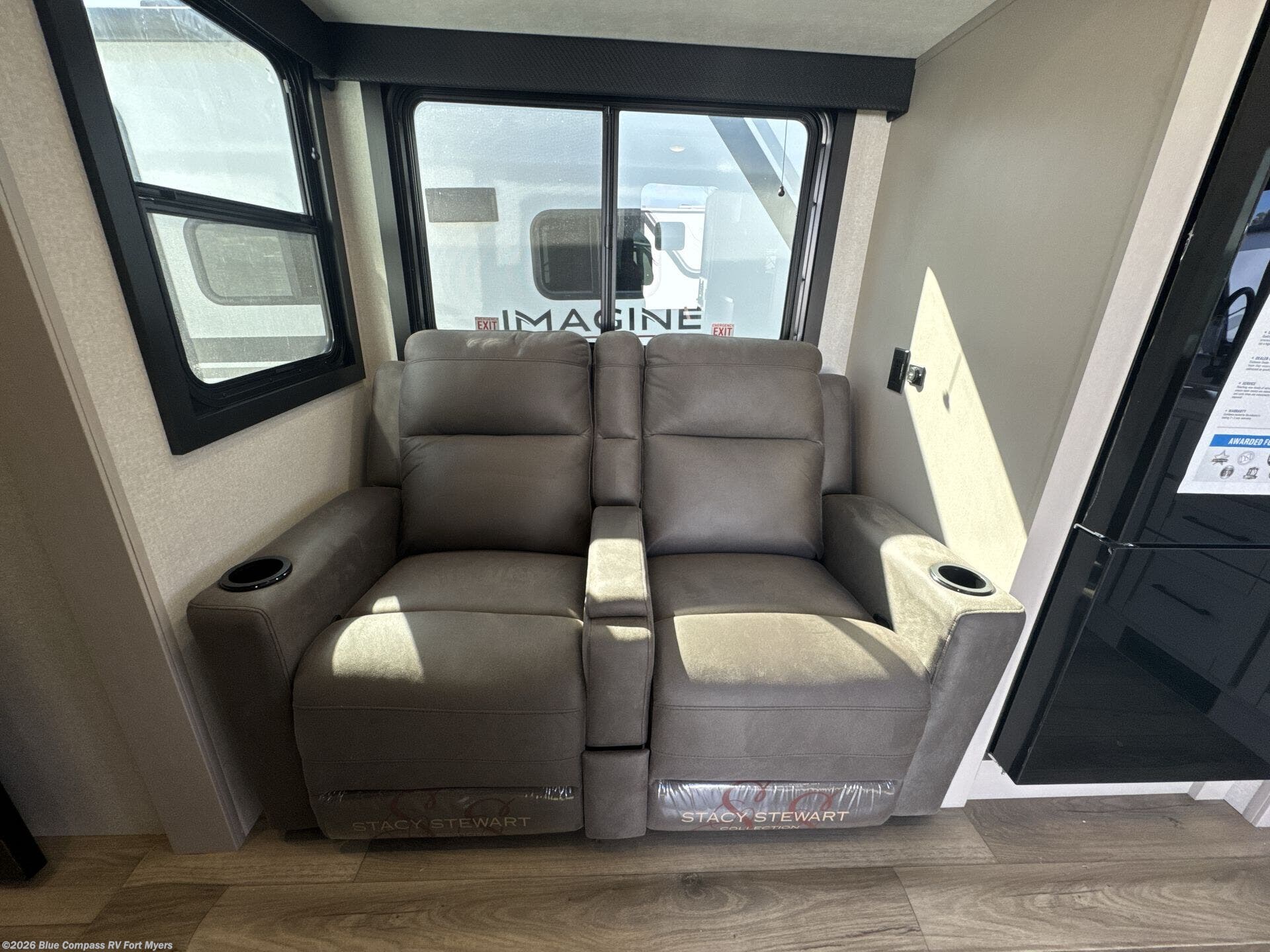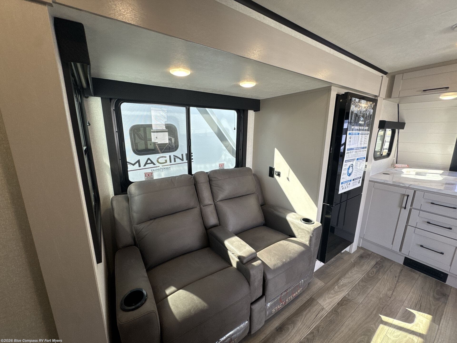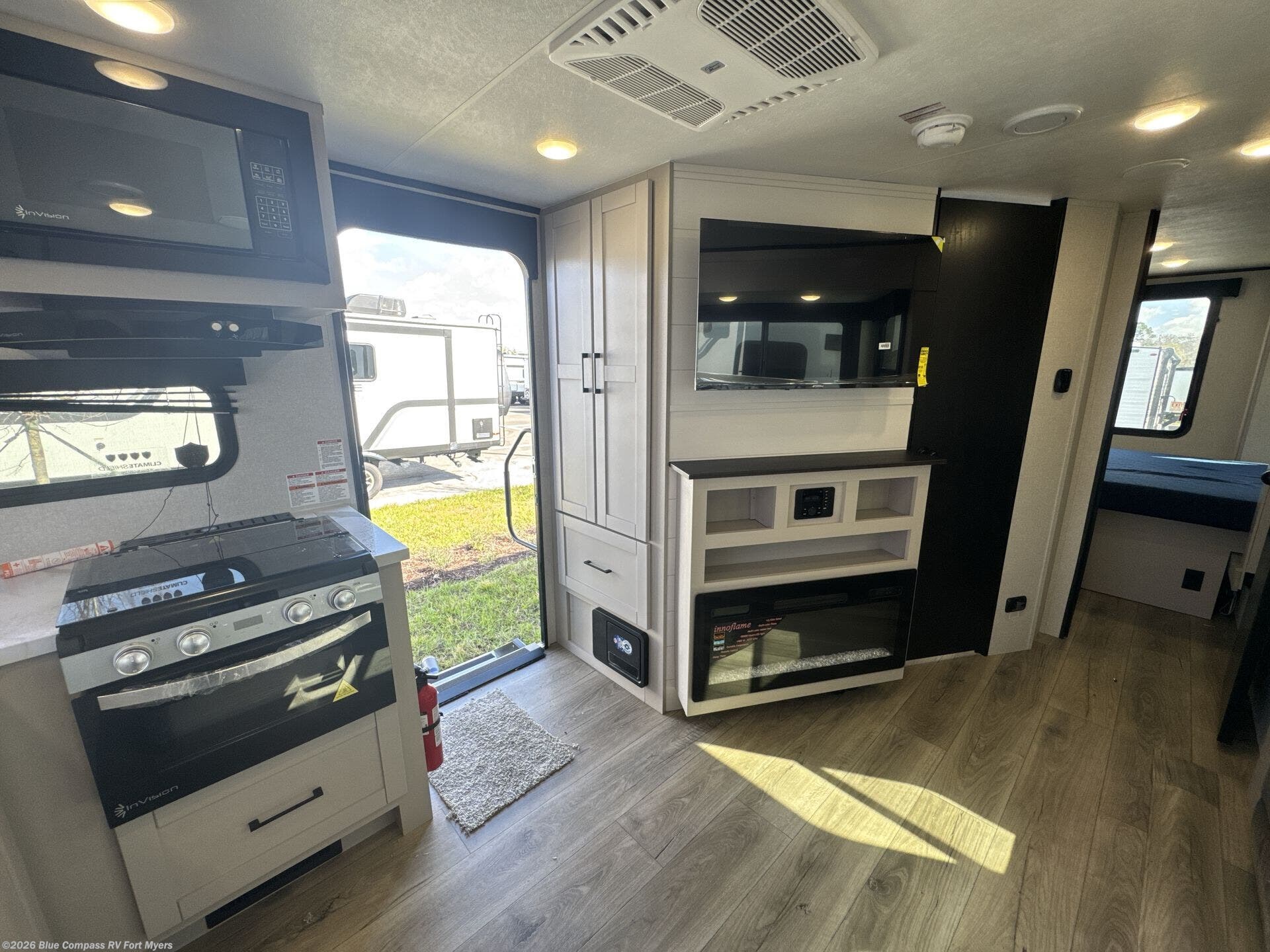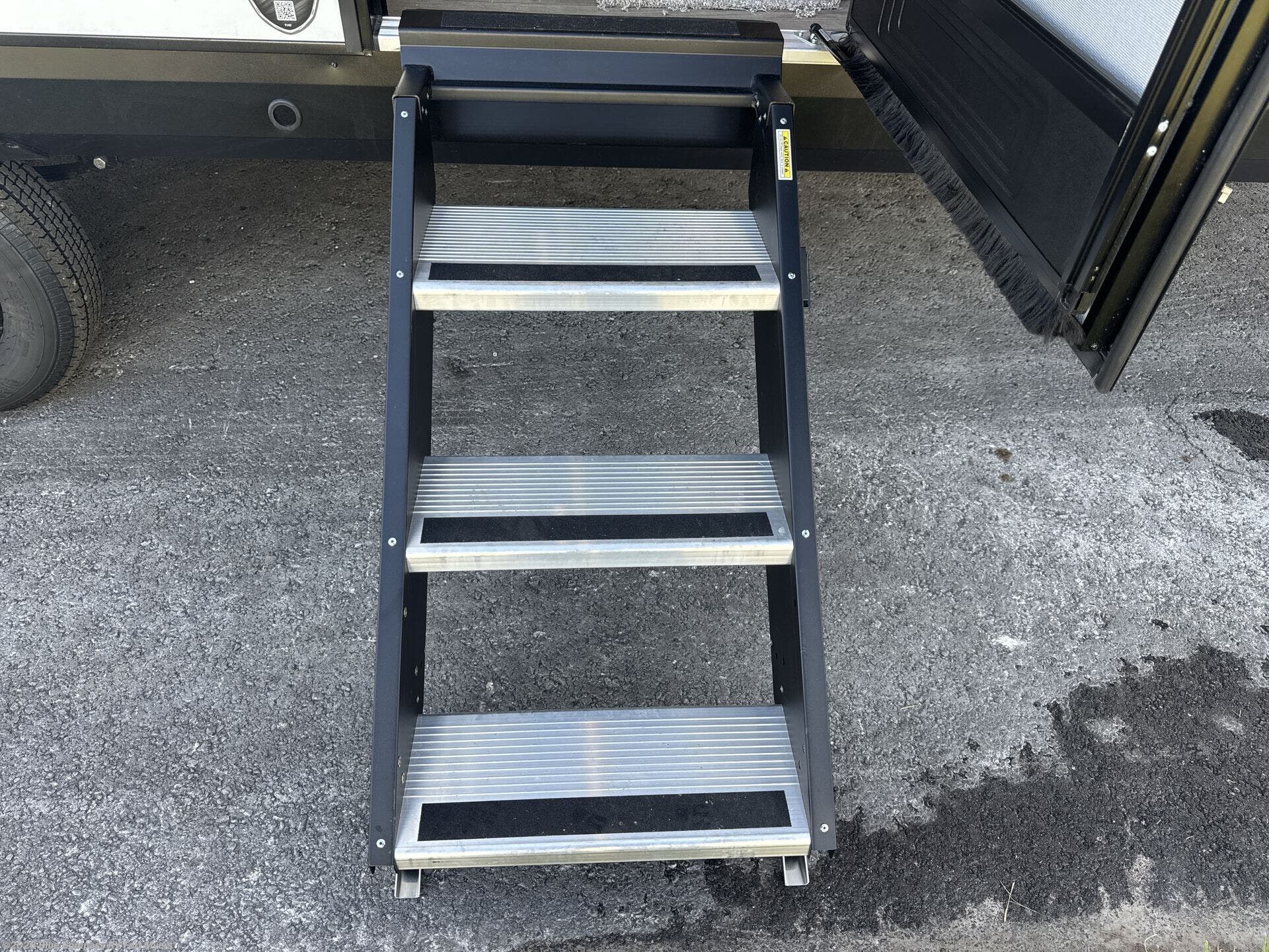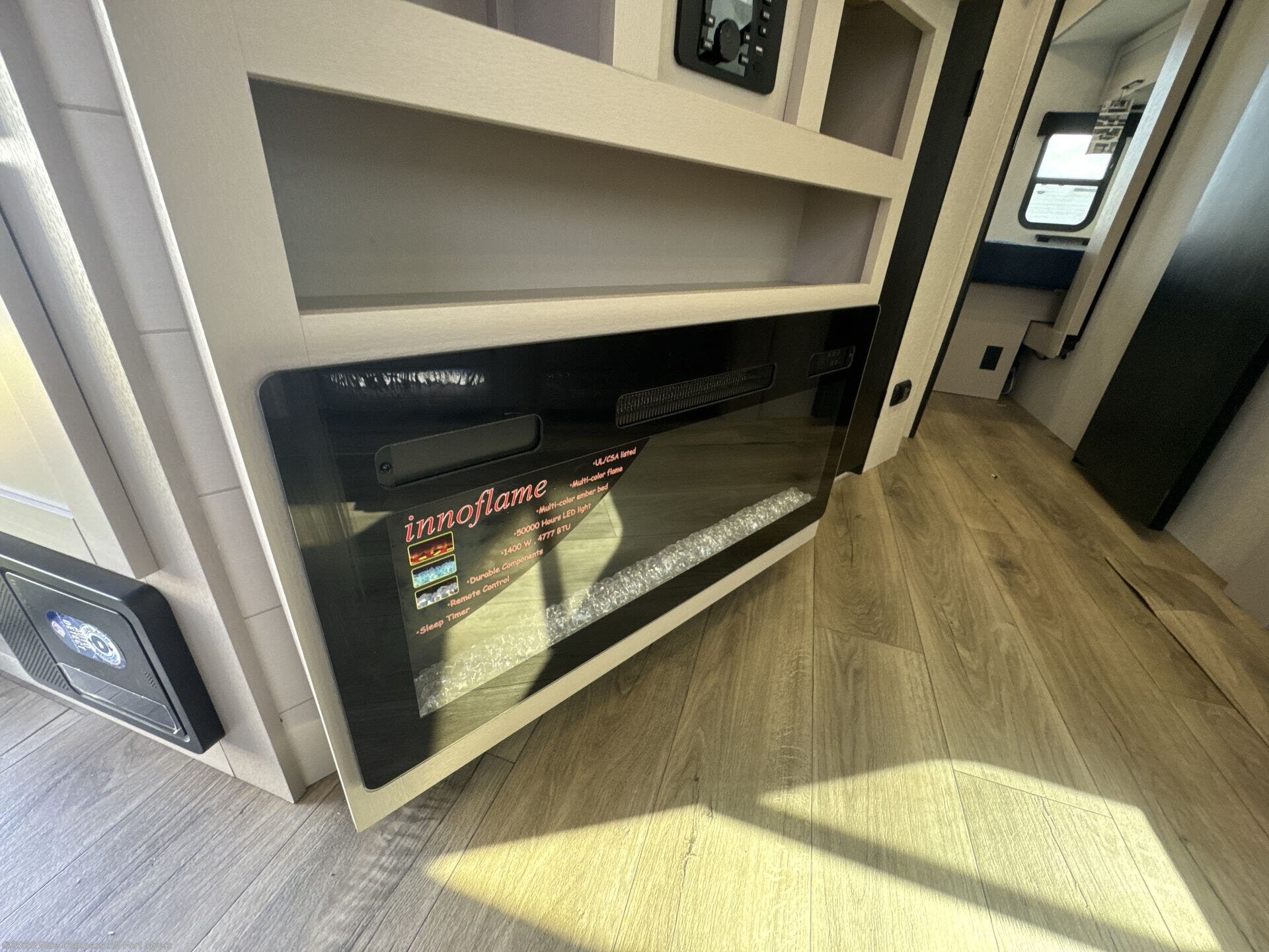 Step inside this spacious travel trailer through the front entry and you find the front kitchen that spans the width of the unit, providing plenty of counter space for meal prep. The kitchen is fully equipped with a stainless-steel sink, a decorative backsplash, a 3-burner cooktop, and an 11-cu. ft. 12V refrigerator, perfect for storing all your groceries. Overhead shelves offer convenient storage, and a pantry adds extra space for essentials. Next to the kitchen, you’ll find 60" theater seating, ideal for enjoying meals or watching your favorite shows on the LED Smart TV. As you move down the hall, you’ll come to a full bathroom featuring a radius shower and two entry doors for easy access. At the rear of the trailer, the comfortable bedroom features a 60" x 80" Queen bed, a sliding mirror door closet for added storage, and a second entry door to the exterior.