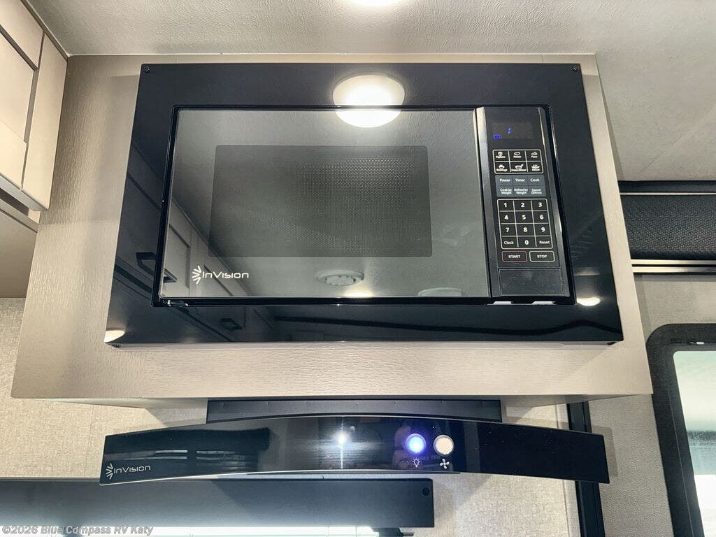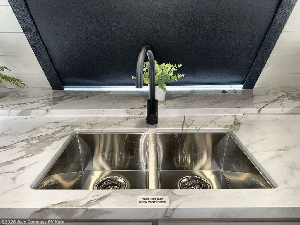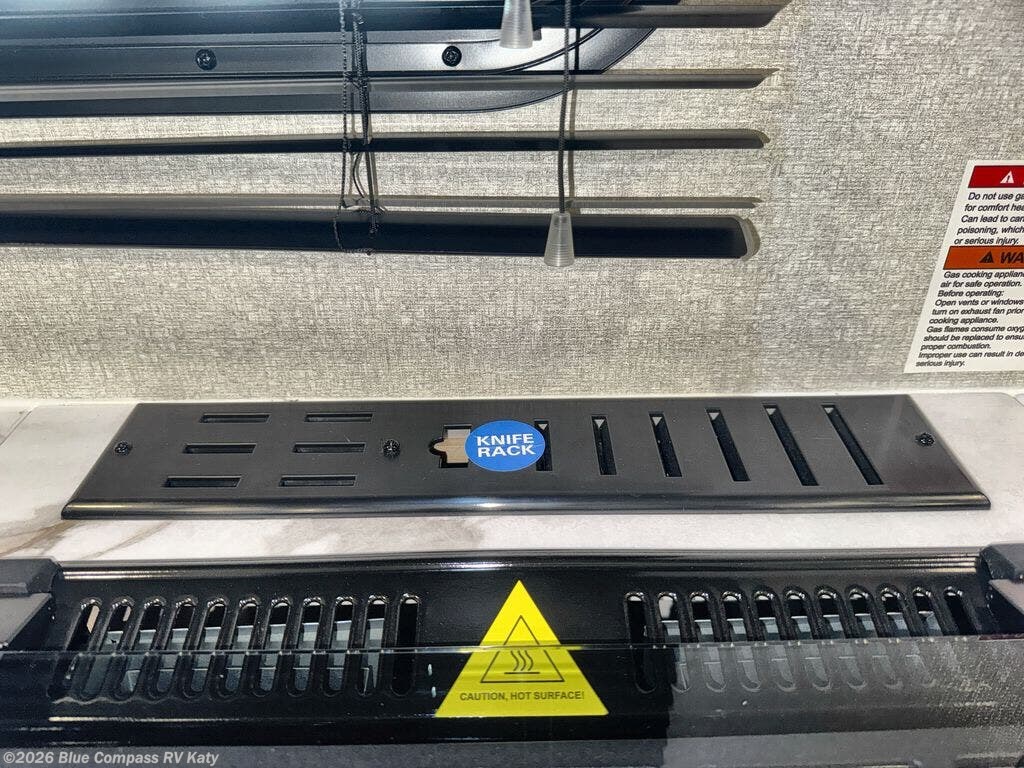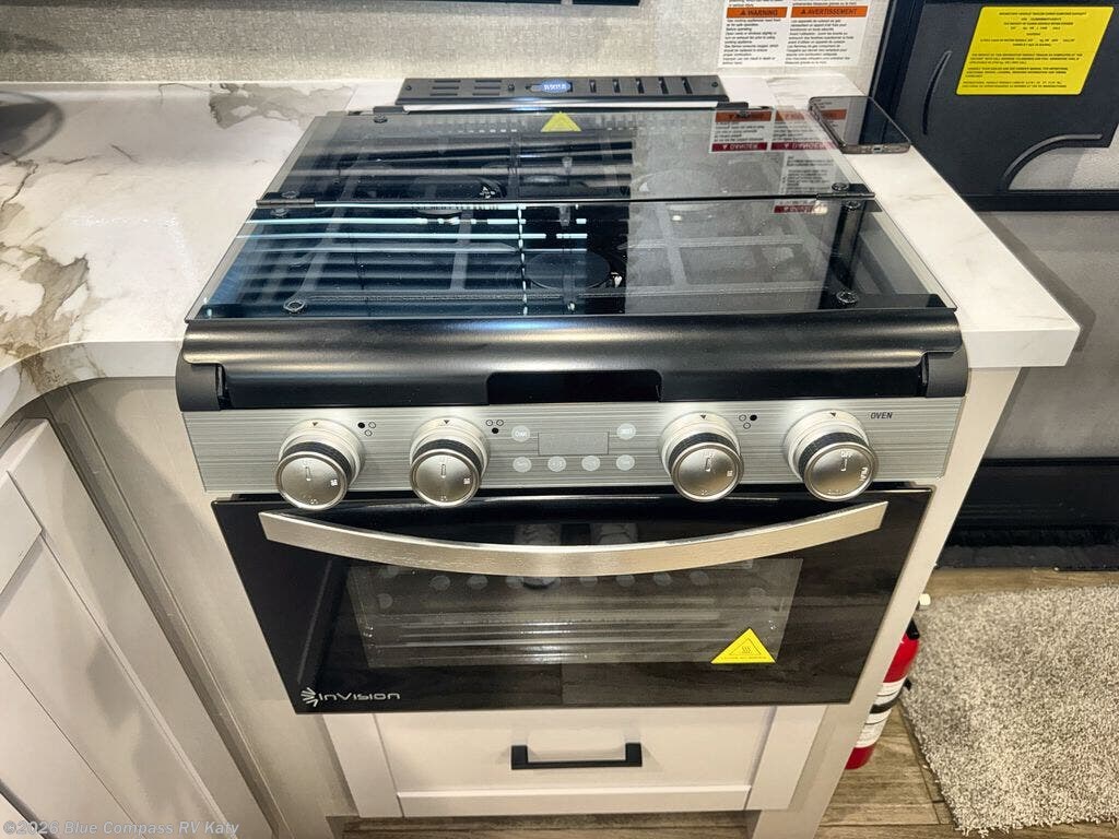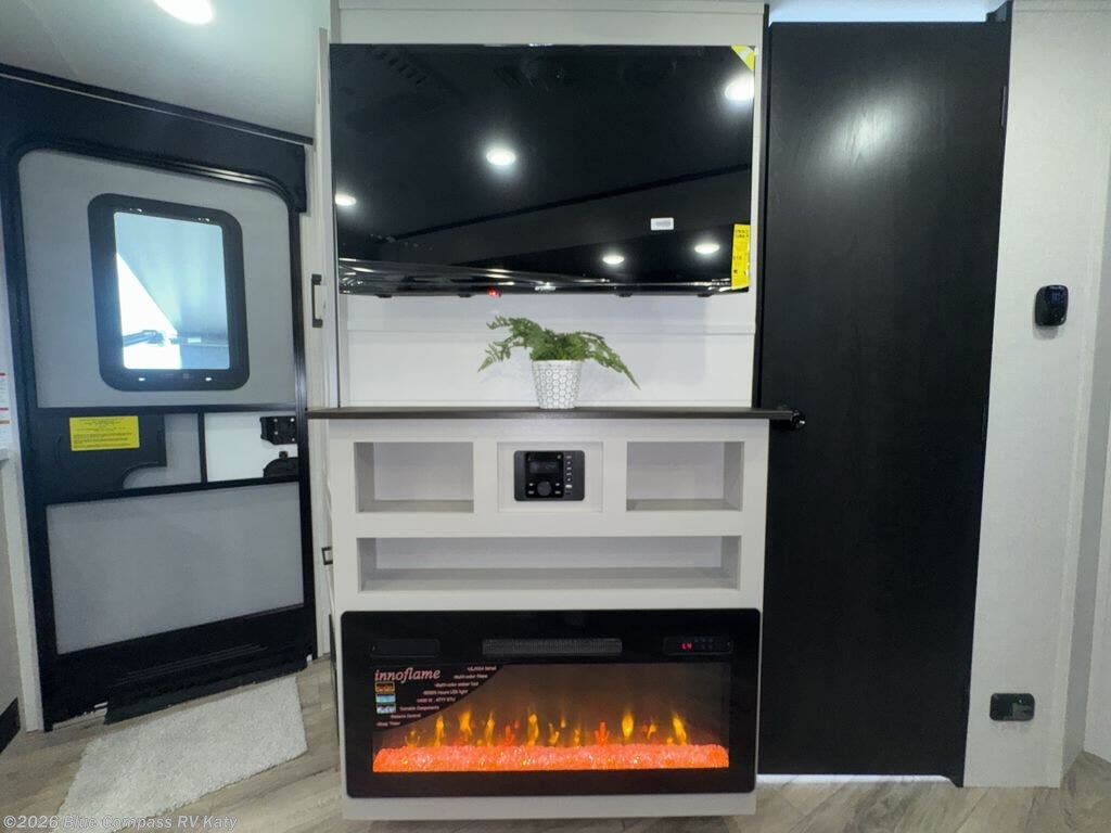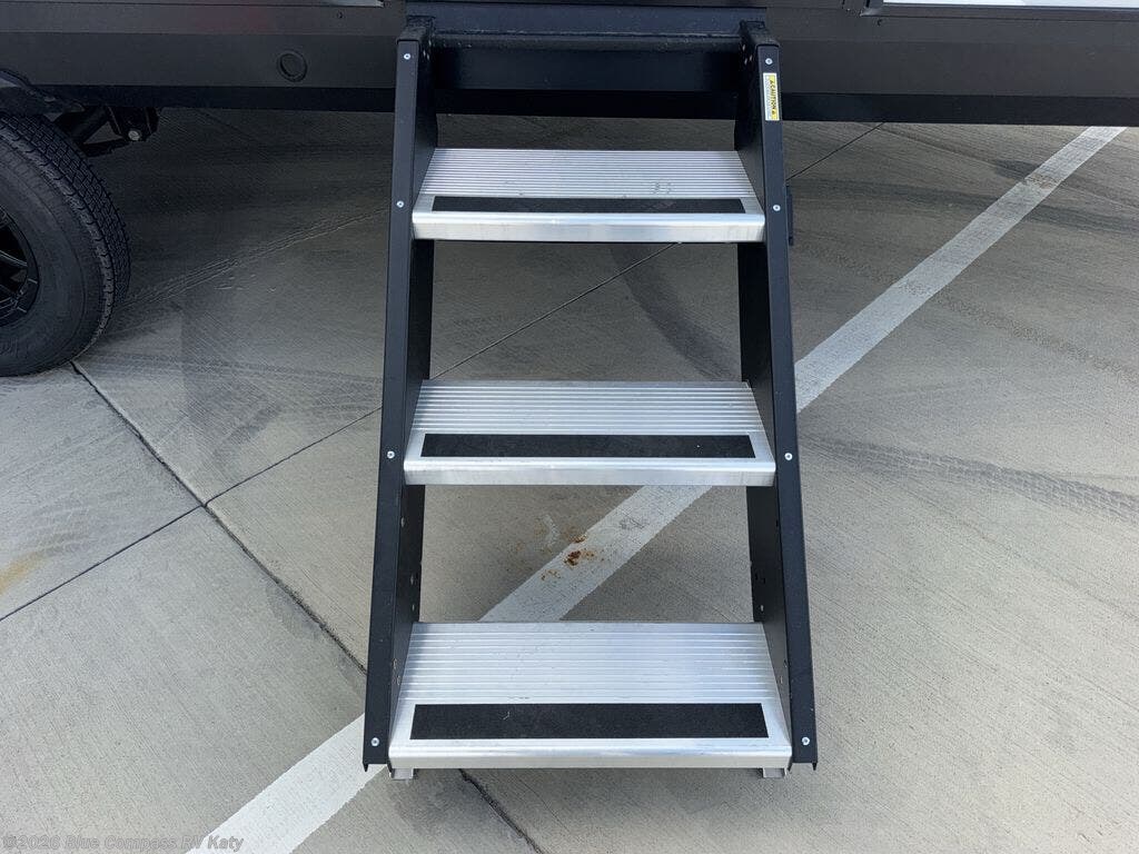 Step inside this spacious travel trailer through the front entry and you find the front kitchen that spans the width of the unit, providing plenty of counter space for meal prep. The kitchen is fully equipped with a stainless-steel sink, a decorative backsplash, a 3-burner cooktop, and an 11-cu. ft. 12V refrigerator, perfect for storing all your groceries. Overhead shelves offer convenient storage, and a pantry adds extra space for essentials. Next to the kitchen, you’ll find 60" theater seating, ideal for enjoying meals or watching your favorite shows on the LED Smart TV. As you move down the hall, you’ll come to a full bathroom featuring a radius shower and two entry doors for easy access. At the rear of the trailer, the comfortable bedroom features a 60" x 80" Queen bed, a sliding mirror door closet for added storage, and a second entry door to the exterior.