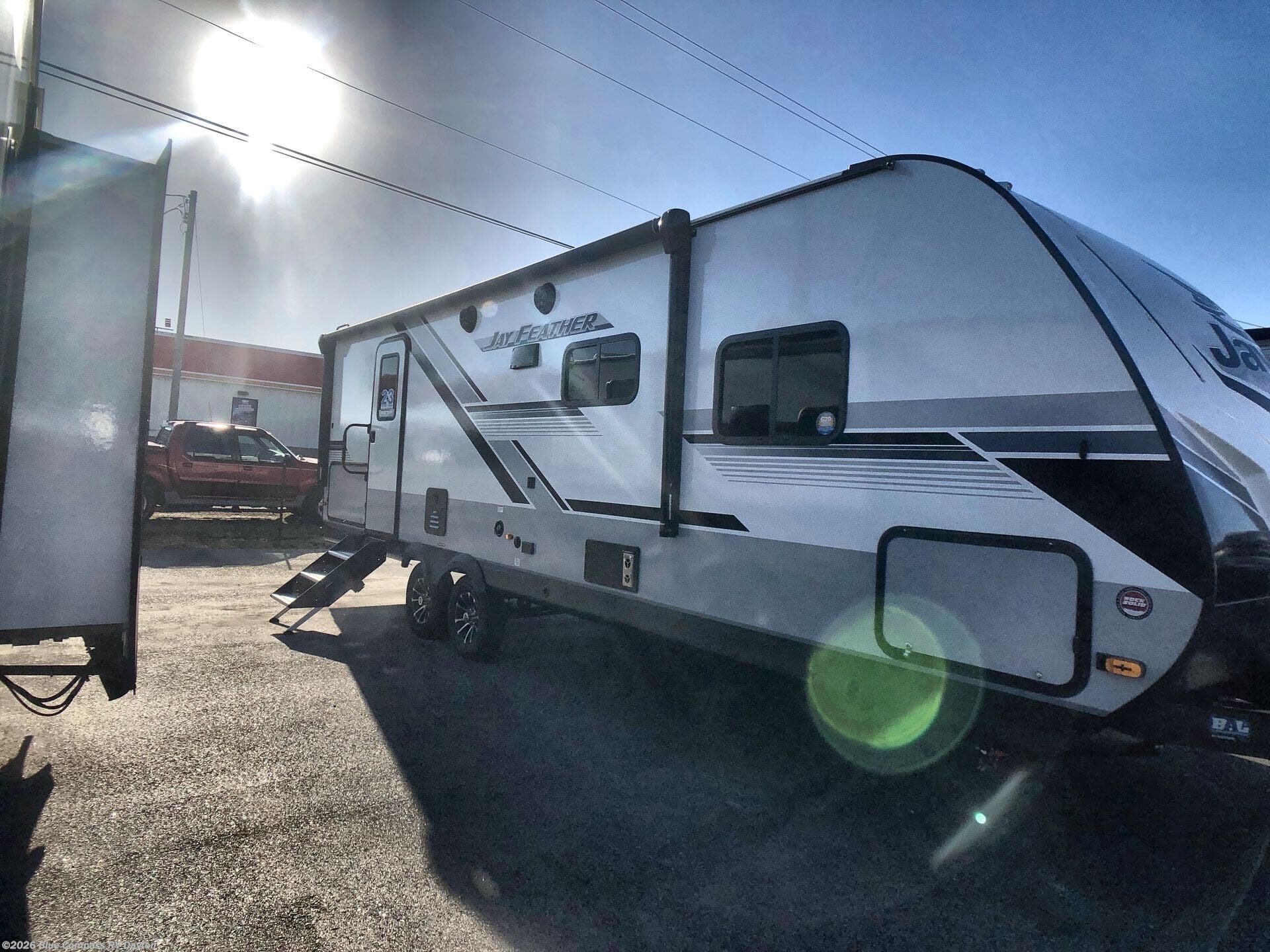 With any Jay Feather travel trailer by Jayco, you will enjoy lightweight towing, convenient exterior amenities, and at-home comforts inside! The Overlander 1 Solar Package included within the Jay Sport Package comes with a 200W solar panel and a 30-amp digital controller so you can enjoy some off-grid camping. There is also a modern graphics package, Solid fold-down step with aluminum tread steps on the main entry doorstep, and Climate Shield 0 -100° F tested weather insulation package that will allow you to camp in various types of climates. The Customer Value Package will make time outdoors easier than ever with a power tongue jack and Automotive-style aluminum rims, plus radial tires with self-adjusting electric brakes. More exterior features include a Keyed-Alike doors, a Magnum Truss roof system, and the list goes on! And we haven't even touched on the interior comforts, like the seamless countertops and Residential vinyl flooring throughout, decorative kitchen backsplash, handcrafted hardwood door/drawer fronts, and multiple USB charging ports to keep you going!