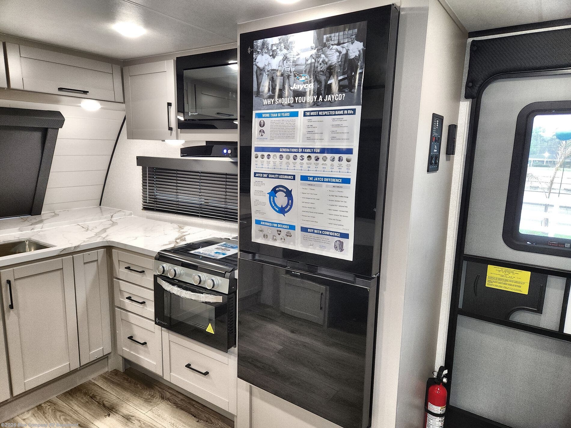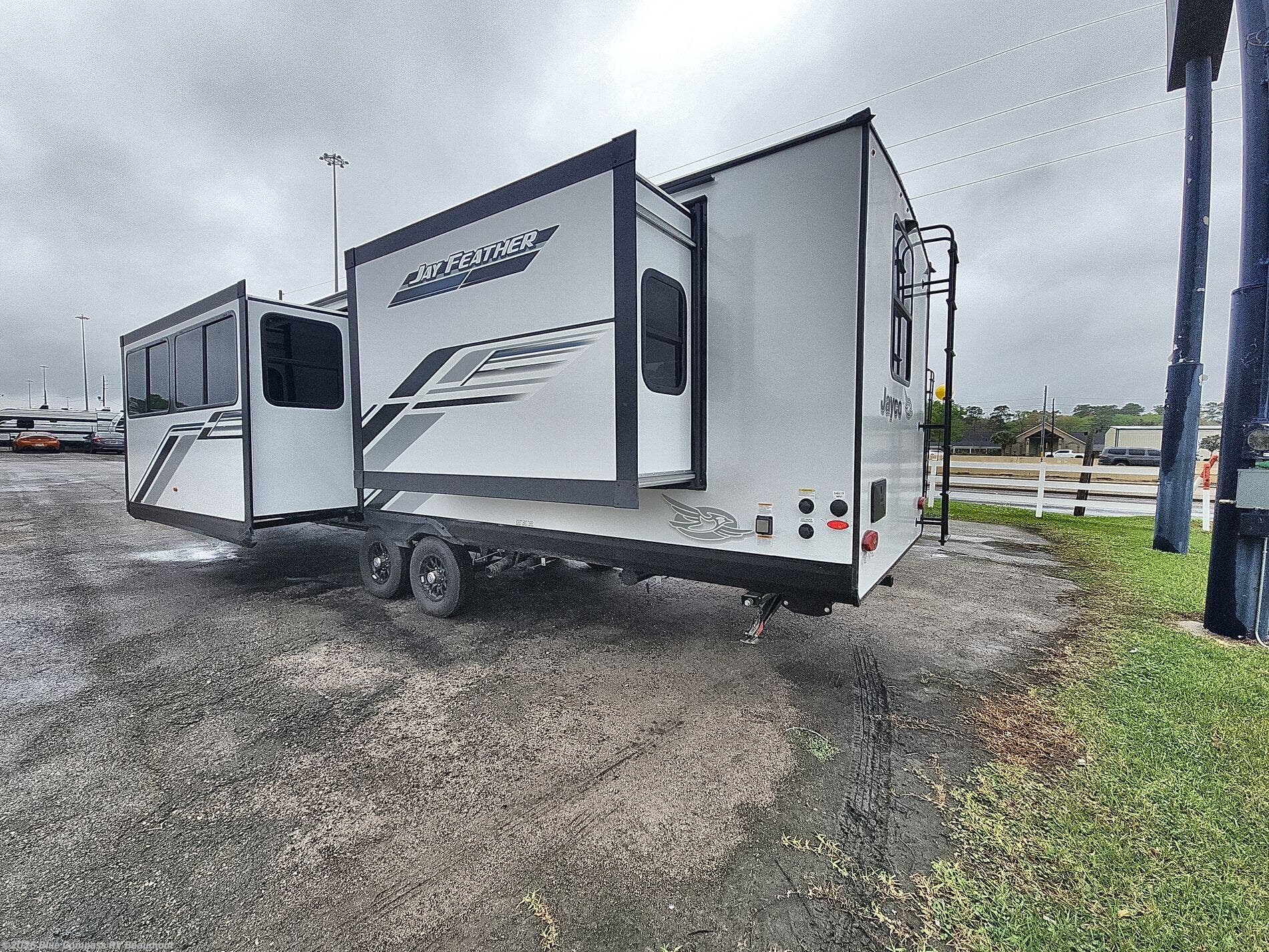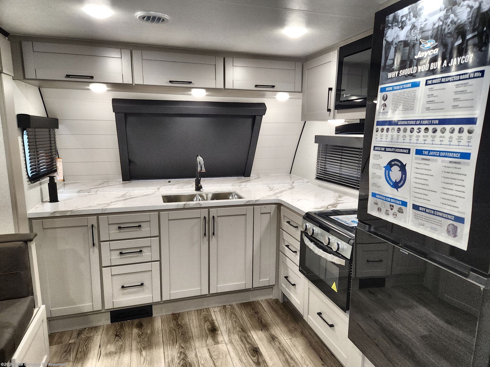 With any Jay Feather travel trailer by Jayco, you will enjoy lightweight towing, convenient exterior amenities, and at-home comforts inside! The Overlander 1 Solar Package included within the Jay Sport Package comes with a 200W solar panel and a 30-amp digital controller so you can enjoy some off-grid camping. There is also a modern graphics package, Solid fold-down step with aluminum tread steps on the main entry doorstep, and Climate Shield 0 -100° F tested weather insulation package that will allow you to camp in various types of climates. The Customer Value Package will make time outdoors easier than ever with a power tongue jack and Automotive-style aluminum rims, plus radial tires with self-adjusting electric brakes. More exterior features include a Keyed-Alike doors, a Magnum Truss roof system, and the list goes on! And we haven't even touched on the interior comforts, like the seamless countertops and Residential vinyl flooring throughout, decorative kitchen backsplash, handcrafted hardwood door/drawer fronts, and multiple USB charging ports to keep you going!