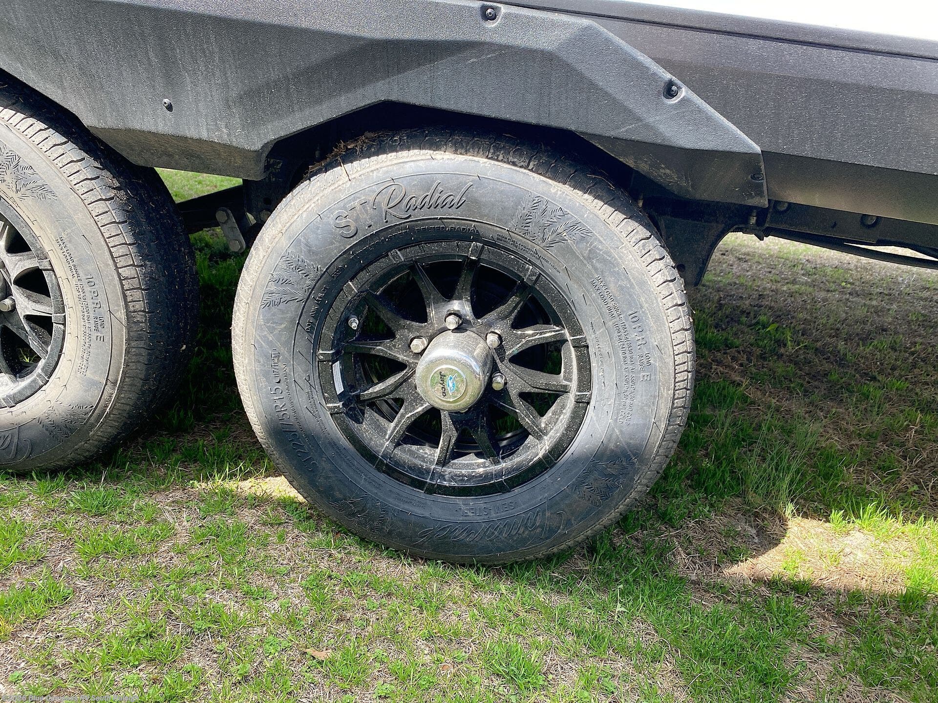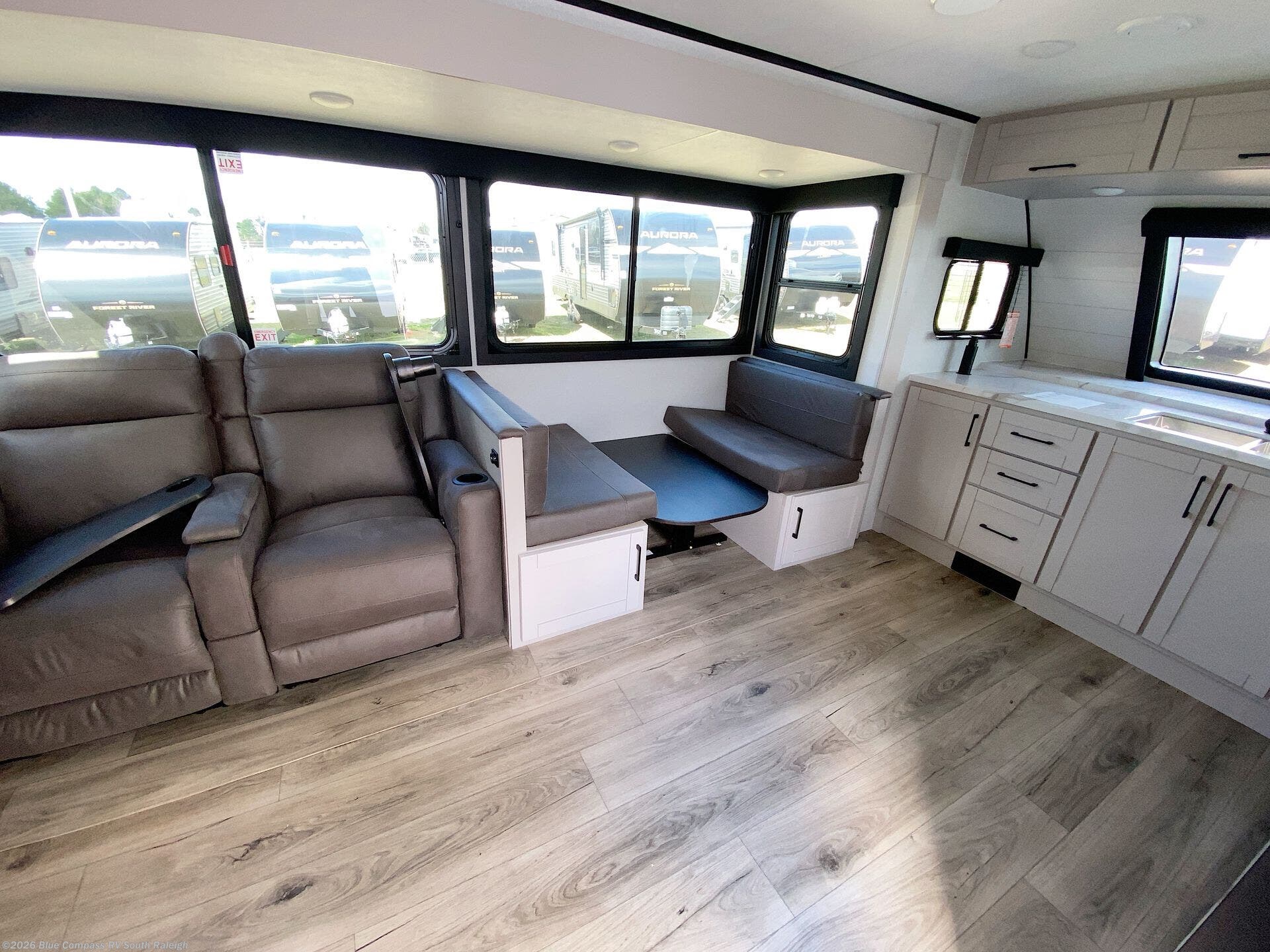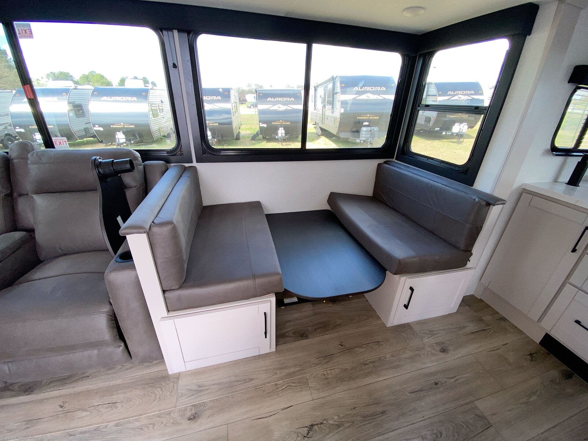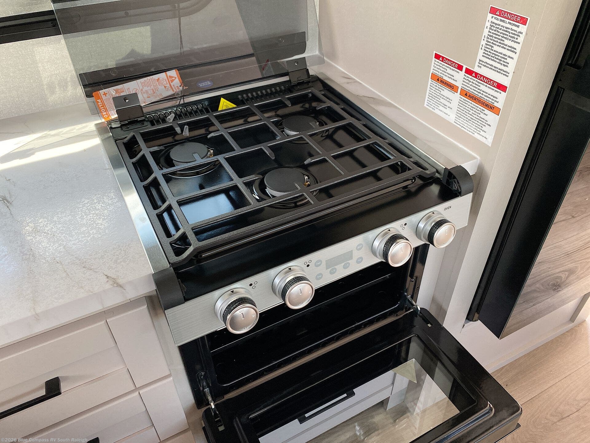 This front kitchen travel trailer will be perfect for camping trips to the lake or woods! The chef will appreciate ample counter space to prep meals plus an 11 cu. ft. 12V refrigerator to store leftovers, the front kitchen also has overhead cabinets and a pantry for storing your snacks and dry goods without worrying about space. Your crew can dine at the booth dinette, then play a game after dinner is cleaned up, this also works as a sleeping space if needed. There is also a theater seat across from the entertainment center with an LED Smart TV to make it a movie night. The bathroom has two entry doors for comfort and easy access along with a radial shower and medicine cabinet. A rear private bedroom is sure to make you feel right at home with a 60" x 80" queen bed, dual wardrobes, and a dresser to keep your things organized. You'll also find one of the dual entry doors here for convenience!