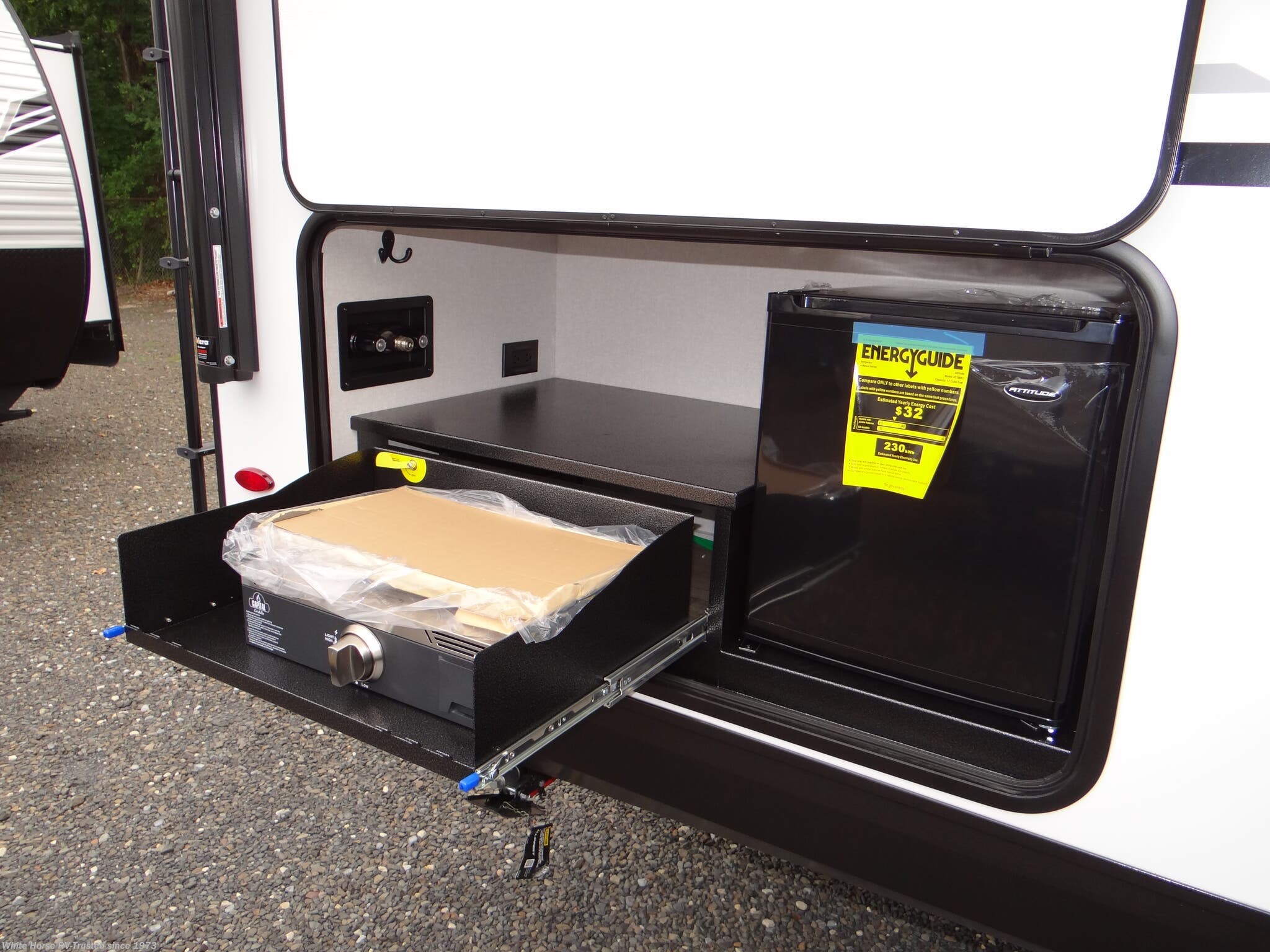 Exterior Speakers, External Shower, Fiberglass Sidewalls, Outside Kitchen, Power Awning, Slideout -