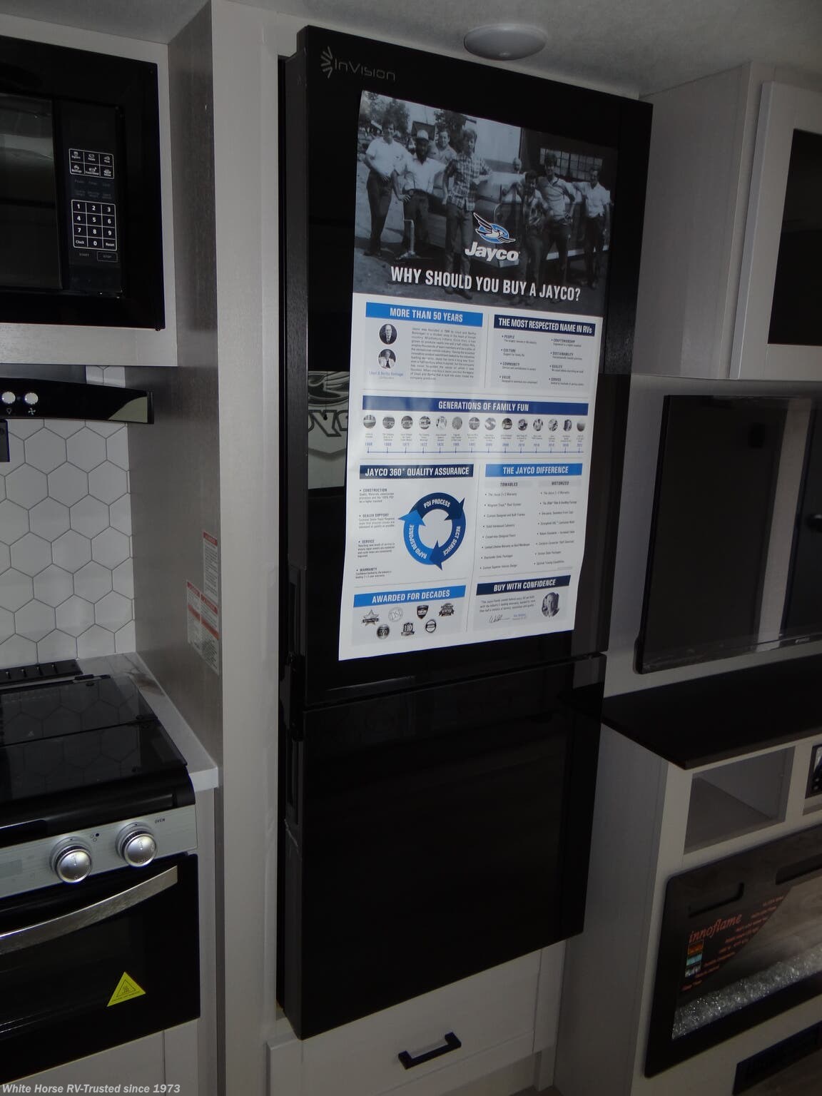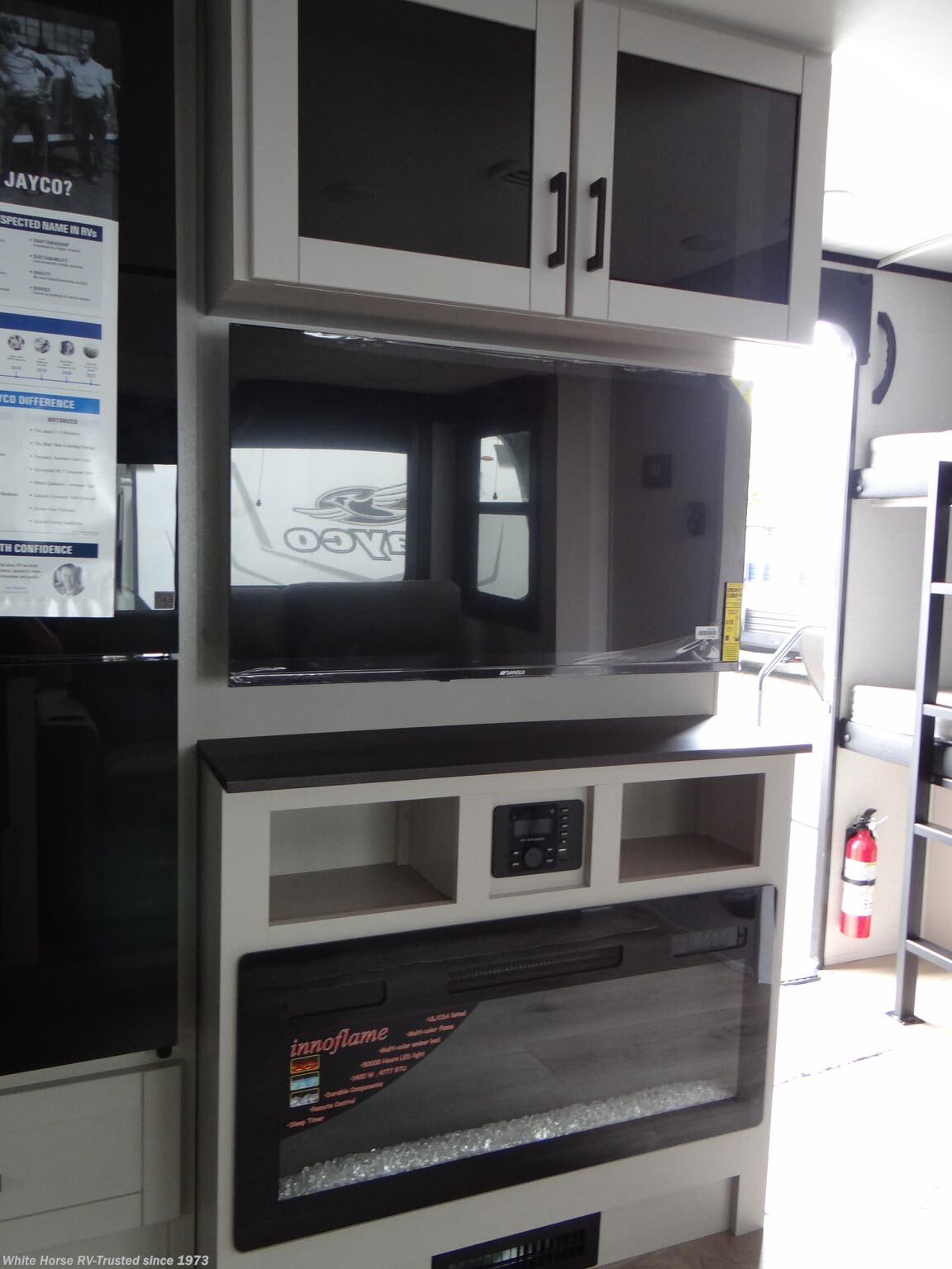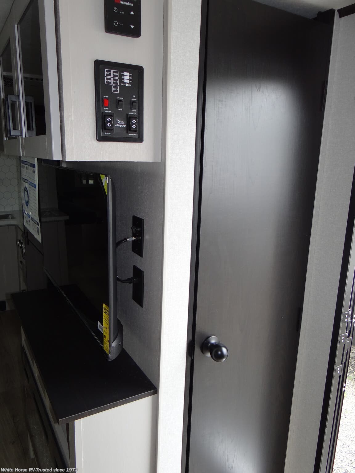 JaySport Package: Solid Step Main Entry Step, Modern Graphics Pkg w/Dual Colored Sidewall, Overlander 1 Solar Pkg, Climate Shield (zero to 100° Tested Weather Insulation Pkg), LED Smart TV, Stainless Steel Kitchen & Bathroom Sink, Maxx Air Power Roof Vent (Main Living Area), 11 cu ft 12v Refrigerator, Invision Appliance Pkg, App Monitored TMPS, Front Slam Latch Baggage Doors, Porcelain Foot Flush Toilet.