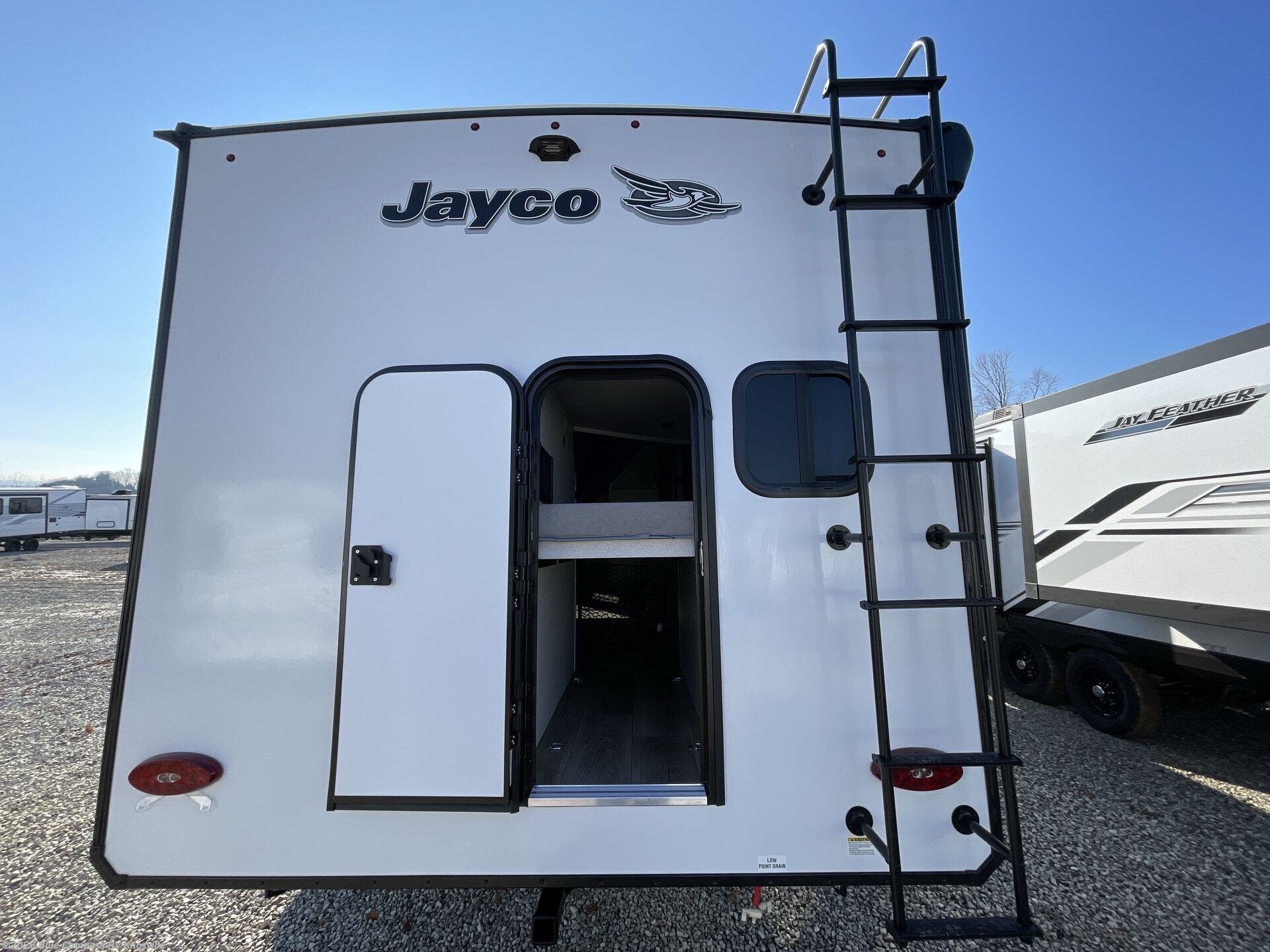 With any Jay Feather travel trailer by Jayco, you will enjoy lightweight towing, convenient exterior amenities, and at-home comforts inside! The Overlander 1 Solar Package included within the Jay Sport Package comes with a 200W solar panel and a 30-amp digital controller so you can enjoy some off-grid camping. There is also a modern graphics package, Solid fold-down step with aluminum tread steps on the main entry doorstep, and Climate Shield 0 -100° F tested weather insulation package that will allow you to camp in various types of climates. The Customer Value Package will make time outdoors easier than ever with a power tongue jack and Automotive-style aluminum rims, plus radial tires with self-adjusting electric brakes. More exterior features include a Keyed-Alike doors, a Magnum Truss roof system, and the list goes on! And we haven't even touched on the interior comforts, like the seamless countertops and Residential vinyl flooring throughout, decorative kitchen backsplash, handcrafted hardwood door/drawer fronts, and multiple USB charging ports to keep you going!