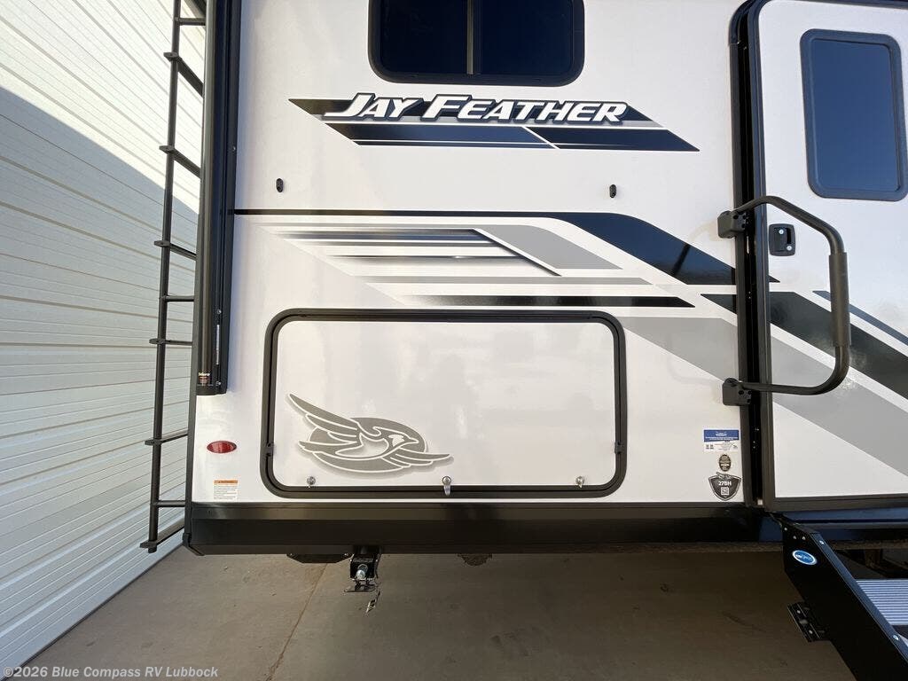 With any Jay Feather travel trailer by Jayco, you will enjoy lightweight towing, convenient exterior amenities, and at-home comforts inside! The Overlander 1 Solar Package included within the Jay Sport Package comes with a 200W solar panel and a 30-amp digital controller so you can enjoy some off-grid camping. There is also a modern graphics package, Solid fold-down step with aluminum tread steps on the main entry doorstep, and Climate Shield 0 -100° F tested weather insulation package that will allow you to camp in various types of climates. The Customer Value Package will make time outdoors easier than ever with a power tongue jack and Automotive-style aluminum rims, plus radial tires with self-adjusting electric brakes. More exterior features include a Keyed-Alike doors, a Magnum Truss roof system, and the list goes on! And we haven't even touched on the interior comforts, like the seamless countertops and Residential vinyl flooring throughout, decorative kitchen backsplash, handcrafted hardwood door/drawer fronts, and multiple USB charging ports to keep you going!
