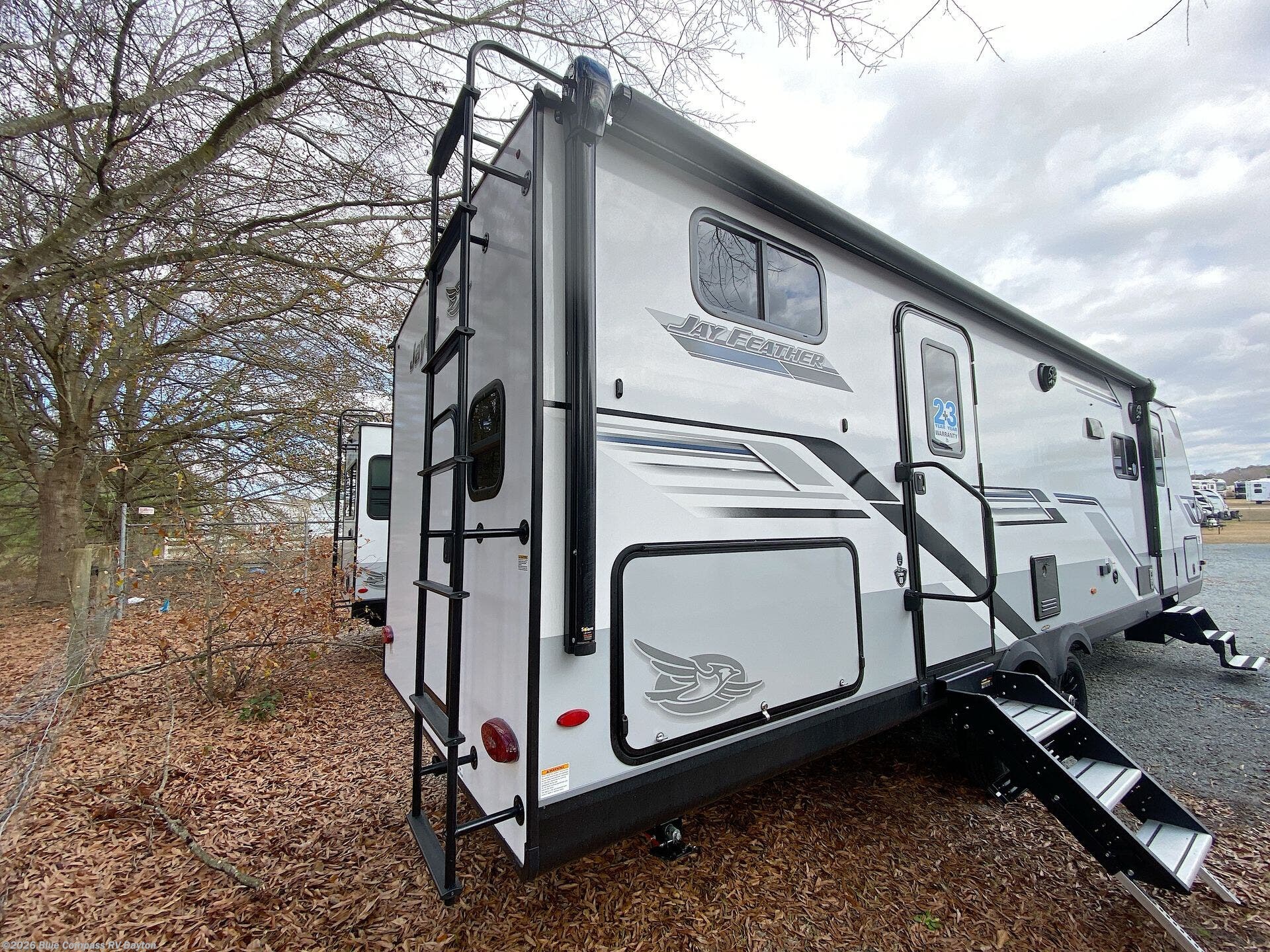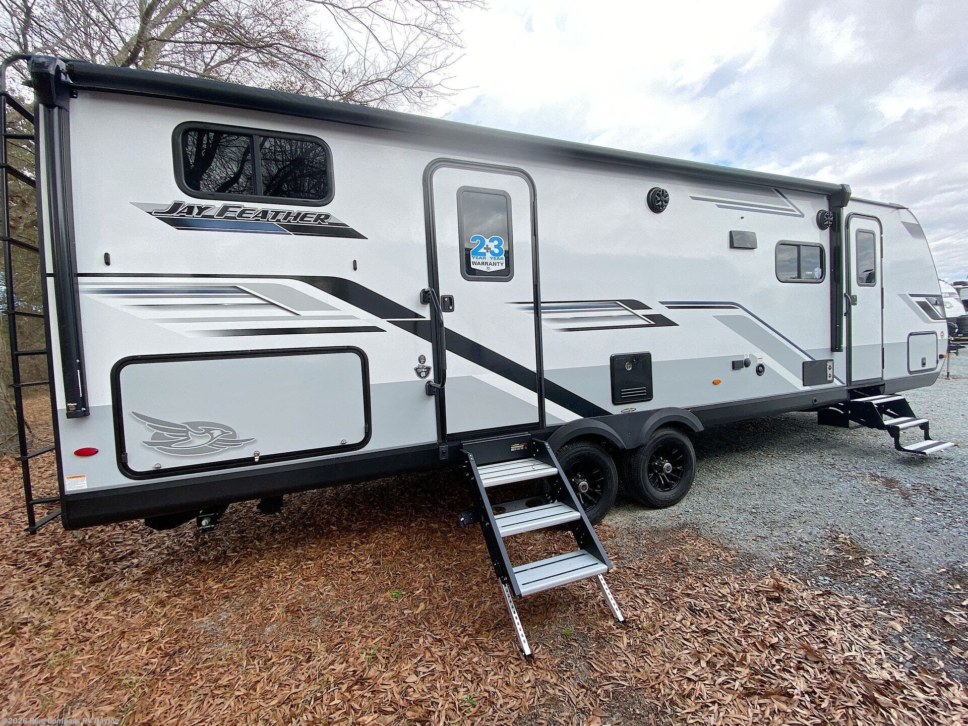 With any Jay Feather travel trailer by Jayco, you will enjoy lightweight towing, convenient exterior amenities, and at-home comforts inside! The Overlander 1 Solar Package included within the Jay Sport Package comes with a 200W solar panel and a 30-amp digital controller so you can enjoy some off-grid camping. There is also a modern graphics package, Solid fold-down step with aluminum tread steps on the main entry doorstep, and Climate Shield 0 -100° F tested weather insulation package that will allow you to camp in various types of climates. The Customer Value Package will make time outdoors easier than ever with a power tongue jack and Automotive-style aluminum rims, plus radial tires with self-adjusting electric brakes. More exterior features include a Keyed-Alike doors, a Magnum Truss roof system, and the list goes on! And we haven't even touched on the interior comforts, like the seamless countertops and Residential vinyl flooring throughout, decorative kitchen backsplash, handcrafted hardwood door/drawer fronts, and multiple USB charging ports to keep you going!