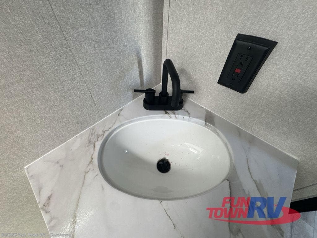 With any Jay Feather travel trailer by Jayco, you will enjoy lightweight towing, convenient exterior amenities, and at-home comforts inside! The Overlander 1 Solar Package included within the Jay Sport Package comes with a 200W solar panel and a 30-amp digital controller so you can enjoy some off-grid camping. There is also a modern graphics package with a dual-colored sidewall, LCI Solid Step fold-down aluminum tread steps on the main entry door, and Climate Shield 0 -100° F tested weather insulation package that will allow you to camp in all sorts of climates. The Customer Value Package will make time outdoors easier than ever with a power tongue jack and a Rock Solid stabilizer system, plus American-made nitro-filled Goodyear tires with self-adjusting electric brakes. More exterior features include a Keyed-Alike locking system, marine grade exterior speakers, a Magnum Truss roof system, and the list goes on! And we haven't even touched on the interior comforts, like the residential style seamless countertops and vinyl flooring throughout, decorative backsplash, handcrafted hardwood door/drawer fronts, and multiple USB charging ports to keep you going!