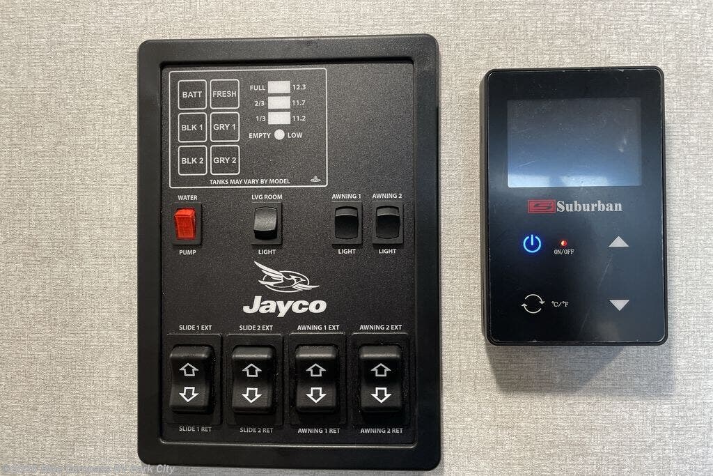 With any Jay Feather travel trailer by Jayco, you will enjoy lightweight towing, convenient exterior amenities, and at-home comforts inside! The Overlander 1 Solar Package included within the Jay Sport Package comes with a 200W solar panel and a 30-amp digital controller so you can enjoy some off-grid camping. There is also a modern graphics package with a dual-colored sidewall, LCI Solid Step fold-down aluminum tread steps on the main entry door, and Climate Shield 0 -100° F tested weather insulation package that will allow you to camp in all sorts of climates. The Customer Value Package will make time outdoors easier than ever with a power tongue jack and a Rock Solid stabilizer system, plus American-made nitro-filled Goodyear tires with self-adjusting electric brakes. More exterior features include a Keyed-Alike locking system, marine grade exterior speakers, a Magnum Truss roof system, and the list goes on! And we haven't even touched on the interior comforts, like the residential style seamless countertops and vinyl flooring throughout, decorative backsplash, handcrafted hardwood door/drawer fronts, and multiple USB charging ports to keep you going!