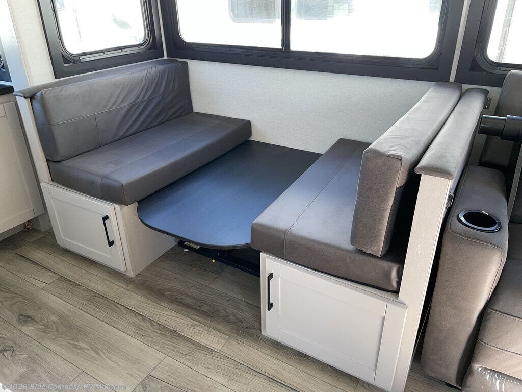Perfect for your trips or weekend getaways, this travel trailer is the one! You will find a rear desk with an ottoman plus overhead storage if you plan to work while you're away from home. The dual opposing slides in the combined kitchen and living area will create an open floorplan, and the kitchen island will provide the chef of your group with more counter space. There is a tri-fold sofa and booth dinette that double as seating and sleeping space, and the full bath onboard will keep everyone clean. Don't overlook the front private bedroom with a queen bed and plenty of storage space for your belongings!