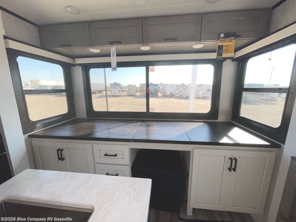 Perfect for your trips or weekend getaways, this travel trailer is the one! You will find a rear desk with an ottoman plus overhead storage if you plan to work while you're away from home. The dual opposing slides in the combined kitchen and living area will create an open floorplan, and the kitchen island will provide the chef of your group with more counter space. There is a tri-fold sofa and booth dinette that double as seating and sleeping space, and the full bath onboard will keep everyone clean. Don't overlook the front private bedroom with a queen bed and plenty of storage space for your belongings!