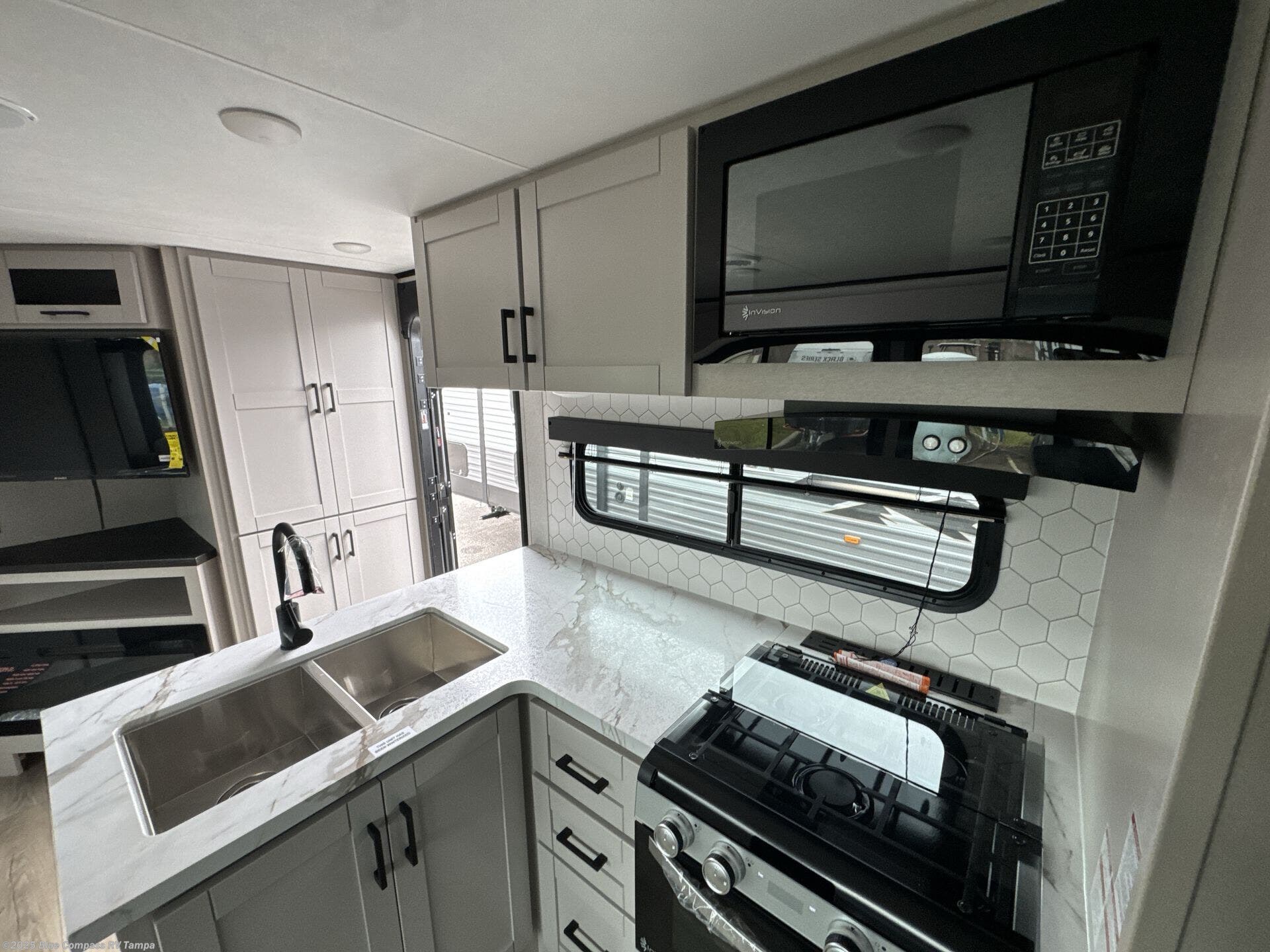 With any Jay Feather travel trailer by Jayco, you will enjoy lightweight towing, convenient exterior amenities, and at-home comforts inside! The Overlander 1 Solar Package included within the Jay Sport Package comes with a 200W solar panel and a 30-amp digital controller so you can enjoy some off-grid camping. There is also a modern graphics package, Solid fold-down step with aluminum tread steps on the main entry doorstep, and Climate Shield 0 -100° F tested weather insulation package that will allow you to camp in various types of climates. The Customer Value Package will make time outdoors easier than ever with a power tongue jack and Automotive-style aluminum rims, plus radial tires with self-adjusting electric brakes. More exterior features include a Keyed-Alike doors, a Magnum Truss roof system, and the list goes on! And we haven't even touched on the interior comforts, like the seamless countertops and Residential vinyl flooring throughout, decorative kitchen backsplash, handcrafted hardwood door/drawer fronts, and multiple USB charging ports to keep you going!