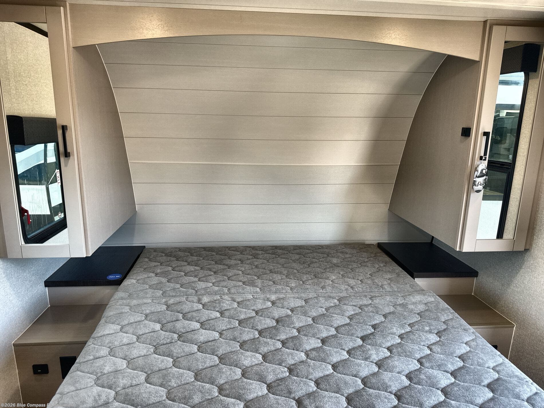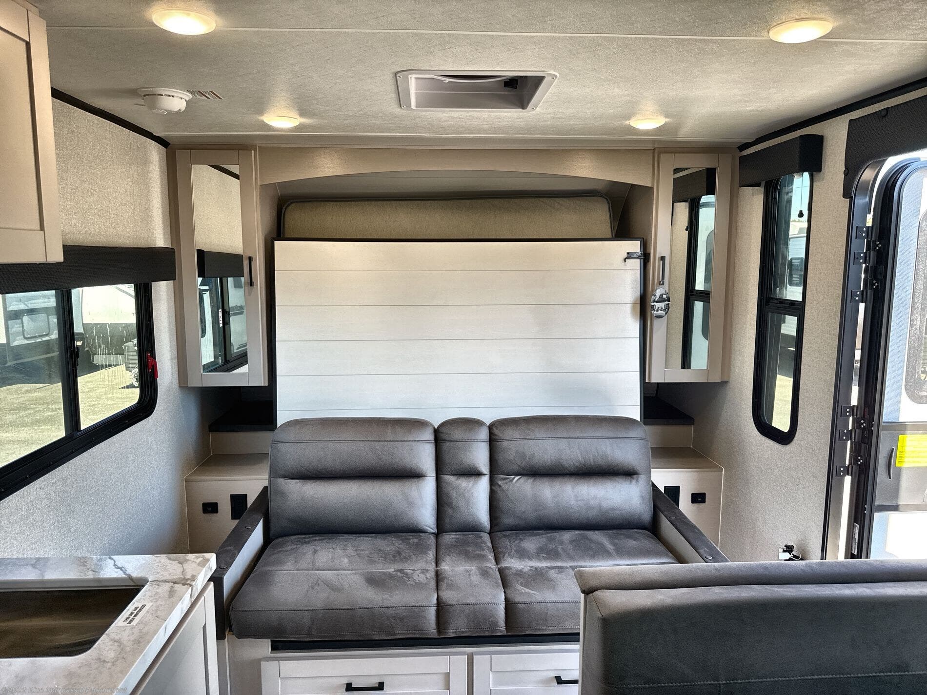 This is the perfect travel trailer for two to three campers! You'll have plenty of space during the day since there is a sofa up front, with a Murphy bed that can be folded down when you're ready for bed. There are also dual bedside wardrobes and nightstands to keep your space tidy. Breakfast can be made on the two burner cooktop or in the convection microwave, and there is a booth dinette where you can dine together. If the weather is nice, you may just find yourselves cooking on the exterior griddle and dining under the 13' awning! The full rear bath is sure to come in handy, and there is plenty of storage throughout to keep all your belongings put away!