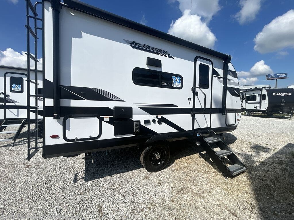 With any Jay Feather Air travel trailer by Jayco, you will enjoy lightweight towing and a variety of features to make each camping trip count! The Climate Shield insulation system helps extend your camping season by keeping you comfortable even in extreme weather conditions, and the Rock Solid stabilizer system means set up will be a breeze. An 18" rear roof ladder lets you easily clean the top of your Magnum Truss roof, and the 2" receiver will be perfect for your bike rack. The Overland 1 Solar Package with a 200W solar panel and 30-amp controller will provide off-grid capabilities, or you can can choose the optional Overland 2 Solar Package with two panels instead! Each Jay Feather Air includes residential-style seamless countertops inside, along with stainless steel sinks, decorative backsplash, and decorative roller shades with a reflective barrier to help keep the sun's rays out.