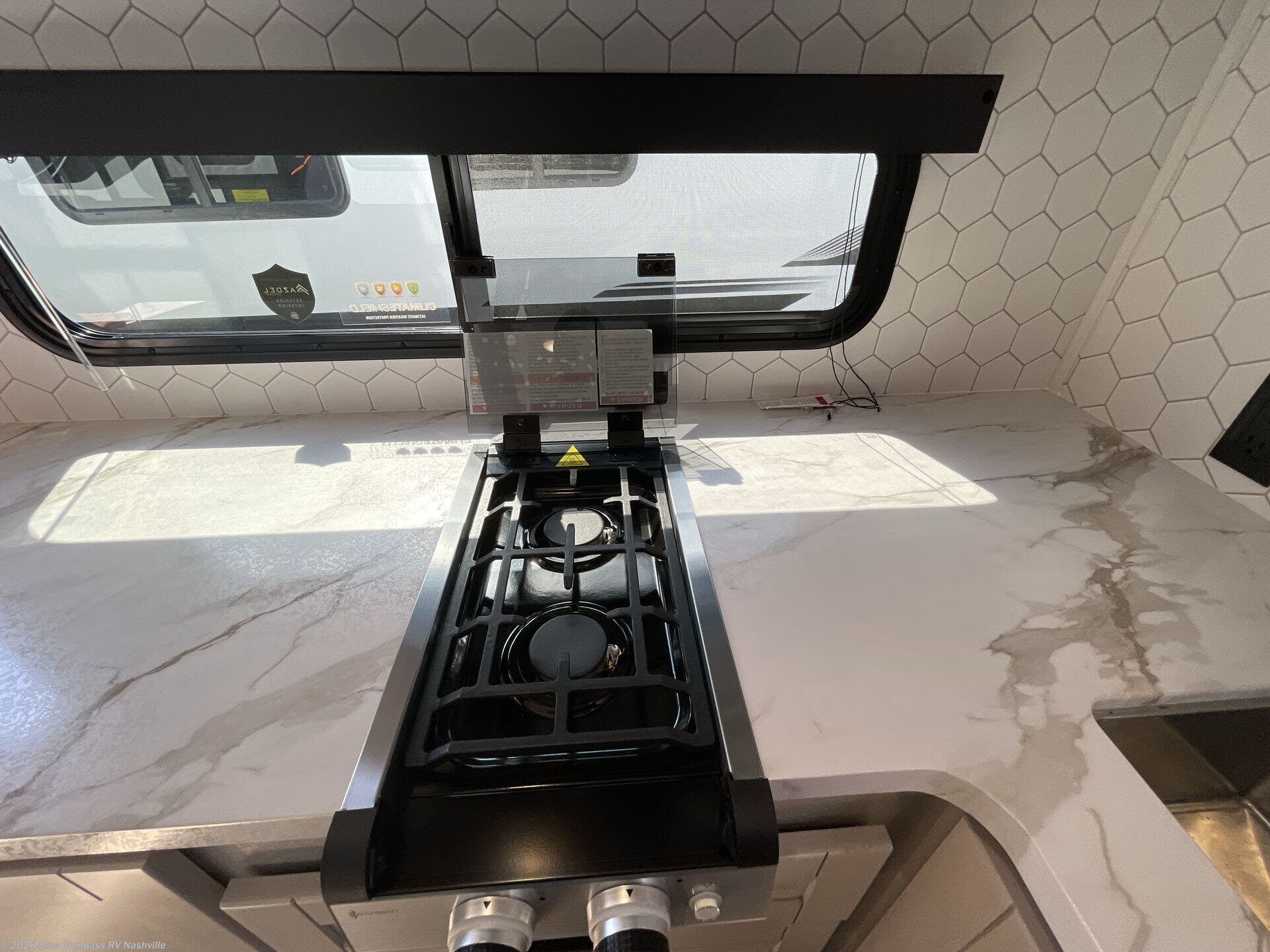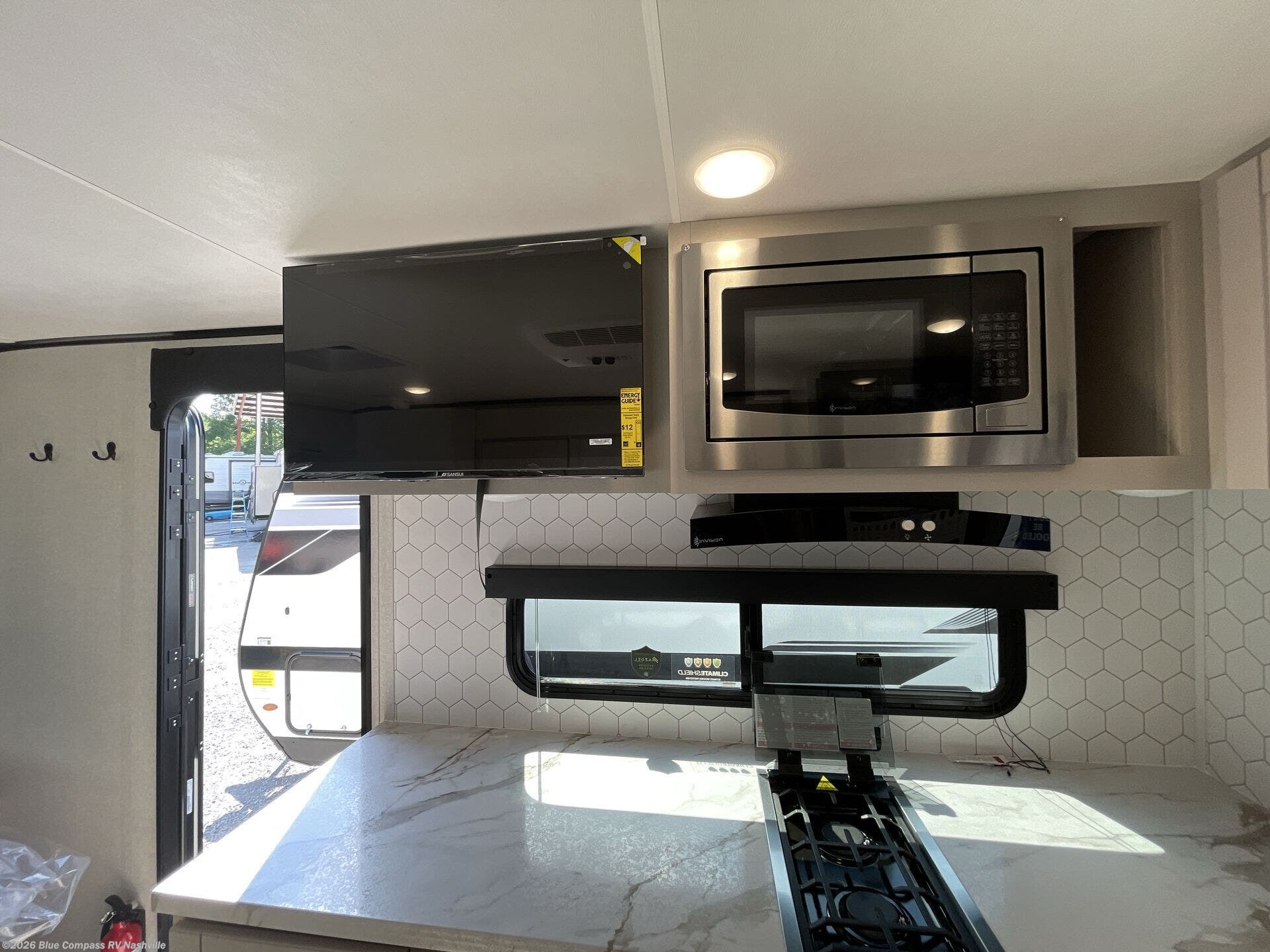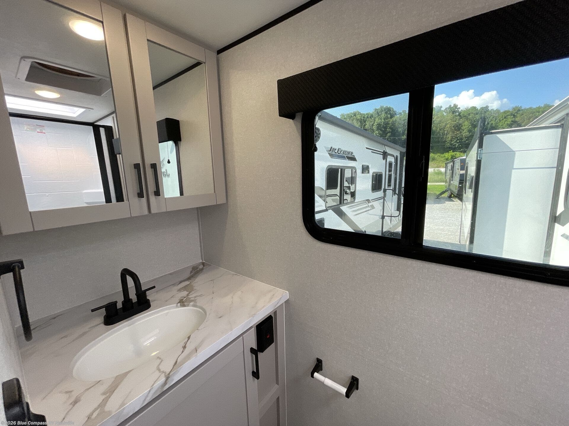 This travel trailer will feel just like home with its front queen bed, full rear bath, and fully-equipped kitchen! There is a jack-knife sofa slide out where you can relax each day, and there are swivel tables so you can enjoy meals here too. The LED Smart TV will let you stay in and watch movies if the weather isn't cooperating, or you can grab the fishing gear from the outside storage and weather the storm! You'll also find plenty of interior storage in the multiple overhead cabinets and the bath medicine cabinet!