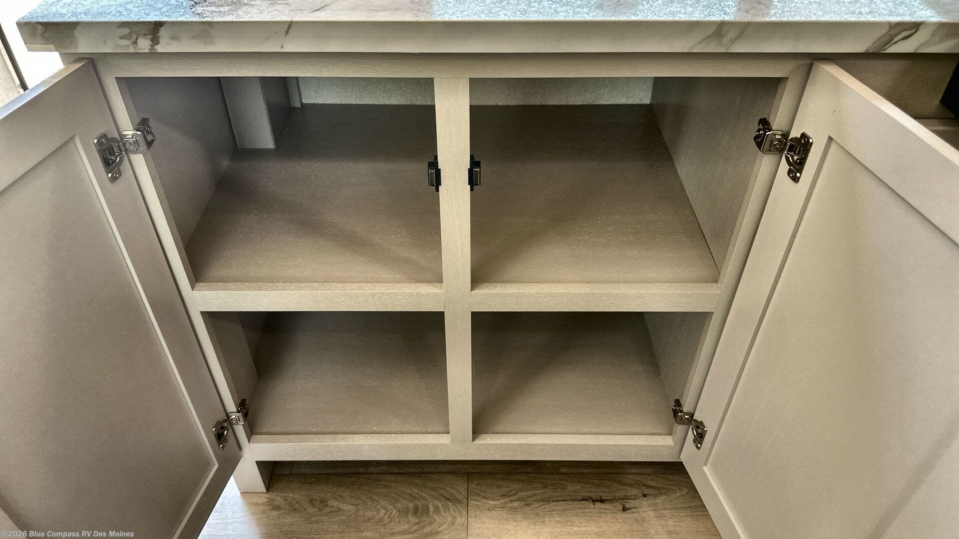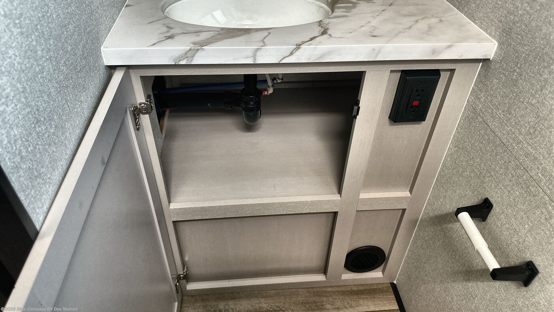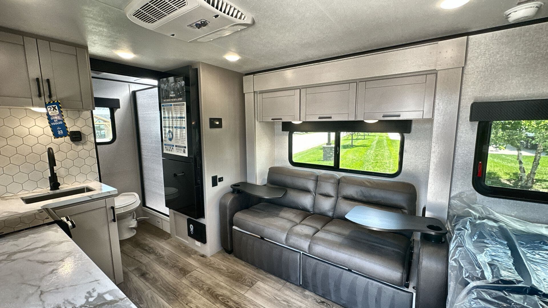 This travel trailer will feel just like home with its front queen bed, full rear bath, and fully-equipped kitchen! There is a jack-knife sofa slide out where you can relax each day, and there are swivel tables so you can enjoy meals here too. The LED Smart TV will let you stay in and watch movies if the weather isn't cooperating, or you can grab the fishing gear from the outside storage and weather the storm! You'll also find plenty of interior storage in the multiple overhead cabinets and the bath medicine cabinet!