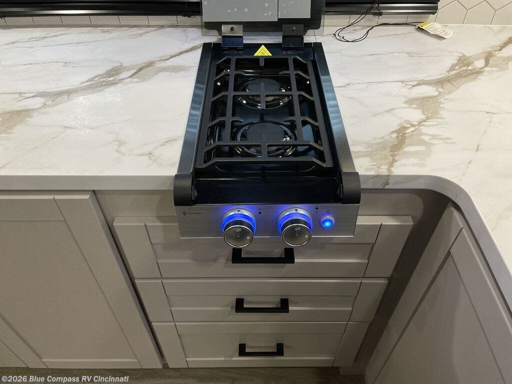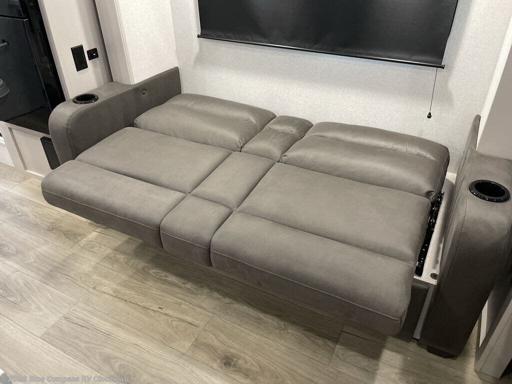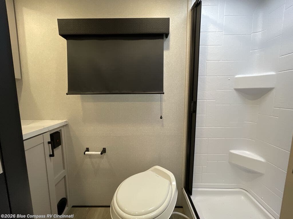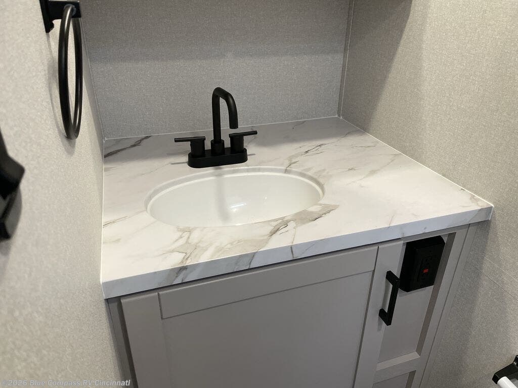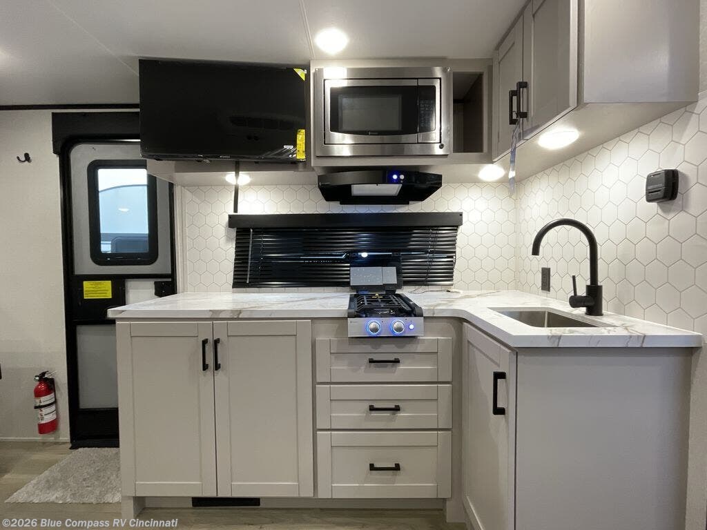 This travel trailer will feel just like home with its front queen bed, full rear bath, and fully-equipped kitchen! There is a jack-knife sofa slide out where you can relax each day, and there are swivel tables so you can enjoy meals here too. The LED Smart TV will let you stay in and watch movies if the weather isn't cooperating, or you can grab the fishing gear from the outside storage and weather the storm! You'll also find plenty of interior storage in the multiple overhead cabinets and the bath medicine cabinet!