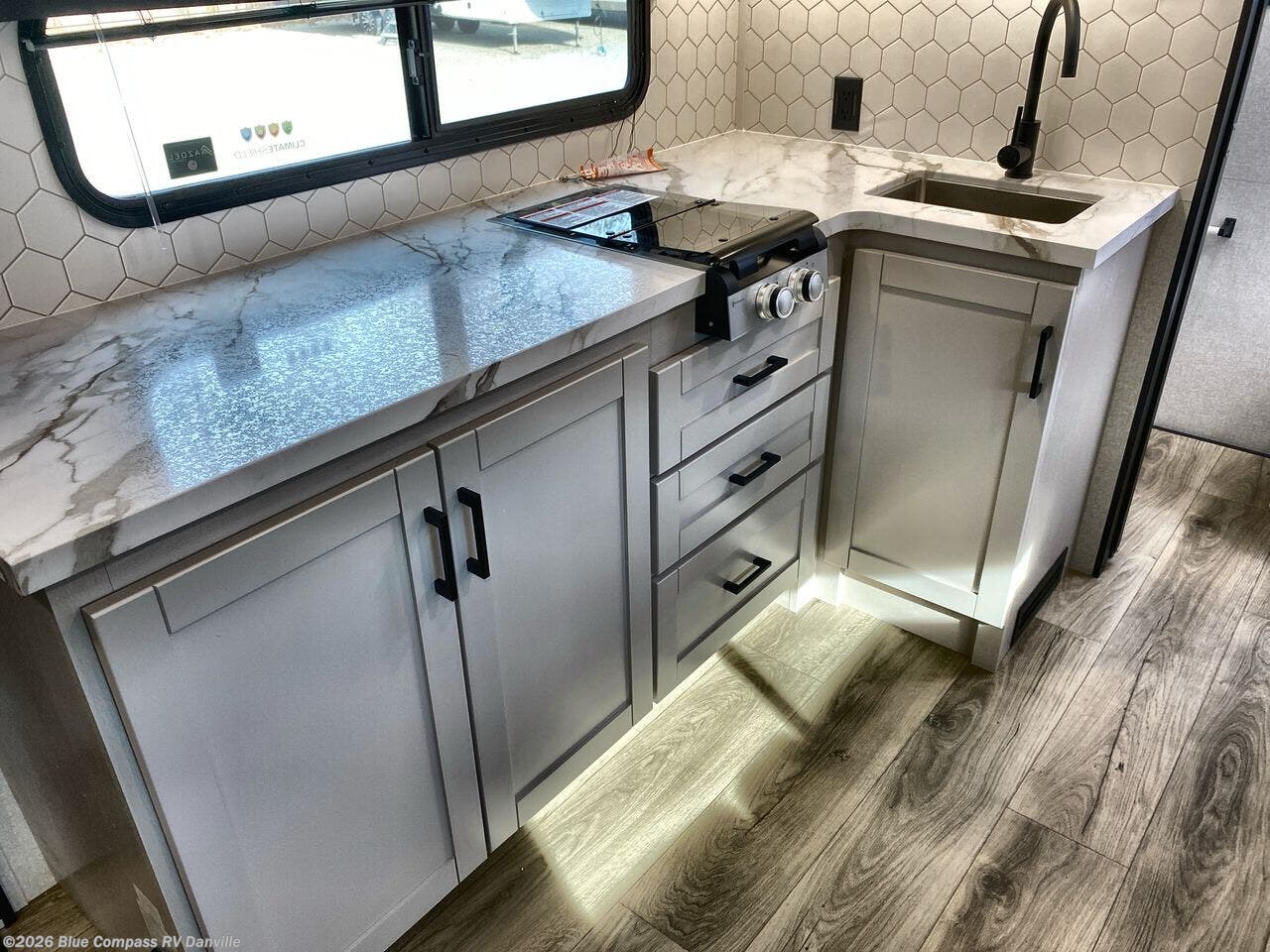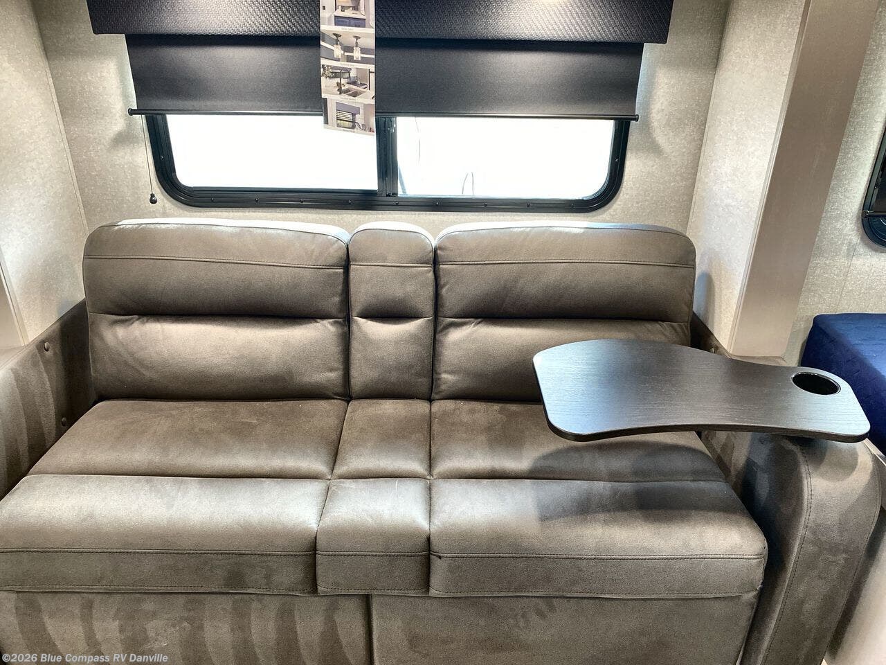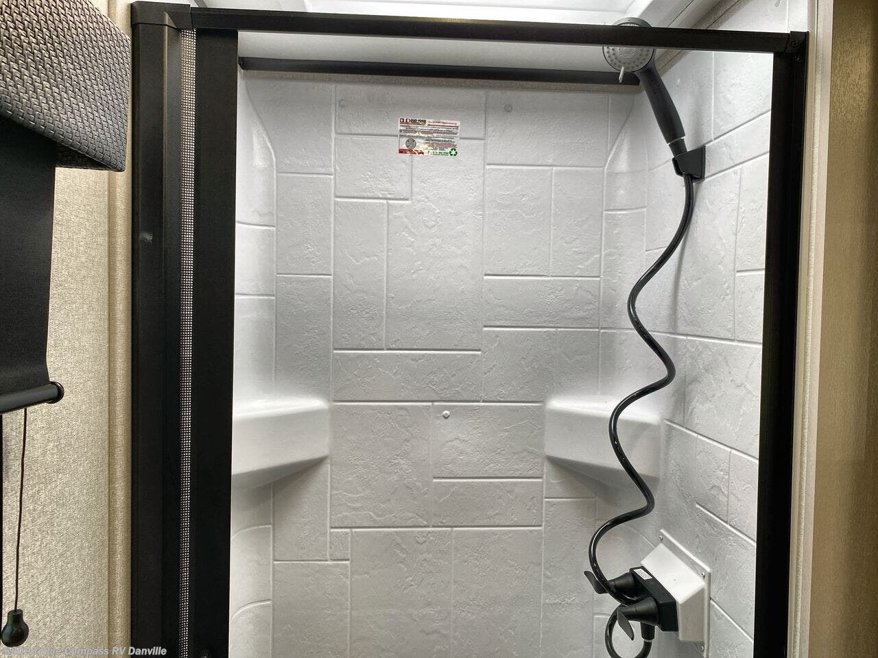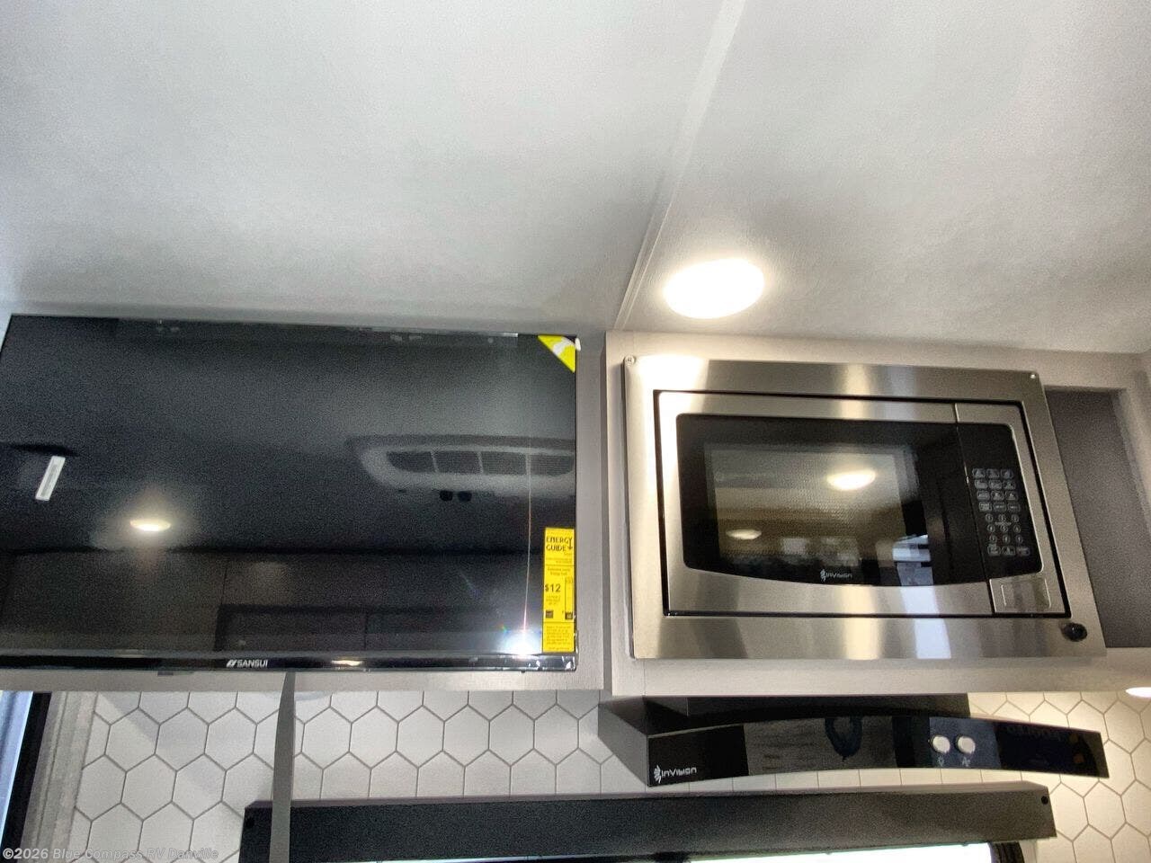 This travel trailer will feel just like home with its front queen bed, full rear bath, and fully-equipped kitchen! There is a jack-knife sofa slide out where you can relax each day, and there are swivel tables so you can enjoy meals here too. The LED Smart TV will let you stay in and watch movies if the weather isn't cooperating, or you can grab the fishing gear from the outside storage and weather the storm! You'll also find plenty of interior storage in the multiple overhead cabinets and the bath medicine cabinet!