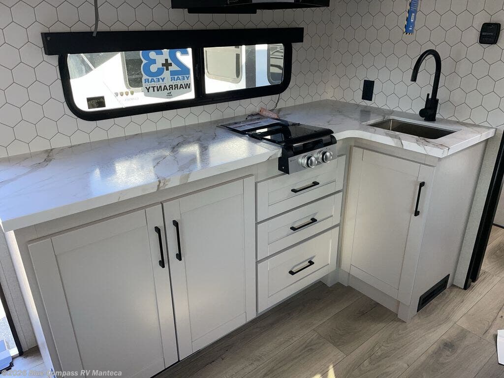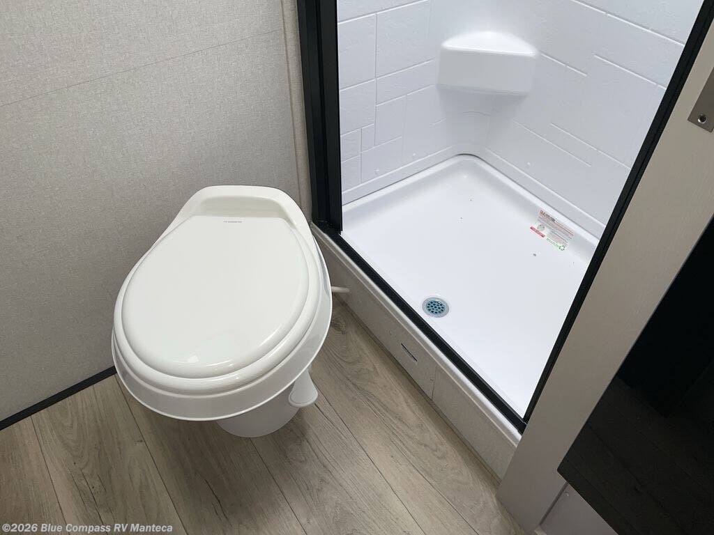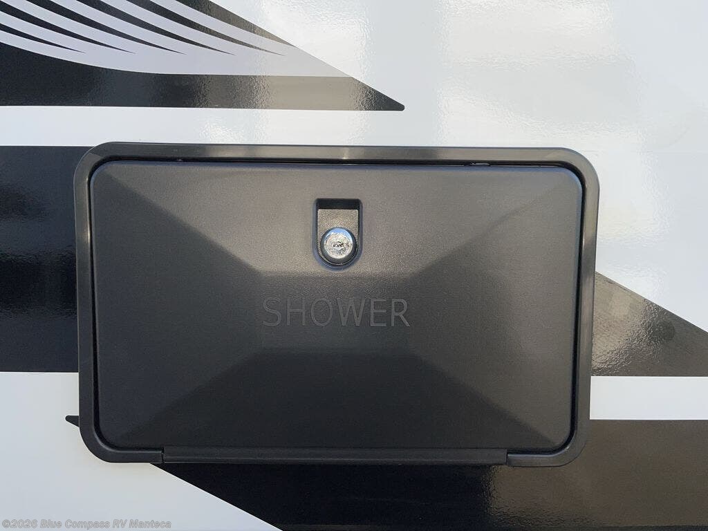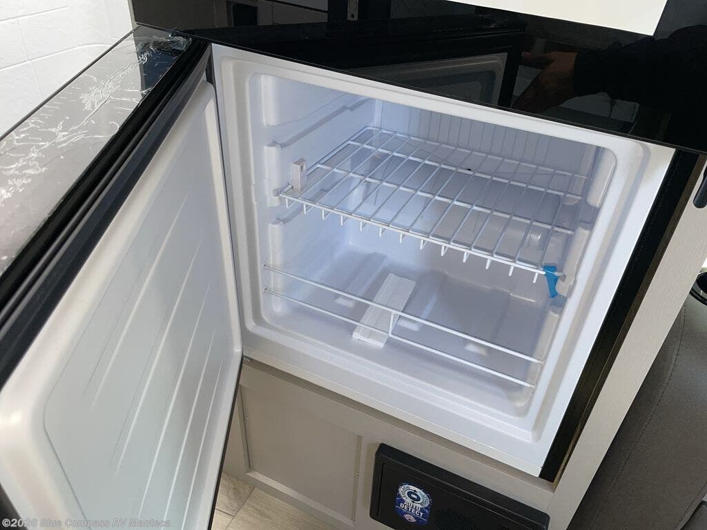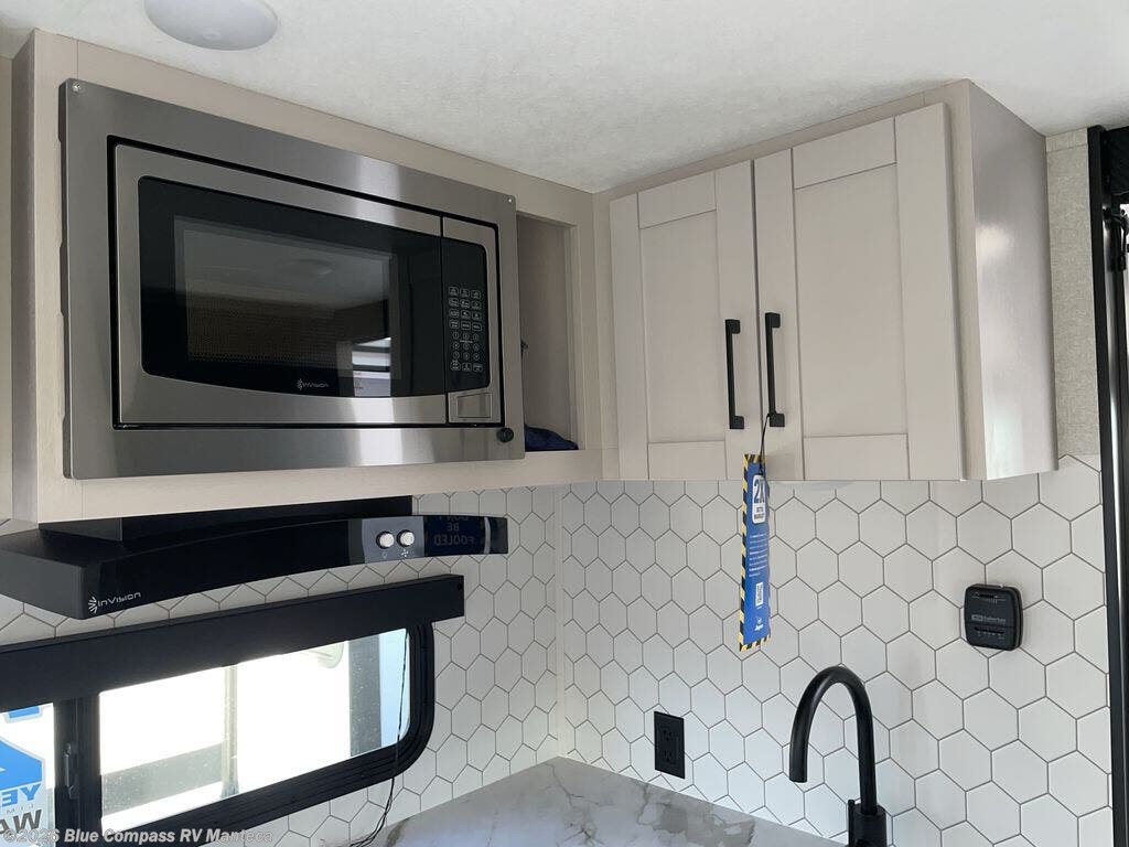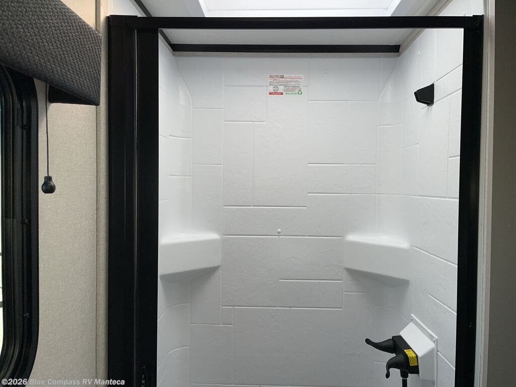 This travel trailer will feel just like home with its front queen bed, full rear bath, and fully equipped kitchen! There is a jack-knife sofa slide out where you can relax each day, and there are swivel tables so you can enjoy meals here too. The LED Smart TV will let you stay in and watch movies if the weather isn't cooperating, or you can grab the fishing gear from the outside storage and weather the storm! You'll also find plenty of interior storage in the multiple overhead cabinets and the bath medicine cabinet!