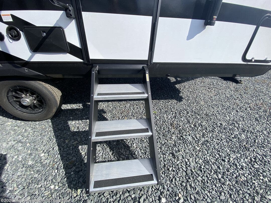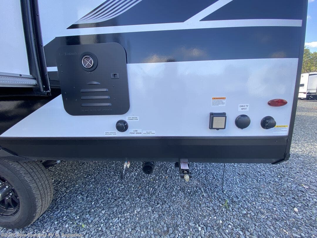 This travel trailer will feel just like home with its front RV queen bed, full rear bath, and fully-equipped kitchen! There is a jack-knife sofa slide out where you can relax each day, and there are swivel sofa tables so you can enjoy meals here too. The TV will let you stay in and watch movies if the weather isn't cooperating, or you can grab the fishing gear from the outside storage and weather the storm! You'll also find plenty of interior storage in the multiple overhead cabinets and the bath medicine cabinet!