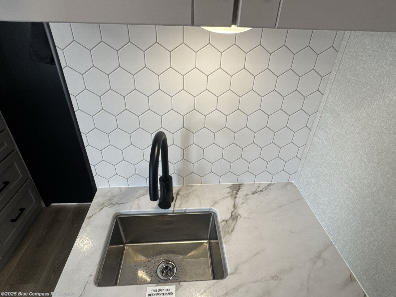 With any Jay Feather Air travel trailer by Jayco, you will enjoy lightweight towing and a variety of features to make each camping trip count! The Climate Shield insulation system helps extend your camping season by keeping you comfortable even in extreme weather conditions, and the Rock Solid stabilizer system means set up will be a breeze. An 18" rear roof ladder lets you easily clean the top of your Magnum Truss roof, and the 2" receiver will be perfect for your bike rack. The Overland 1 Solar Package with a 200W solar panel and 30-amp controller will provide off-grid capabilities, or you can can choose the optional Overland 2 Solar Package with two panels instead! Each Jay Feather Air includes residential-style seamless countertops inside, along with stainless steel sinks, decorative backsplash, and decorative roller shades with a reflective barrier to help keep the sun's rays out.