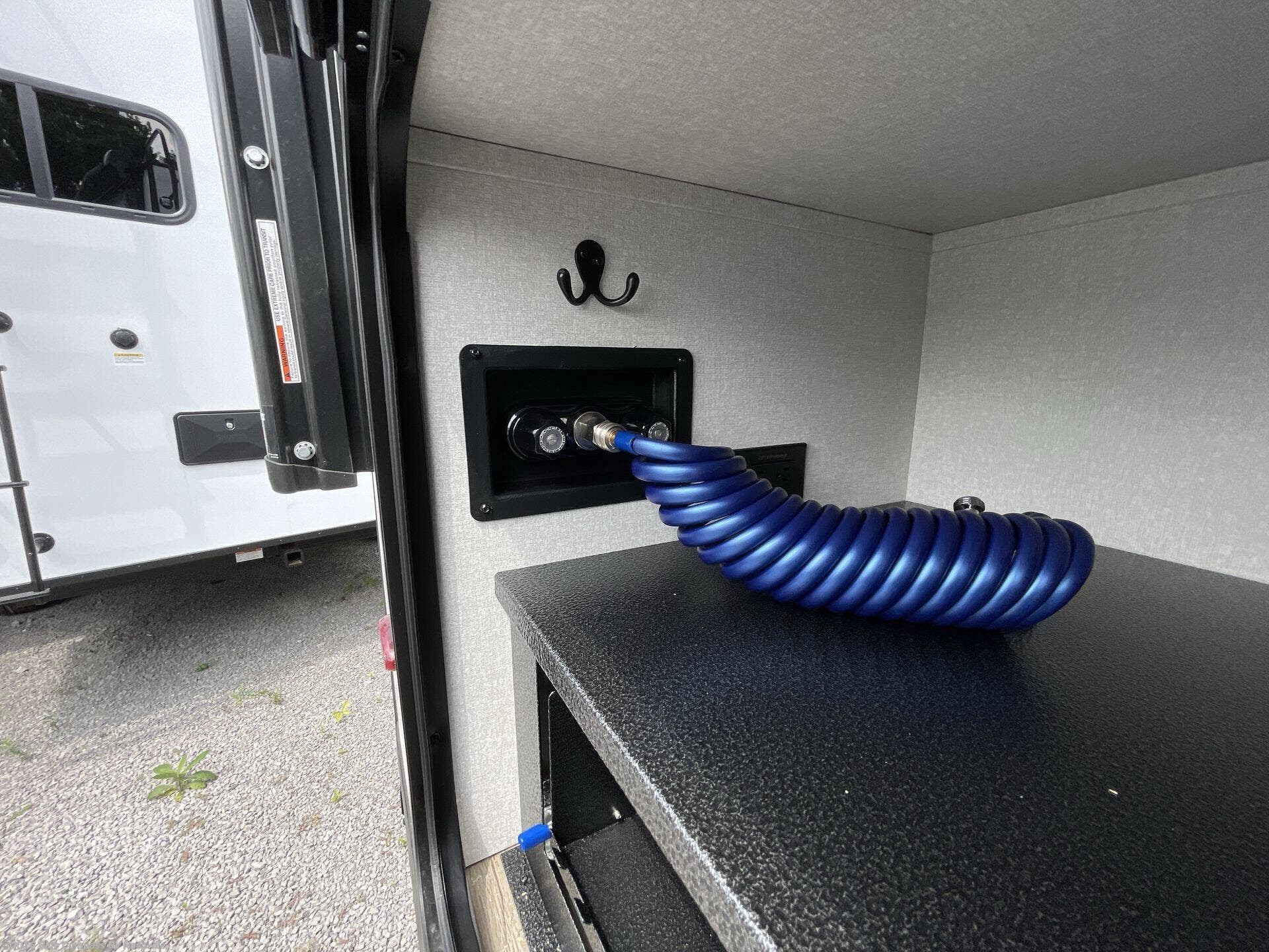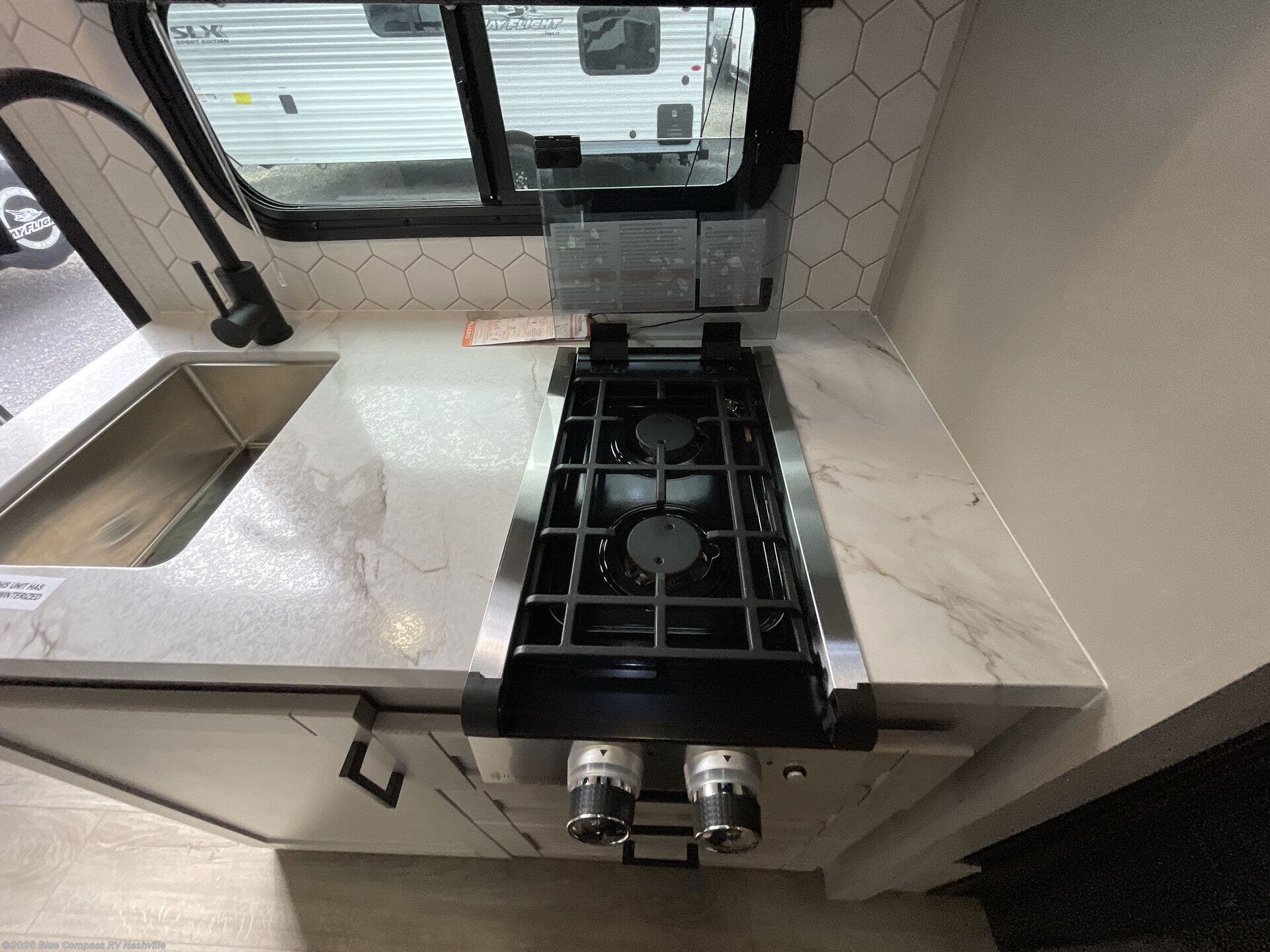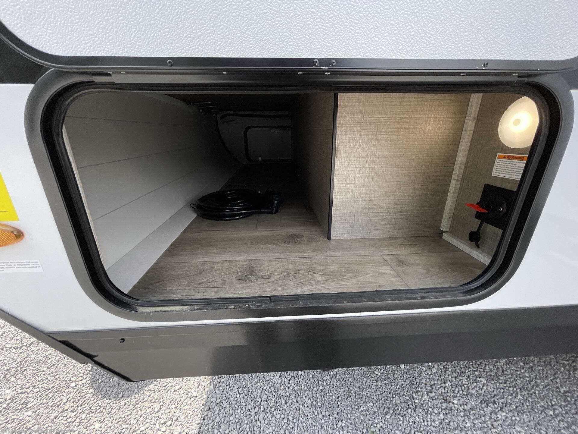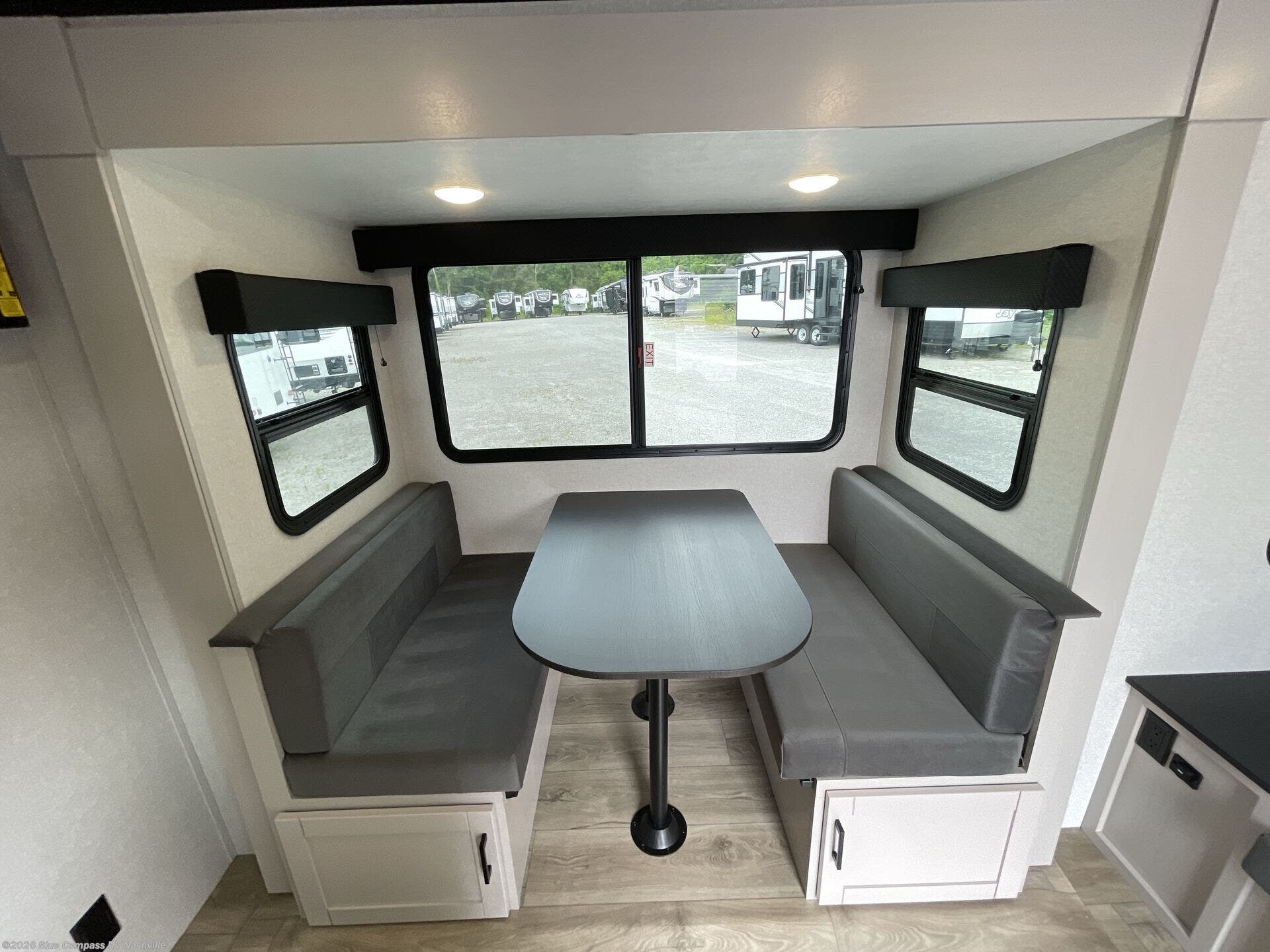 The double-size bunks in this travel trailer mean more friends and family can tag along! Once you arrive at the campground, you can put out the 15' power awning, unload the exterior storage and start lunch on the exterior griddle. A full kitchen indoors will let you make meals here when the weather isn't cooperating. The booth dinette slide will be perfect for meals times, game night, and even additional sleeping space. Up front, you'll find a sofa to relax on during the day and a Murphy bed to sleep on at night; how convenient!