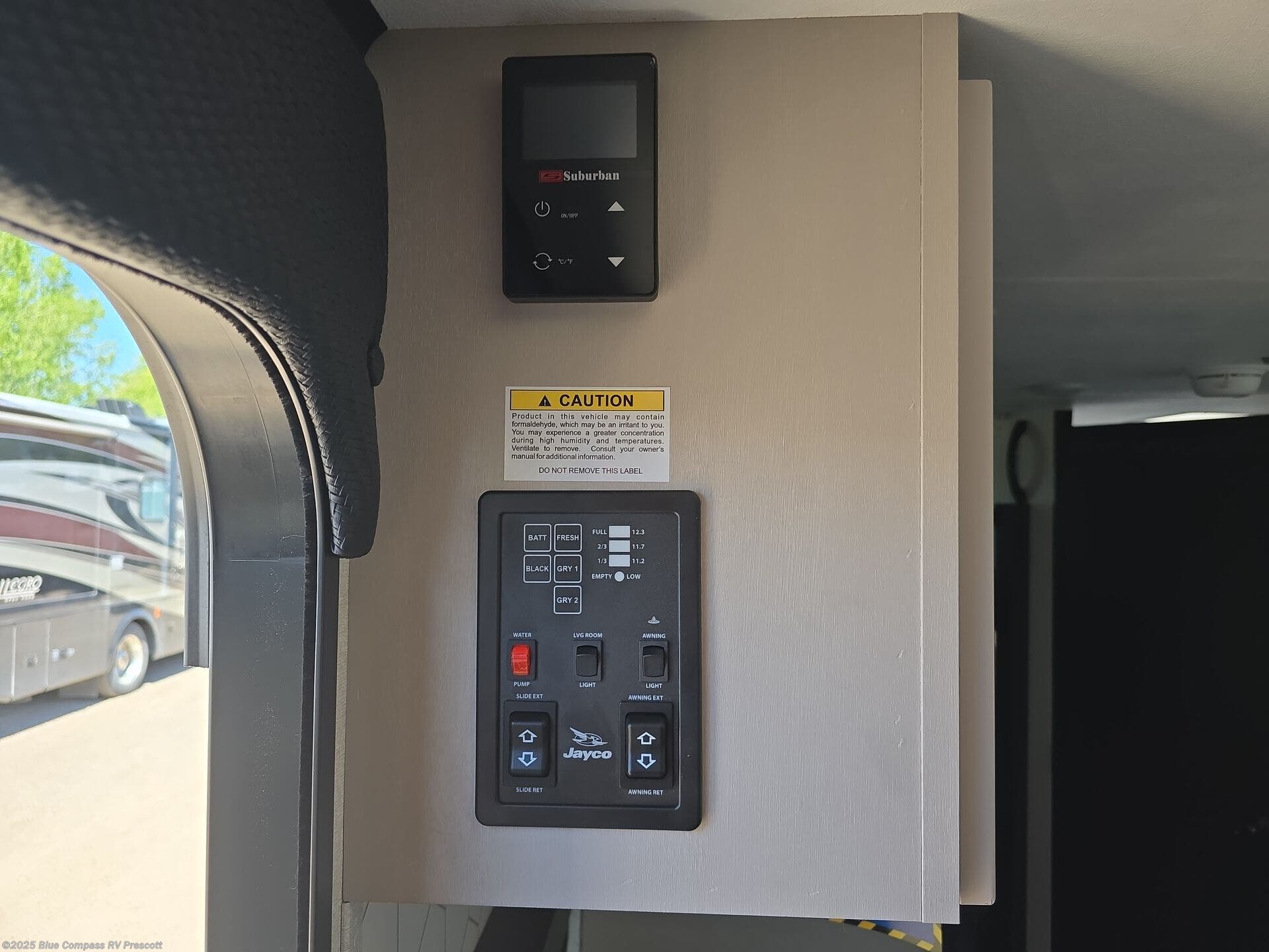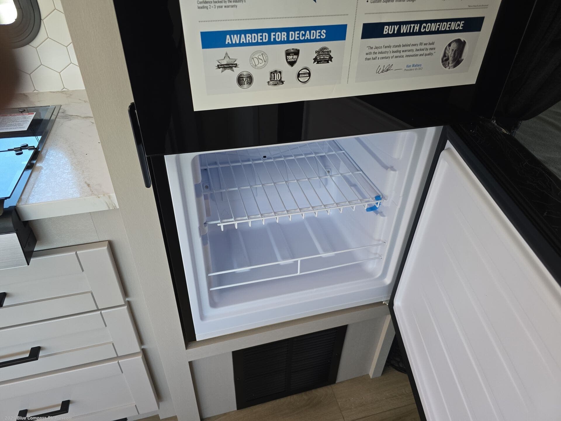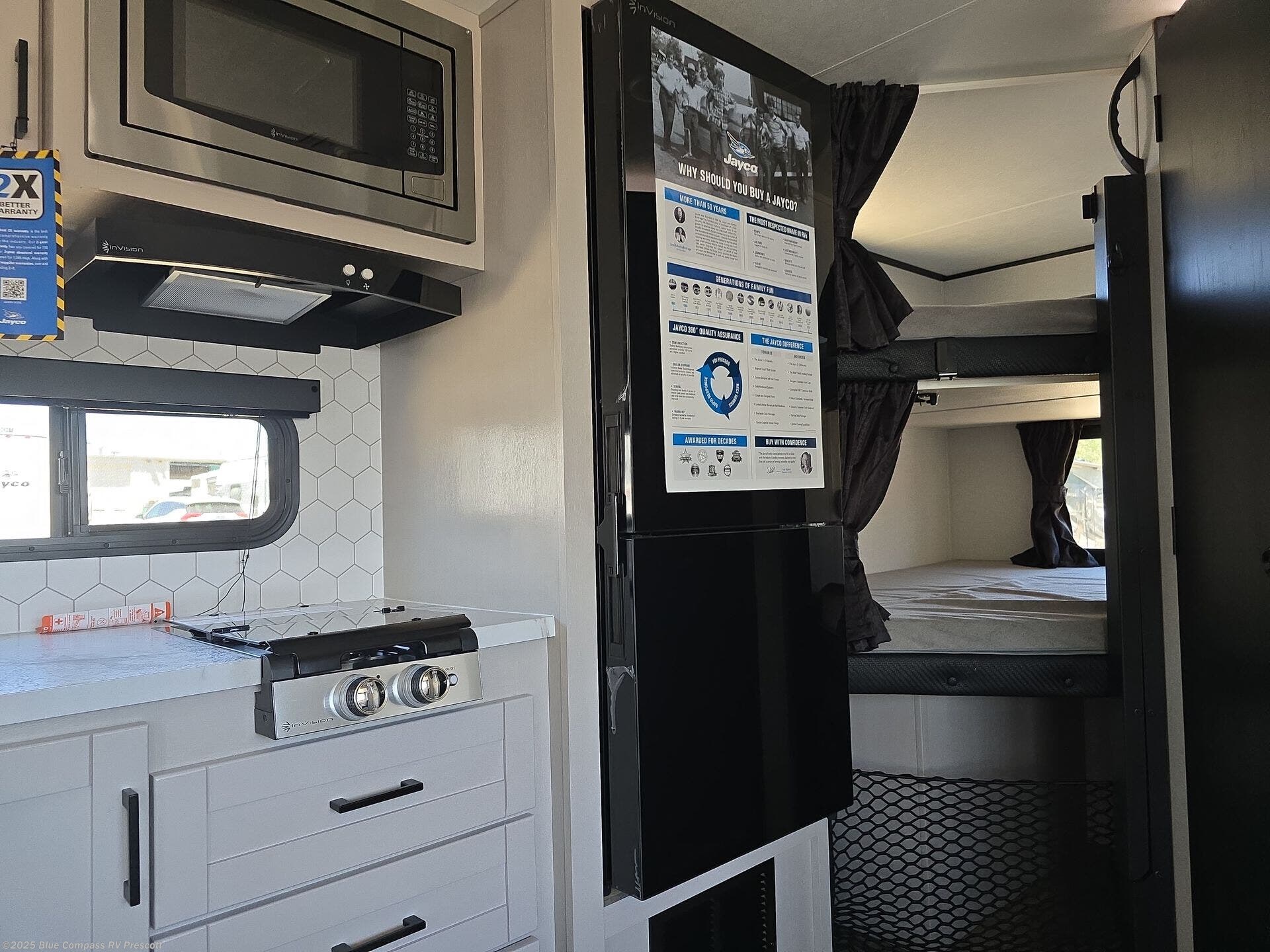 With any Jay Feather Air travel trailer by Jayco, you will enjoy lightweight towing and a variety of features to make each camping trip count! The Climate Shield insulation system helps extend your camping season by keeping you comfortable even in extreme weather conditions, and the Rock Solid stabilizer system means set up will be a breeze. An 18" rear roof ladder lets you easily clean the top of your Magnum Truss roof, and the 2" receiver will be perfect for your bike rack. The Overland 1 Solar Package with a 200W solar panel and 30-amp controller will provide off-grid capabilities, or you can can choose the optional Overland 2 Solar Package with two panels instead! Each Jay Feather Air includes residential-style seamless countertops inside, along with stainless steel sinks, decorative backsplash, and decorative roller shades with a reflective barrier to help keep the sun's rays out.