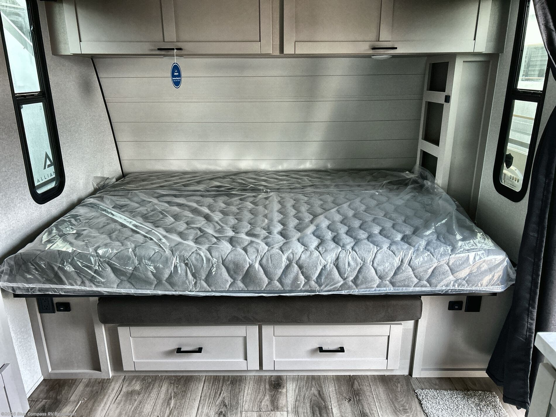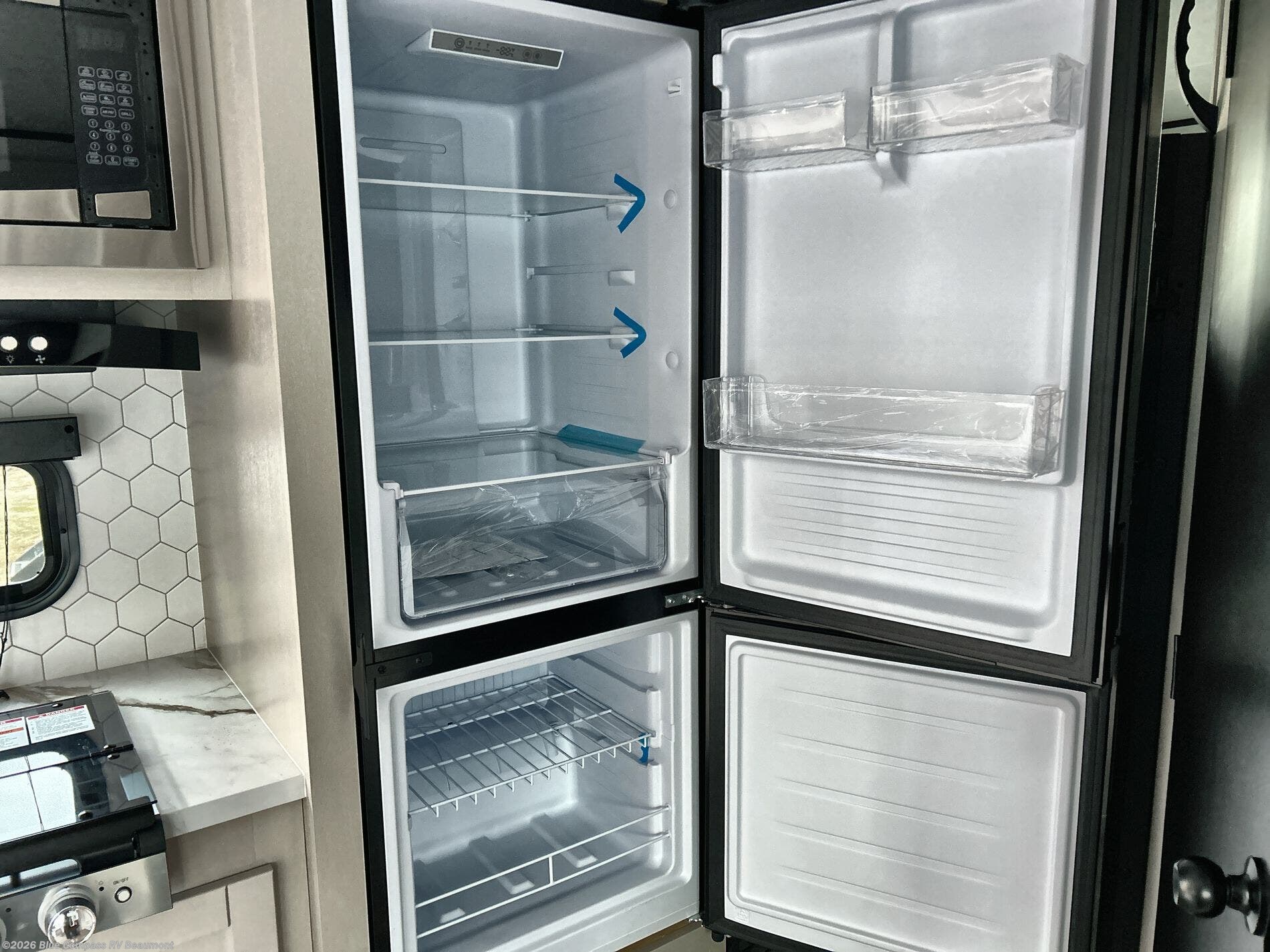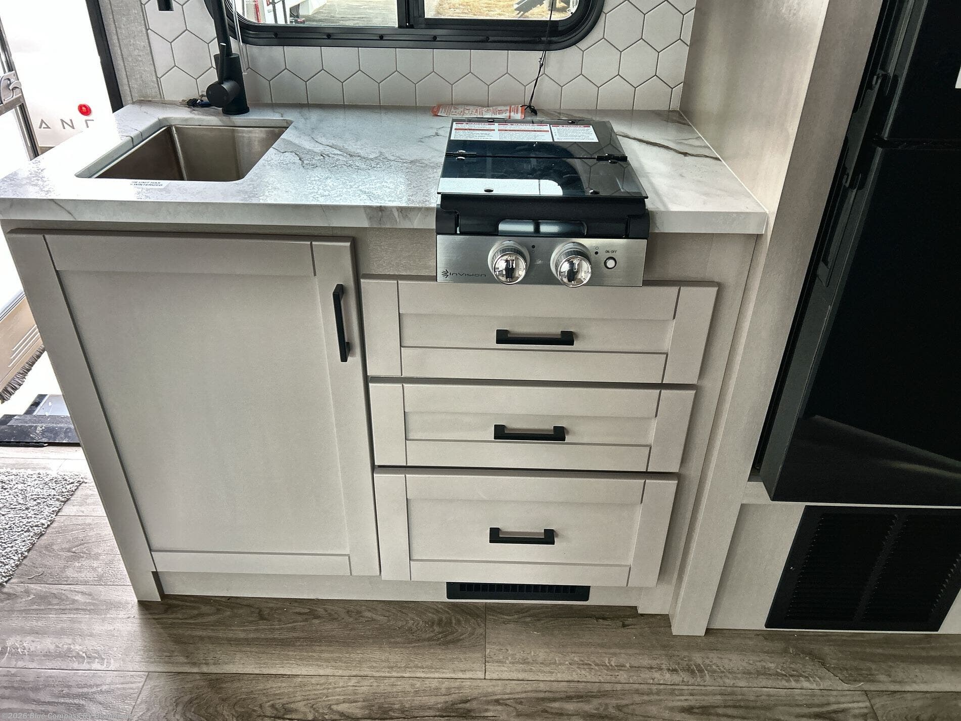 The double-size bunks in this travel trailer mean more friends and family can tag along! Once you arrive at the campground, you can put out the 15' power awning, unload the exterior storage and start lunch on the exterior griddle. A full kitchen indoors will let you make meals here when the weather isn't cooperating. The booth dinette slide will be perfect for meals times, game night, and even additional sleeping space. Up front, you'll find a sofa to relax on during the day and a Murphy bed to sleep on at night; how convenient!