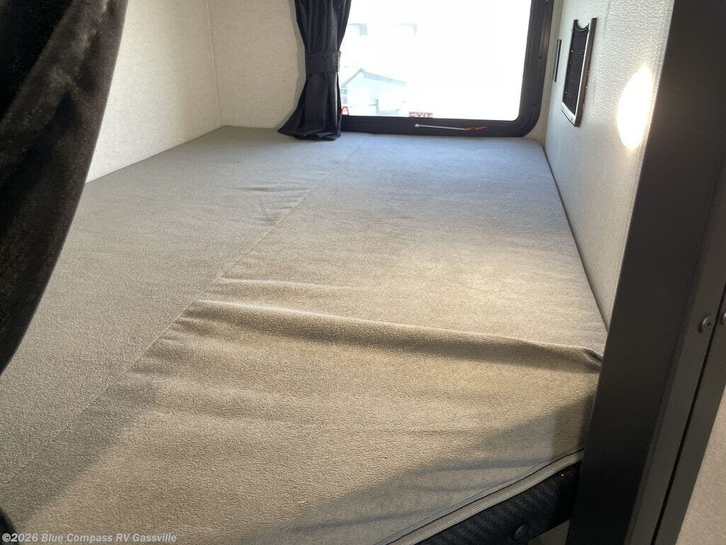 The double-size bunks in this travel trailer mean more friends and family can tag along! Once you arrive at the campground, you can put out the 15' power awning, unload the exterior storage and start lunch on the exterior griddle. A full kitchen indoors will let you make meals here when the weather isn't cooperating. The booth dinette slide will be perfect for meals times, game night, and even additional sleeping space. Up front, you'll find a sofa to relax on during the day and a Murphy bed to sleep on at night; how convenient!