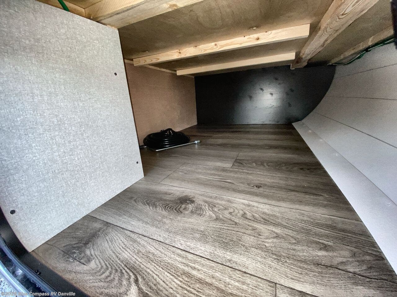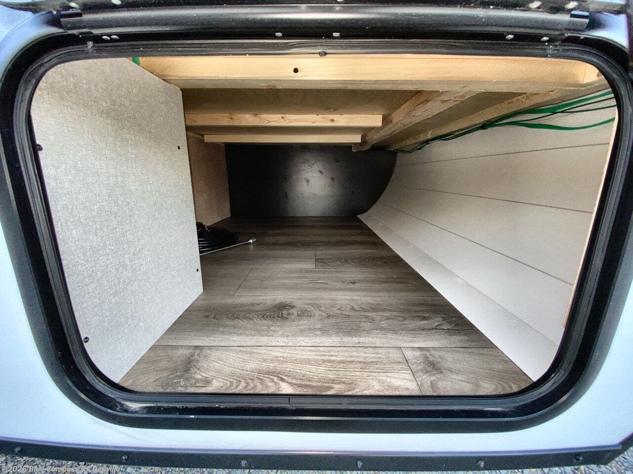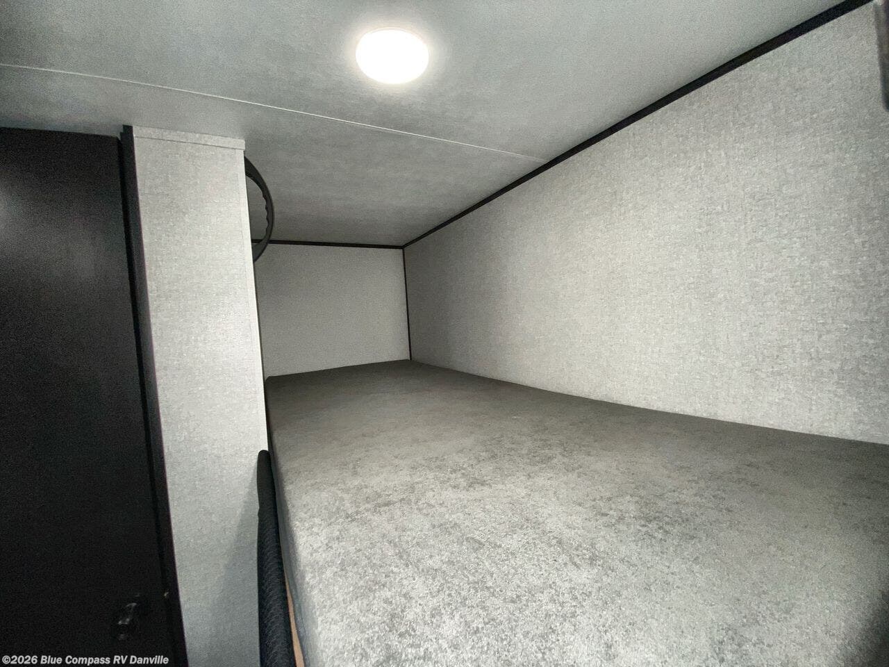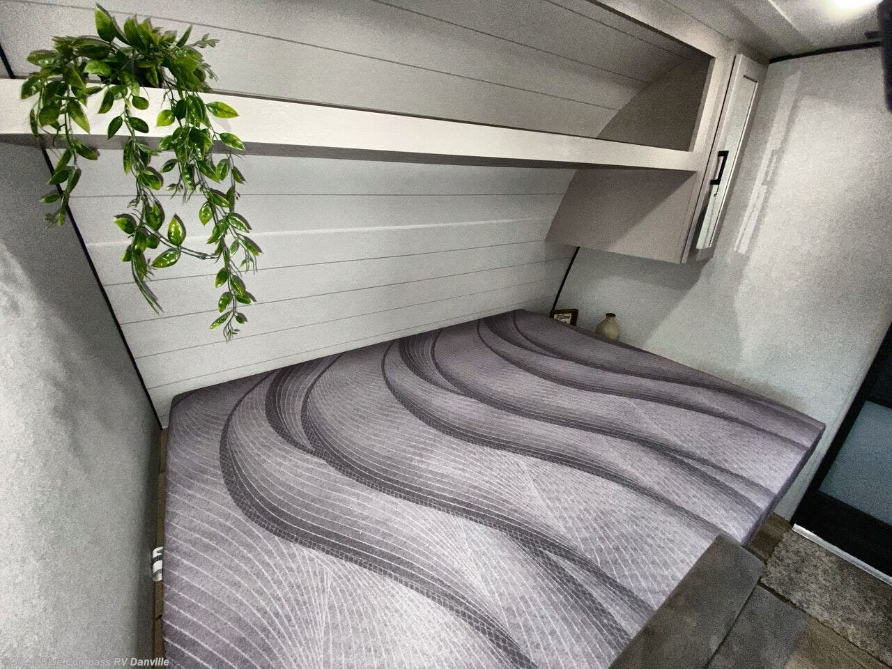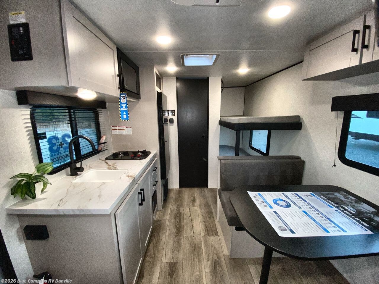 This compact travel trailer has everything you need for convenient camping trips! Once you arrive at the park, you can unload the exterior storage and put out the 10' power awning. The two burner cooktop and microwave oven will let you make lunch for your crew, and there is a 5 cu. ft. 12V refrigerator to keep your cold items fresh. A booth dinette will provide dining space when you don't want to eat outdoors, and this can convert to sleeping space for one guest or two little ones. You'll appreciate the private bath with a toilet and 36" tub/shower to freshen up in each day, and the bunk beds in the back provide compact sleeping space for more campers. The front queen bed will be reserved just for you, and there is a nightstand, wardrobe, and overhead cabinet here to keep your things tidy!