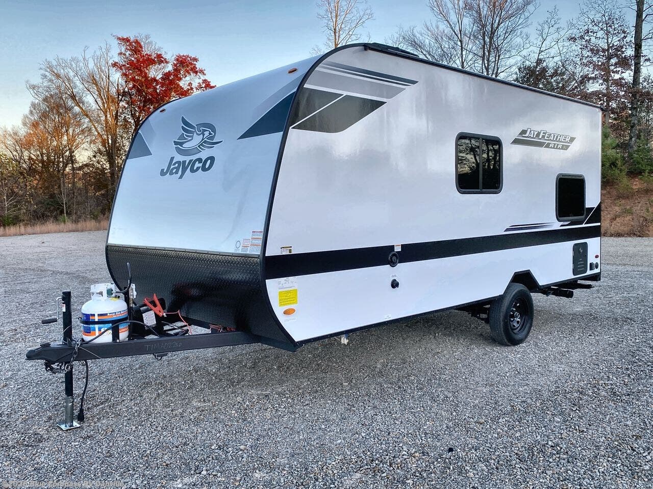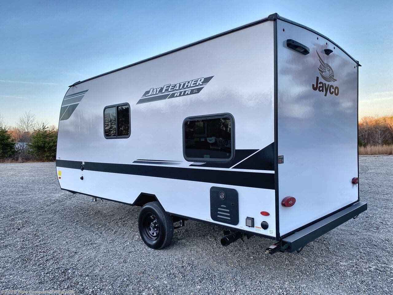 The Jay Feather Air SL travel trailer by Jayco is affordable, convenient, and lightweight for an easier tow! A Magnum Truss roof system and fully integrated A-frame provide a strong foundation to the trailer, plus there are galvanized-steel, impact resistant wheel wells for added protection. Some of the exterior conveniences you'll find include a front tongue jack and stabilizer jacks, roof mount solar prep, an exterior porch light, and G20 dark tinted privacy windows. Head inside to enjoy solid hardwood cabinet doors, residential-style kitchen countertops, a marine-grade toilet with foot flush, and vinyl flooring throughout that will be easy to keep clean. This super lite travel trailer is the perfect choice for rookie RVers and seasoned campers alike!