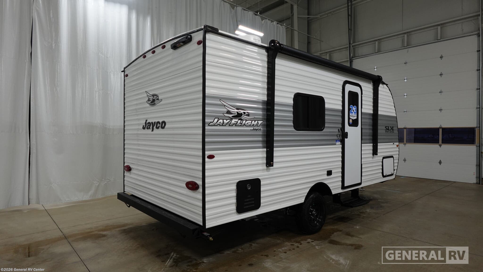 Jayco Jay Flight SLX Sport Edition travel trailer 170FQ highlights: Full Rear Bath 8,000 BTU Wall Mount A/C Front RV Queen Bed 12V Refrigerator Two Burner Cooktop This travel trailer includes everything you need for fun trips at the lake. When you arrive at the campground, you can unload the exterior storage, then put out the 10' power awning. The booth dinette inside will provide a place to dine together, and the full rear bath with a shower will make it easier than ever to clean up after a day of hiking. A front RV queen bed will provide a great night's rest, and the overhead shelf will be perfect for books or personal belongings. The Jayco Jay Flight SLX travel trailer is quite easy to own because it is lightweight for an easier towing experience. Built on a fully integrated A-frame with galvanized-steel, impact-resistant wheel wells, the Jay Flight SLX has quality at its very foundation. That quality continues on to the electric self-adjusting brakes, easy-lube hubs, and a Magnum Truss roof system. Inside, you'll enjoy vinyl flooring throughout, solid hardwood cabinet doors, residential-style kitchen countertops and many more comforts!