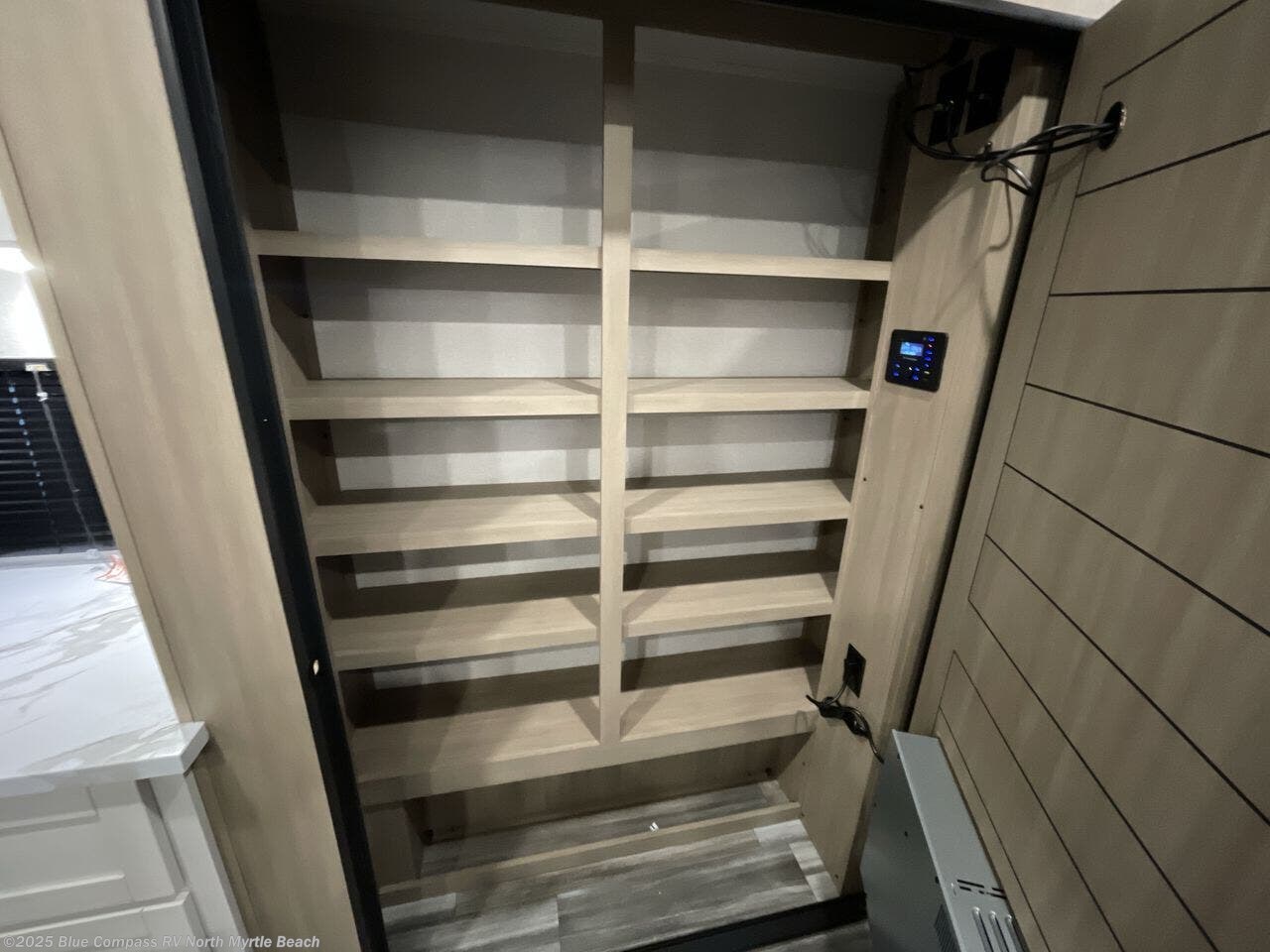 Your crew of four will love extended stays in this triple slide out trailer! Once you've unpacked your bags, you can head to the kitchen to prepare lunch on the cooktop and kitchen island. There is a table and chairs with a bench to dine at, and you can relax on the theater seat after your meal is cleaned up. A front tri-fold sofa will provide more seating space, along with sleeping space for guests. A full bath includes washer and dryer prep if you plan to add these appliances, and the rear private bedroom is sure to make you feel right at home. There is a queen bed slide, a wardrobe, vanity, and large dresser so nothing gets left behind!