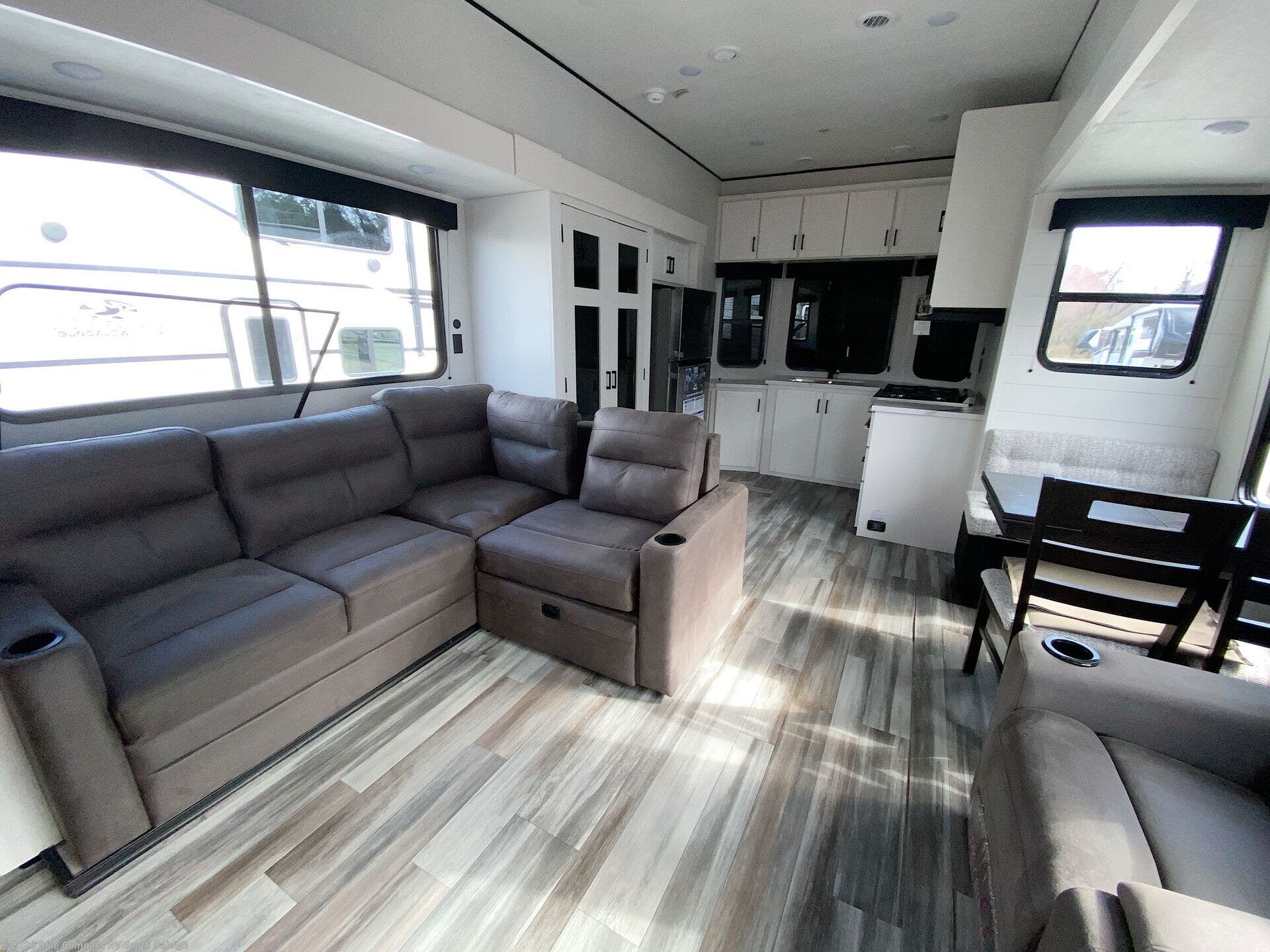 It won't be hard to find comfort in this spacious trailer for eight! The front kitchen features ample counter space to prep meals plus a residential refrigerator and double door pantry for food storage! You can dine at the table and chairs with a bench, then head to the living area to relax on the tri-fold L-lounge with a recliner on rollers. Across from the sliding patio doors, you'll find the spacious full bath, and the steps next to the bath lead to the double loft areas. The little ones will have three bunk mats to sleep on, two loft desks, shelves, and TV prep for added convenience! And don't overlook the spacious rear private bedroom with a queen bed slide, storage space, plus washer and dryer prep if you want the option to make laundry day easier!
