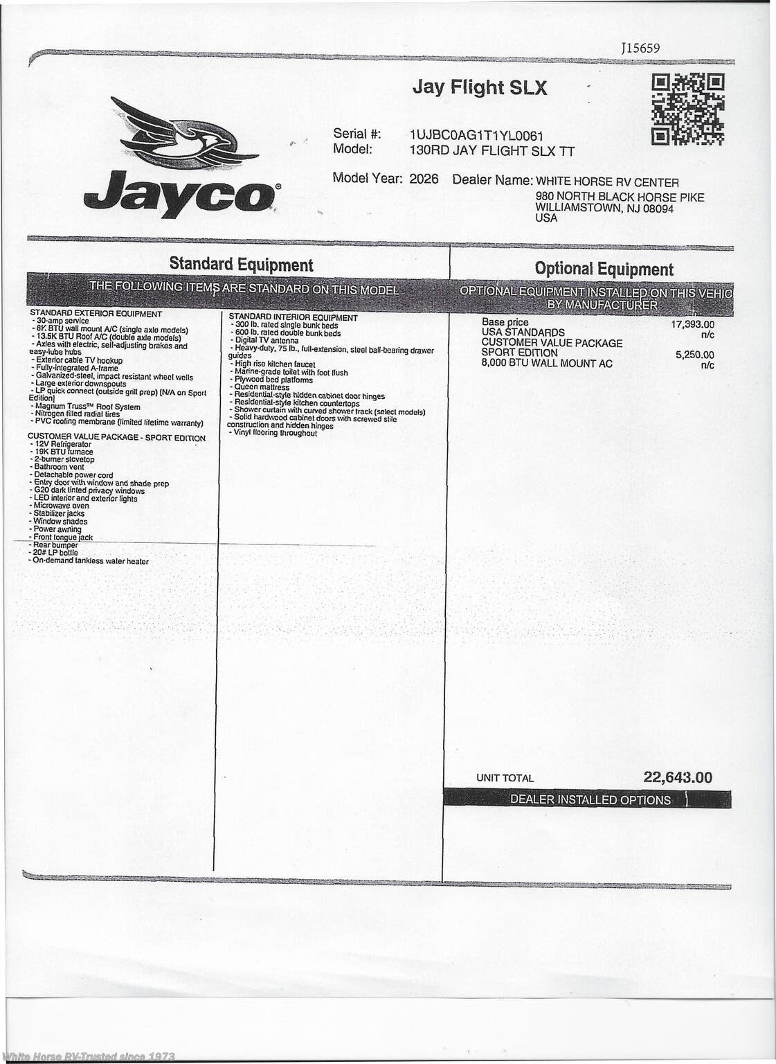 - Please visit, call or text Sales at 856-262-1717, or email for more details, then get ready to enjoy travel in comfort and style in your new 2026 Jayco Jay Flight Sport SLX !