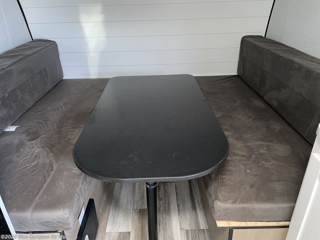 Easy to tow and versatile are just two ways to describe this travel trailer! The front twin beds/bench seats with a table can convert to a king-size bed, and you'll have an overhead shelf to keep your things organized. A two-burner stovetop and microwave will let you cook meals each day, and a 12V refrigerator will keep food fresh. The private bath includes a toilet and shower to clean up in each day, and the dresser just outside the bath will be perfect for clean clothes and towels!