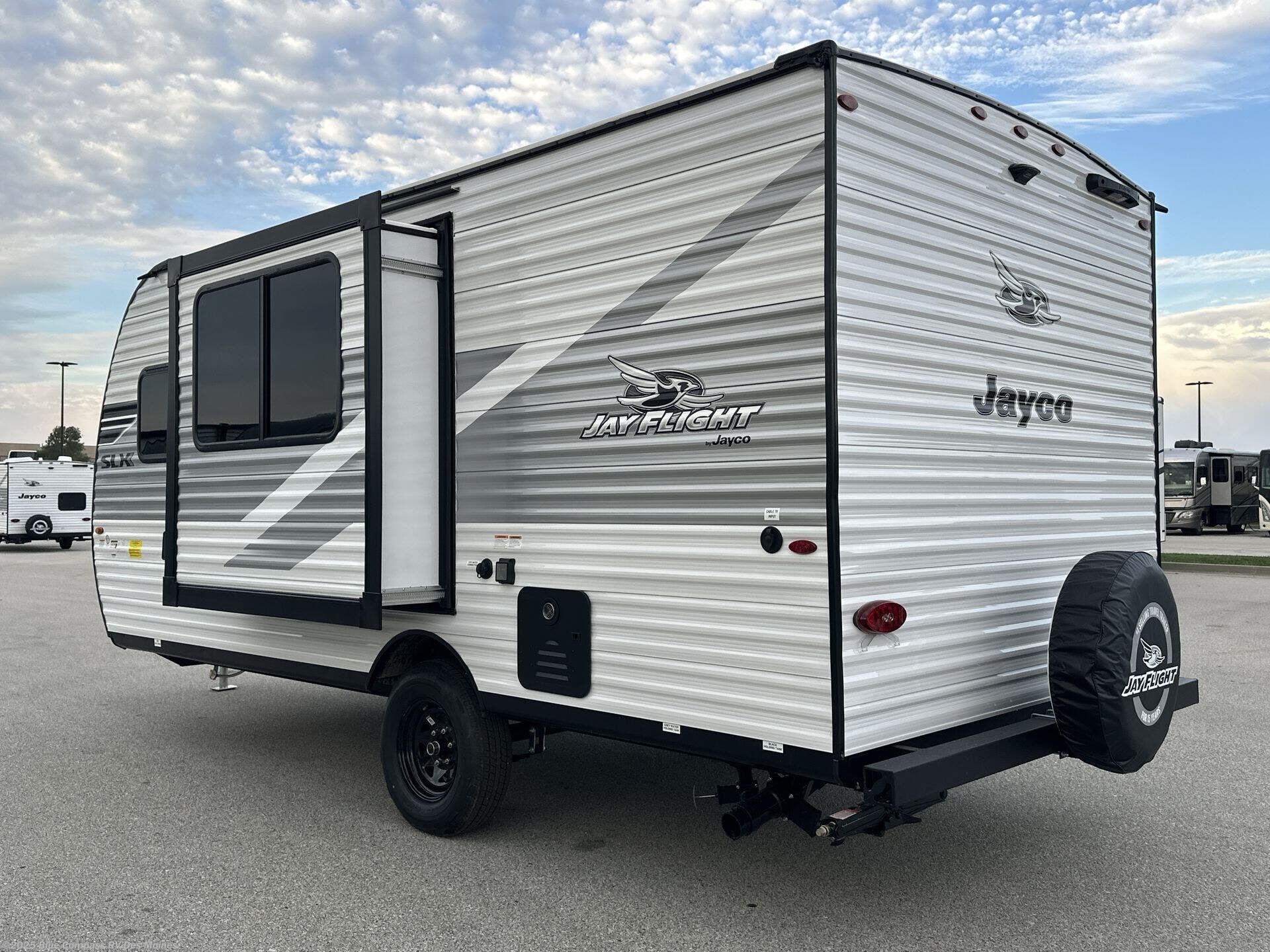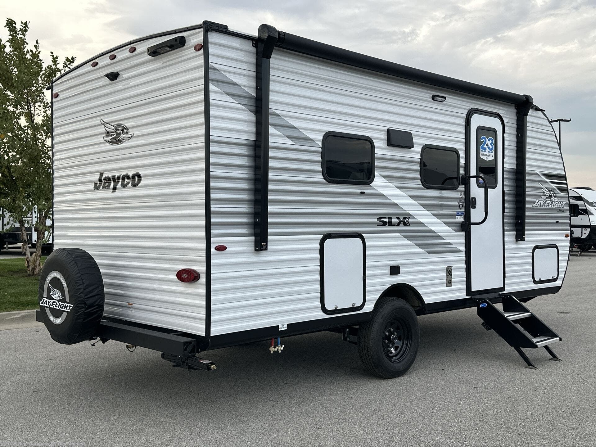 The Jayco Jay Flight SLX travel trailer is quite easy to own because it is lightweight for an easier towing experience. Built on a fully integrated A-frame with galvanized-steel, impact-resistant wheel wells, the Jay Flight SLX has quality at its very foundation. That quality continues on to the electric self-adjusting brakes, easy-lube hubs, Magnum Truss roof system, and LP quick connect. Some of what the mandatory Customer Value Package includes is backup camera prep, Keyed-Alike entry and baggage doors, and an on-demand tankless water heater.