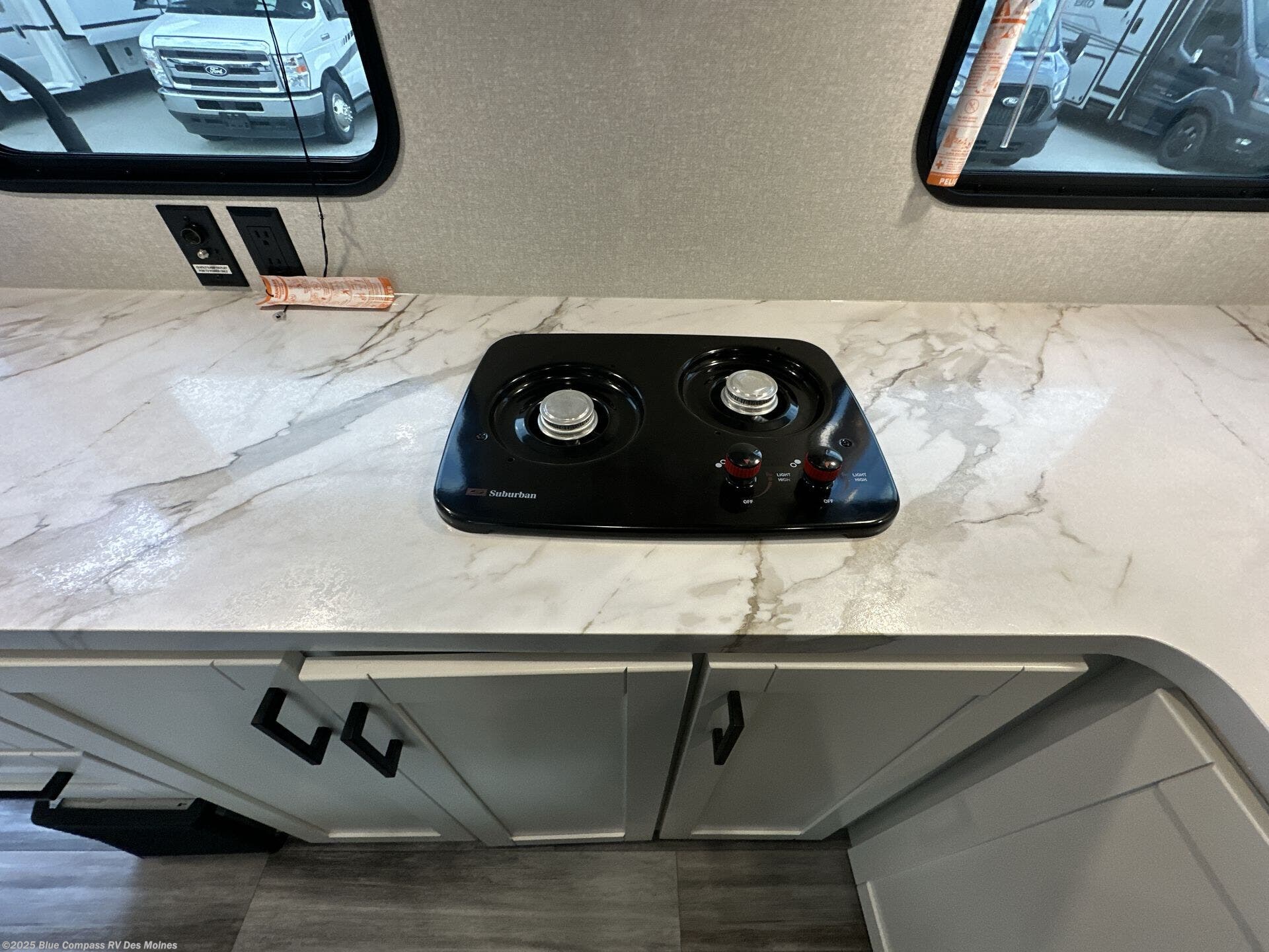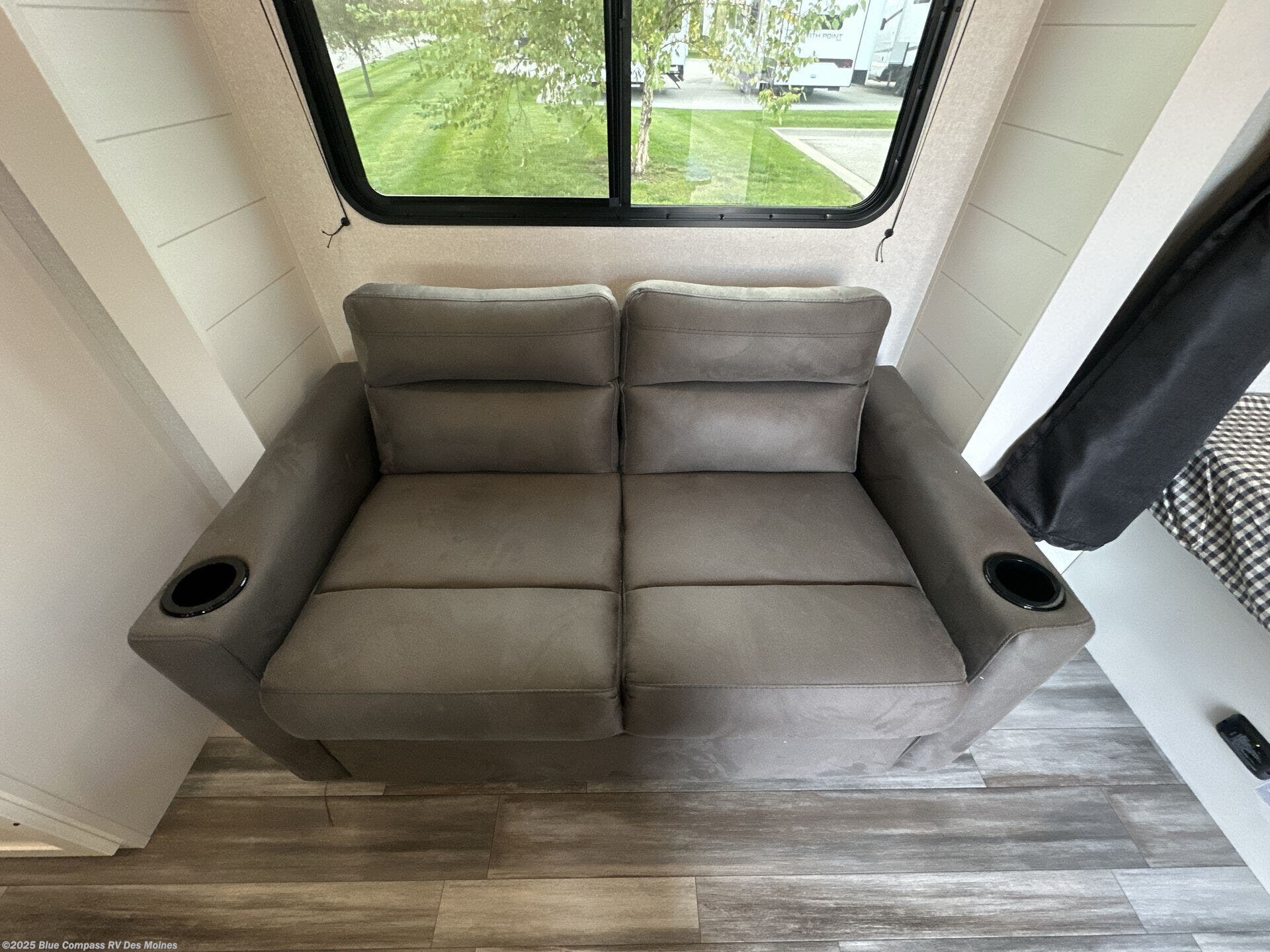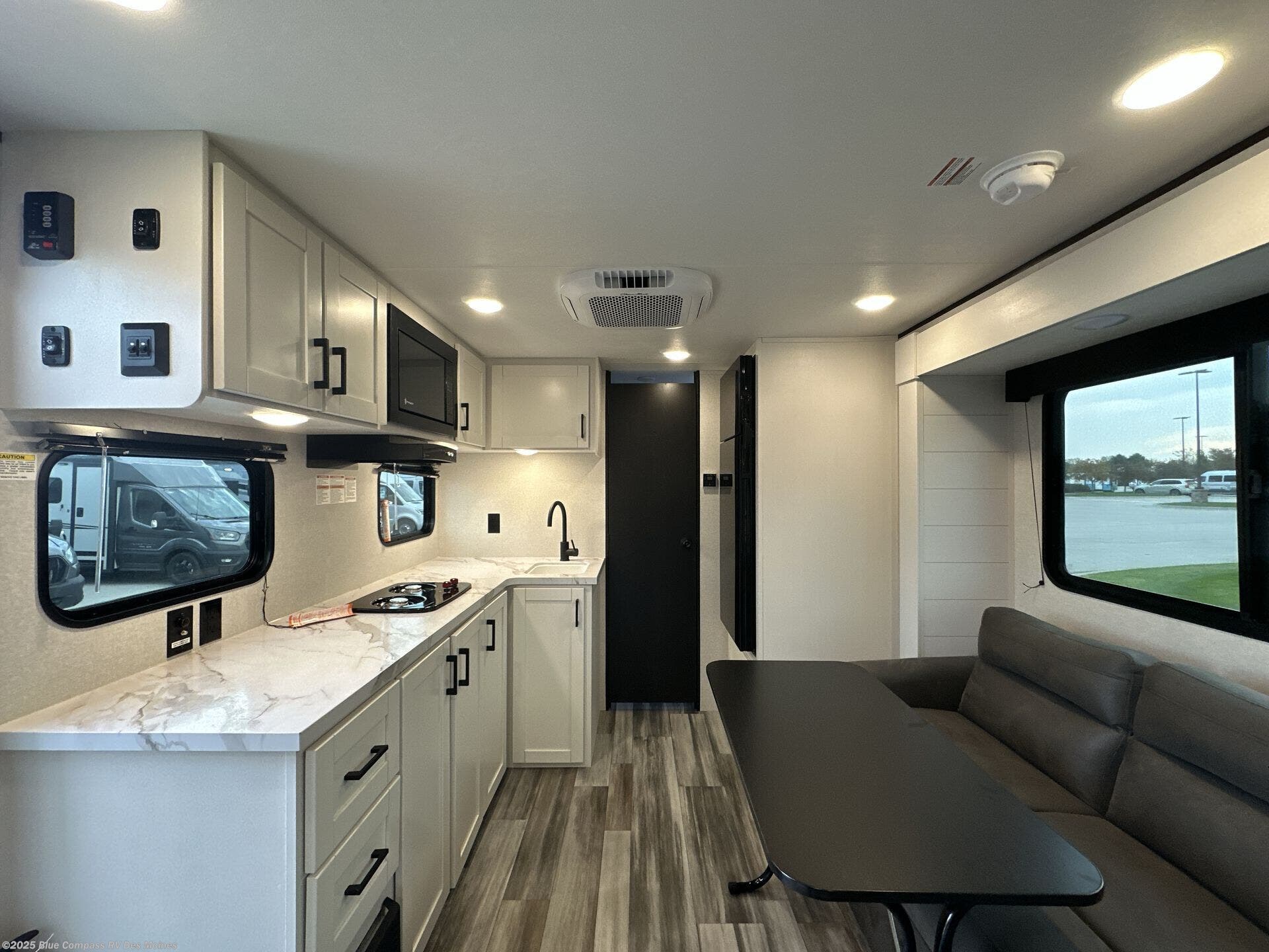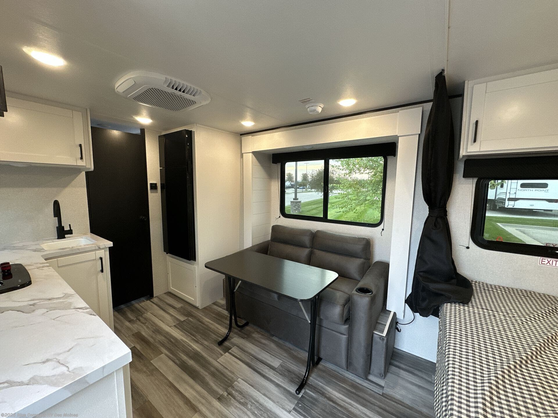 This single-axle couple's travel trailer is sure to bring you happiness at the campground. There is a front queen bed with a privacy curtain if you have a guest staying over on the jack-knife sofa, and the movable table in front of the sofa will provide more floor space when needed. A cooktop and microwave oven will let you make meals each day, and an 8 cu. ft. 12V refrigerator will be perfect for perishables. This model also includes a full rear bath with a shower, a toilet, plus a sink and a linen closet for clean towels.