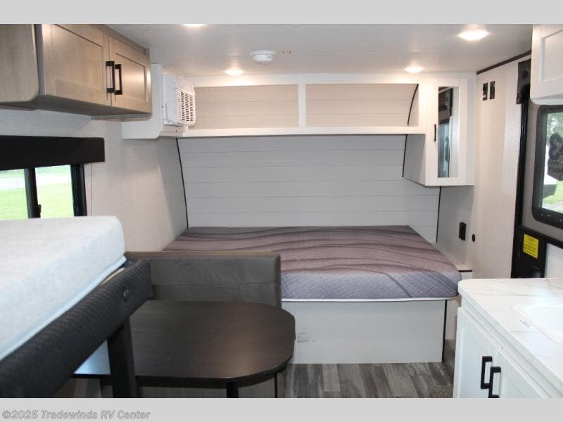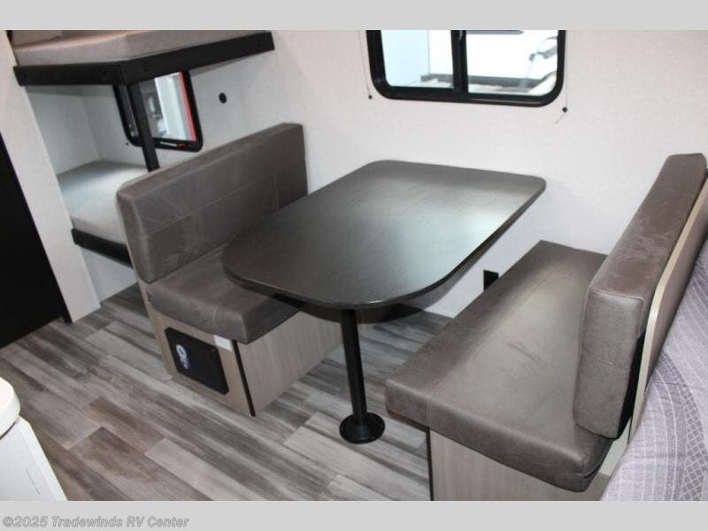 Your crew of five will love camping in this single-axle travel trailer! There are bunk beds in the rear corner and a full bath in the other rear corner for easy nighttime use. You will have the front queen bed to yourselves, along with an overhead shelf and a nightstand/wardrobe for your clothes. The booth dinette provides a place to dine, play games, and even let an extra guest stay over. The Customer Value Package on this Sport Edition model includes a 19K BTU furnace, stabilizer jacks, a power awning, an entry door with a window and shade prep, and many more stand-out features!