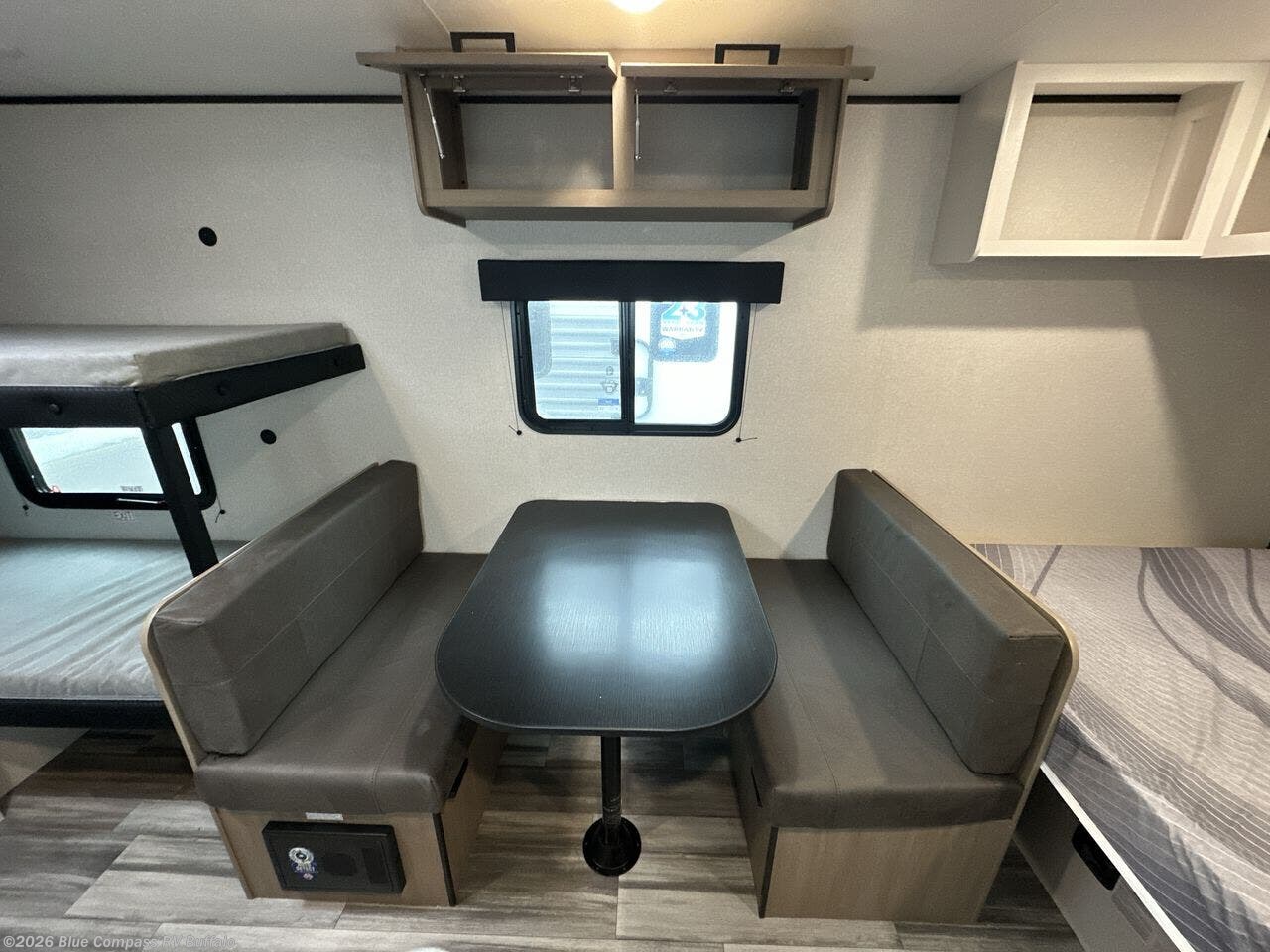 Your crew of five will love camping in this single-axle travel trailer! There are bunk beds in the rear corner and a full bath in the other rear corner for easy nighttime use. You will have the front queen bed to yourselves, along with an overhead shelf and a nightstand/wardrobe for your clothes. The booth dinette provides a place to dine, play games, and even let an extra guest stay over. The Customer Value Package on this Sport Edition model includes a 19K BTU furnace, stabilizer jacks, a power awning, an entry door with a window and shade prep, and many more stand-out features!