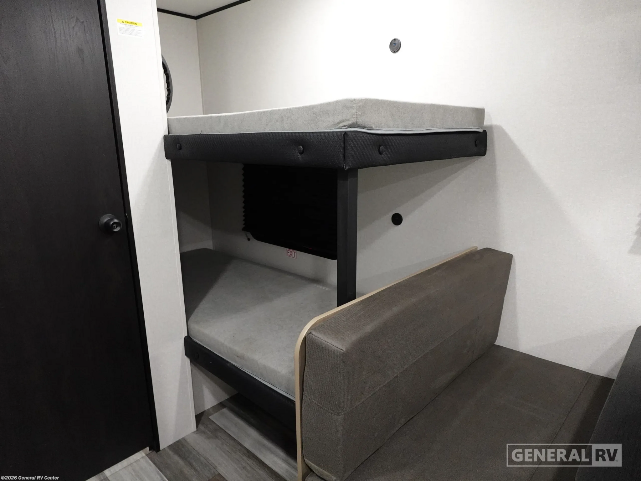 Experience the joy of adventure with the 2026 Jayco Jay Flight 170BH, a marvel of compact design and comfort. This travel trailer is perfect for families, offering sleeping space for up to five with a cozy queen bed and a set of bunk beds. The cleverly designed interior maximizes every inch, providing a seamless blend of functionality and style. Imagine cooking delicious meals on the two-burner cooktop, while the 12V refrigerator keeps your ingredients fresh and ready. The Jay Flight 170BH is not just about indoor comfort; it extends to outdoor enjoyment with a 10' power awning that provides a perfect shaded retreat. With a dry weight of just 3,075 pounds, it's easy to tow, making it an ideal choice for both seasoned travelers and those new to the RV lifestyle. The on-demand tankless water heater ensures you have hot water whenever you need it, enhancing your camping experience. Discover the freedom of the open road with this compact yet spacious travel companion. For more details, visit your nearest General RV dealership.
