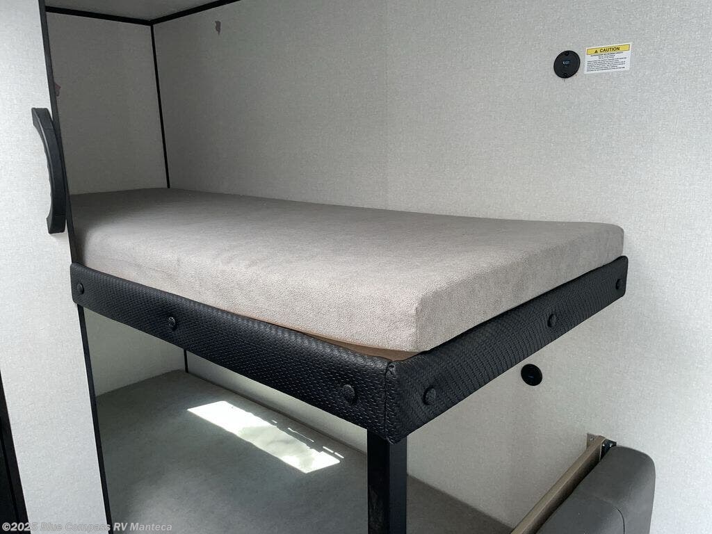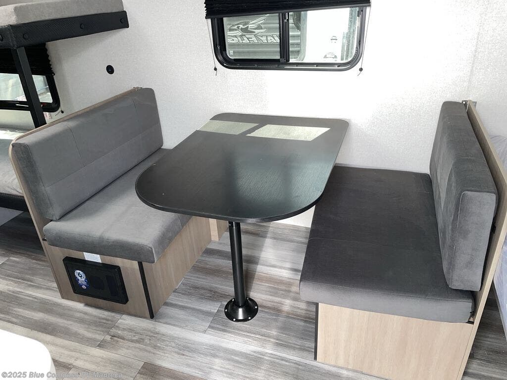 Your crew of five will love camping in this single-axle travel trailer! There are bunk beds in the rear corner and a full bath in the other rear corner for easy nighttime use. You will have the front queen bed to yourselves, along with an overhead shelf and a nightstand/wardrobe for your clothes. The booth dinette provides a place to dine, play games, and even let an extra guest stay over. The Customer Value Package on this Sport Edition model includes a 19K BTU furnace, stabilizer jacks, a power awning, an entry door with a window and shade prep, and many more stand-out features!