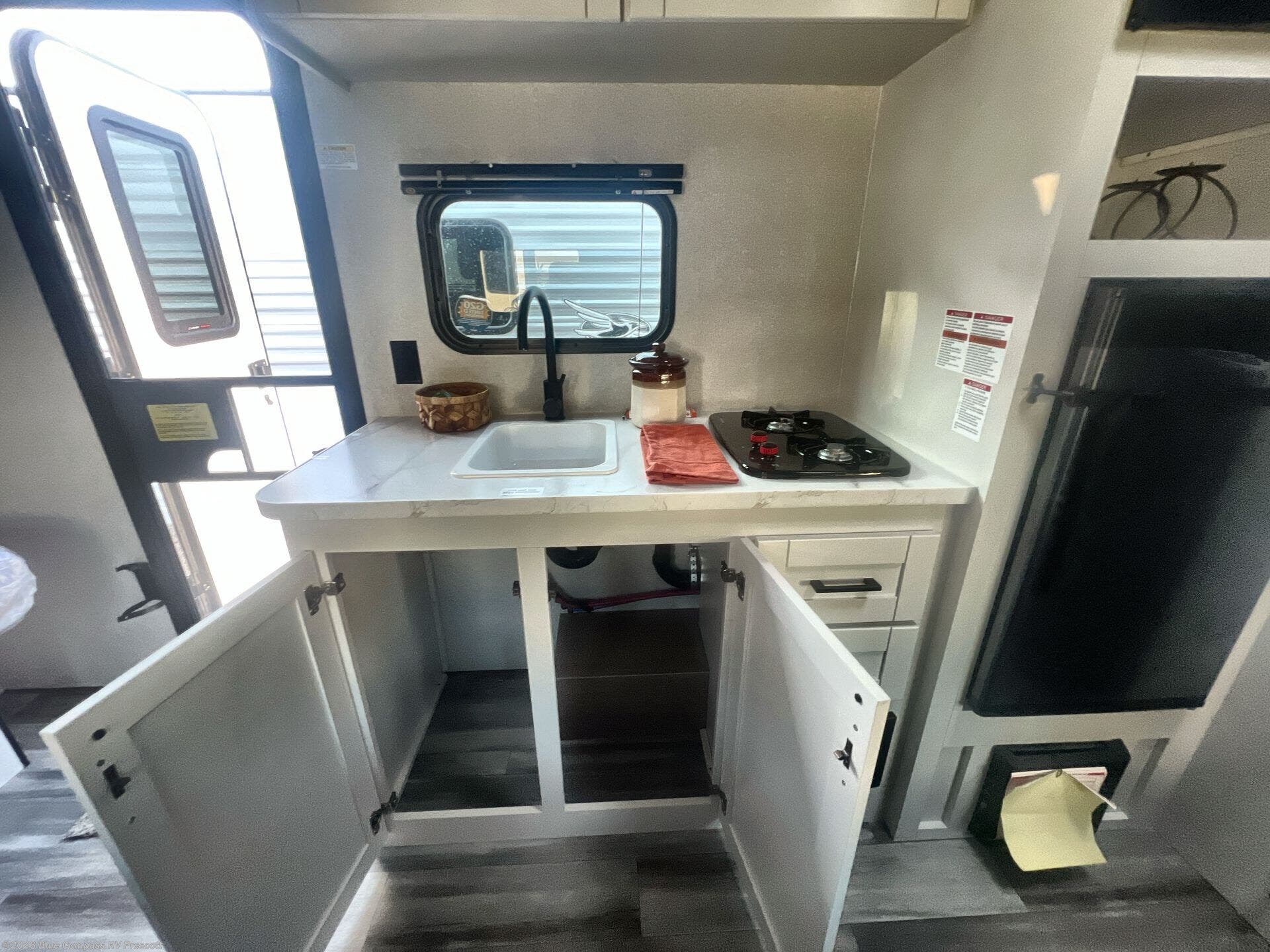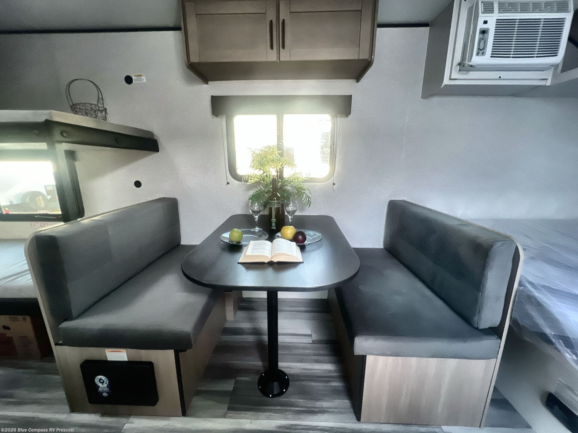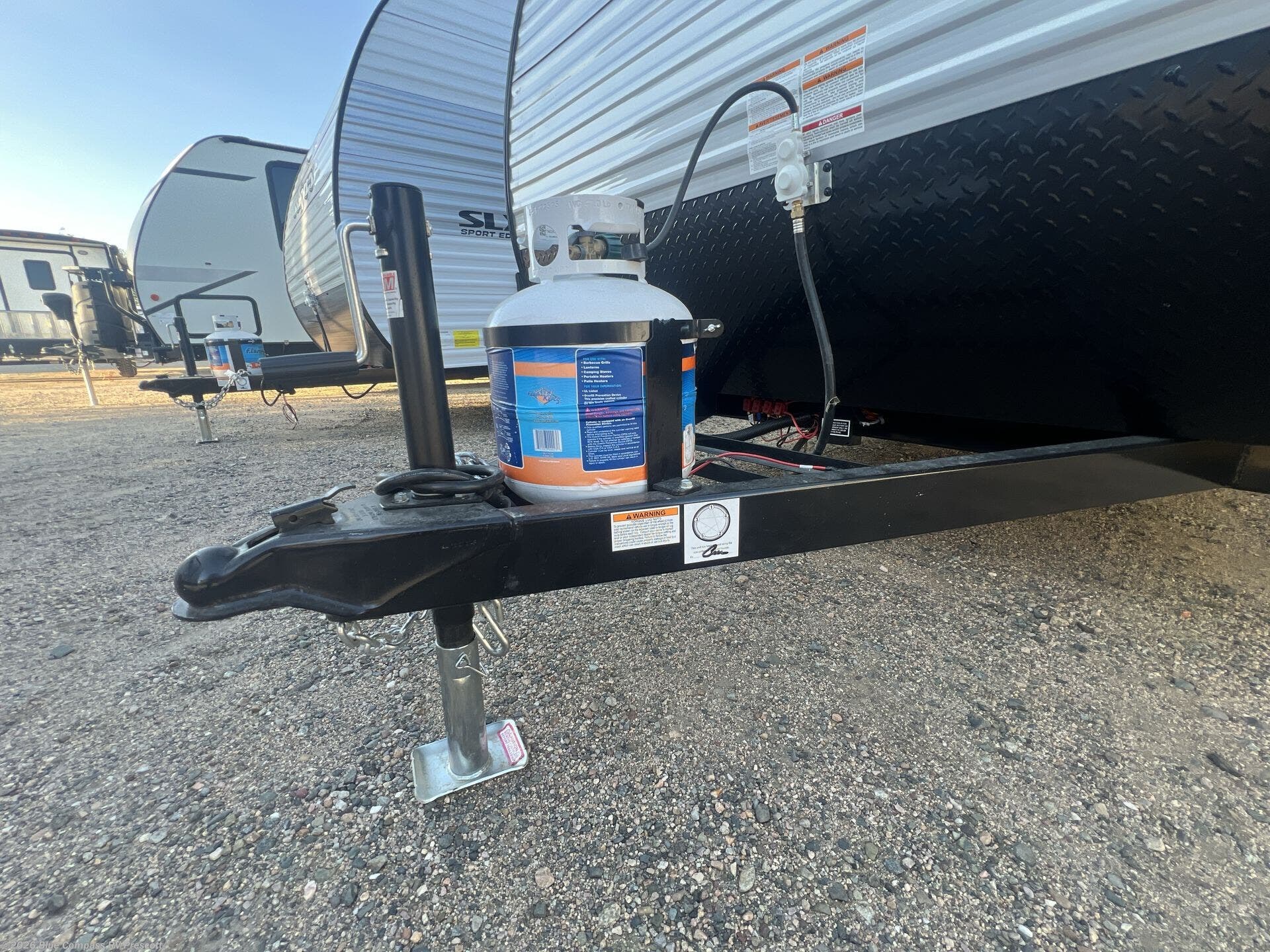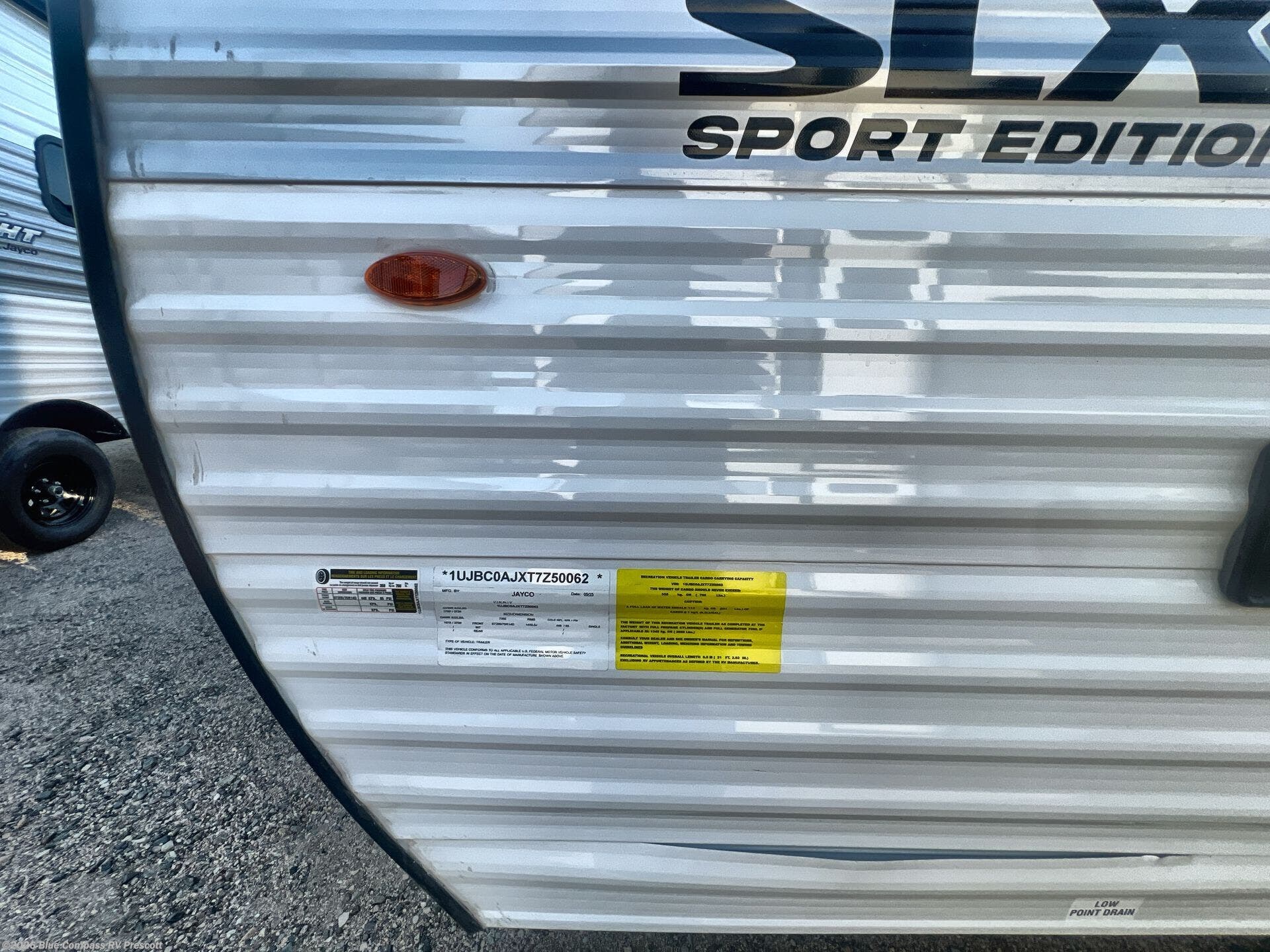 Your crew of five will love camping in this single-axle travel trailer! There are bunk beds in the rear corner and a full bath in the other rear corner for easy nighttime use. You will have the front queen bed to yourselves, along with an overhead shelf and a nightstand/wardrobe for your clothes. The booth dinette provides a place to dine, play games, and even let an extra guest stay over. The Customer Value Package on this Sport Edition model includes a 19K BTU furnace, stabilizer jacks, a power awning, an entry door with a window and shade prep, and many more stand-out features!