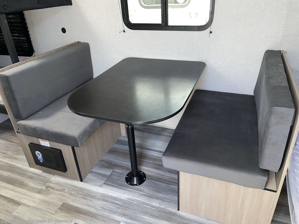 Your crew of five will love camping in this single-axle travel trailer! There are bunk beds in the rear corner and a full bath in the other rear corner for easy nighttime use. You will have the front queen bed to yourselves, along with an overhead shelf and a nightstand/wardrobe for your clothes. The booth dinette provides a place to dine, play games, and even let an extra guest stay over. The Customer Value Package on this Sport Edition model includes a 19K BTU furnace, stabilizer jacks, a power awning, an entry door with a window and shade prep, and many more stand-out features!