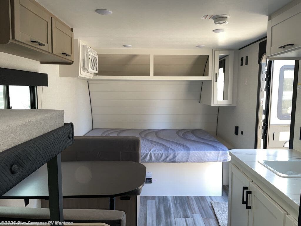 Your crew of five will love camping in this single-axle travel trailer! There are bunk beds in the rear corner and a full bath in the other rear corner for easy nighttime use. You will have the front queen bed to yourselves, along with an overhead shelf and a nightstand/wardrobe for your clothes. The booth dinette provides a place to dine, play games, and even let an extra guest stay over. The Customer Value Package on this Sport Edition model includes a 19K BTU furnace, stabilizer jacks, a power awning, an entry door with a window and shade prep, and many more stand-out features!