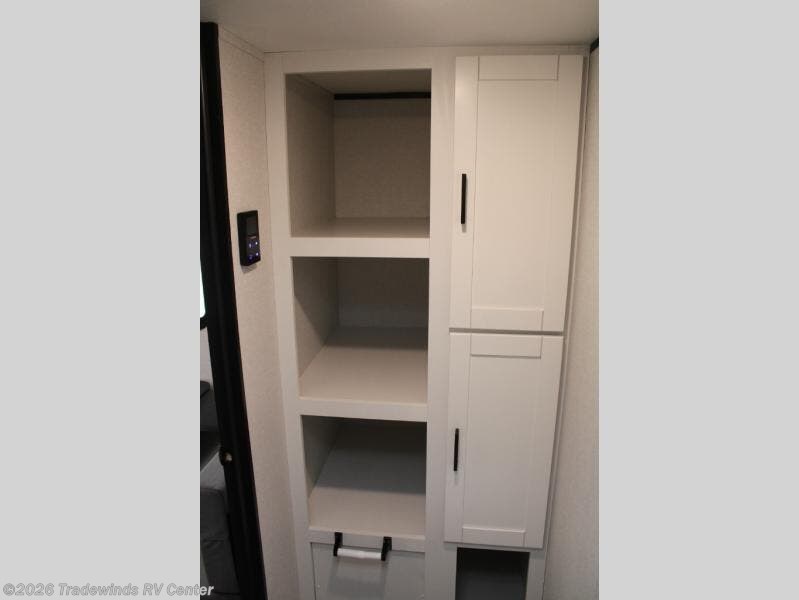 This travel trailer includes everything you need for fun trips at the lake. When you arrive at the campground, you can unload the exterior storage, then put out the 10' power awning. The booth dinette inside will provide a place to dine together, and the full rear bath with a 24" x 32" shower will make it easier than ever to clean up after a day of hiking. A front RV queen bed will provide a great night's rest, and the overhead shelf will be perfect for books or personal belongings. The optional STX Edition can be added on this model which features 16 in. off-road tires, triple entry steps, a power tongue jack, and more!