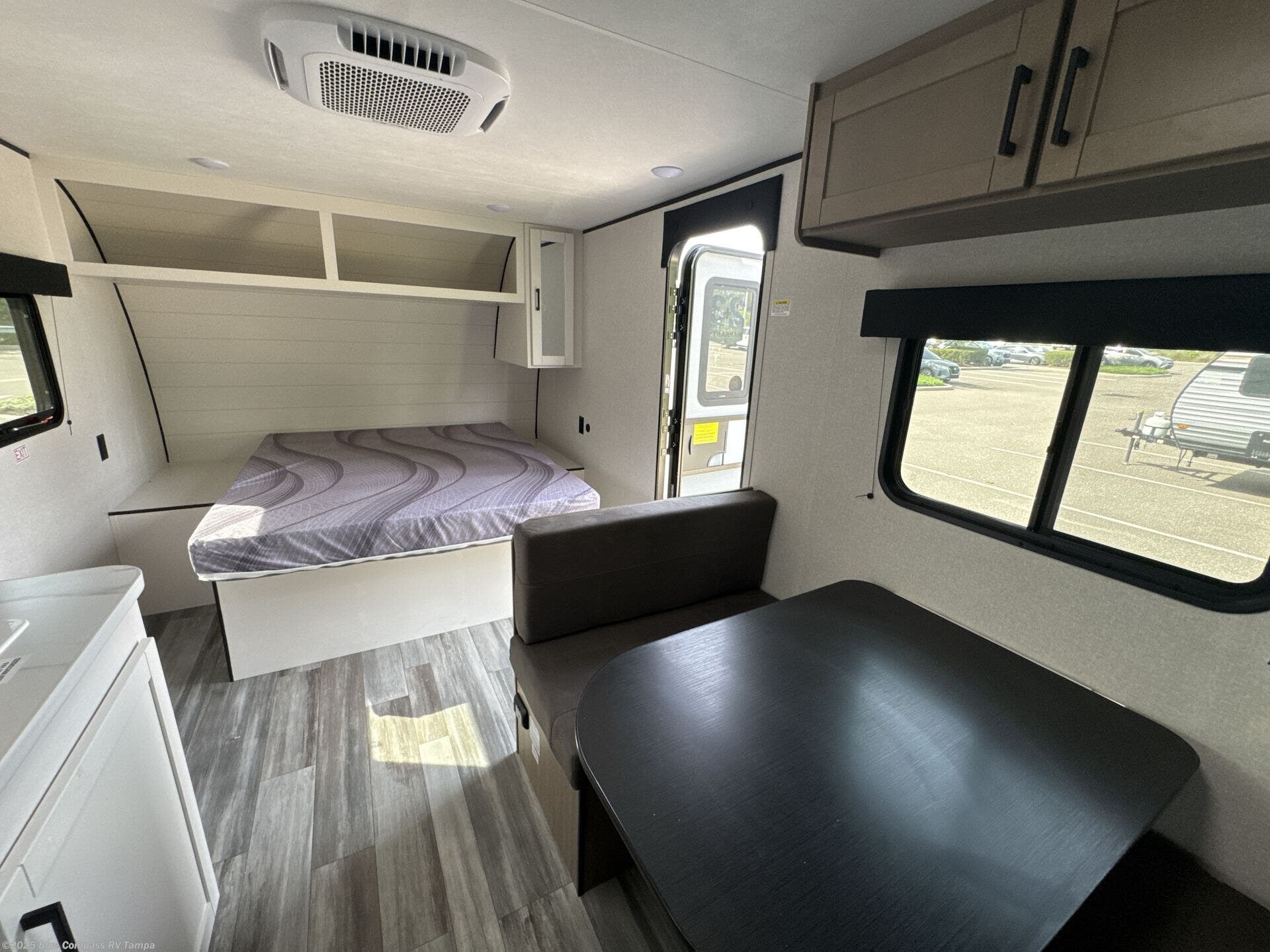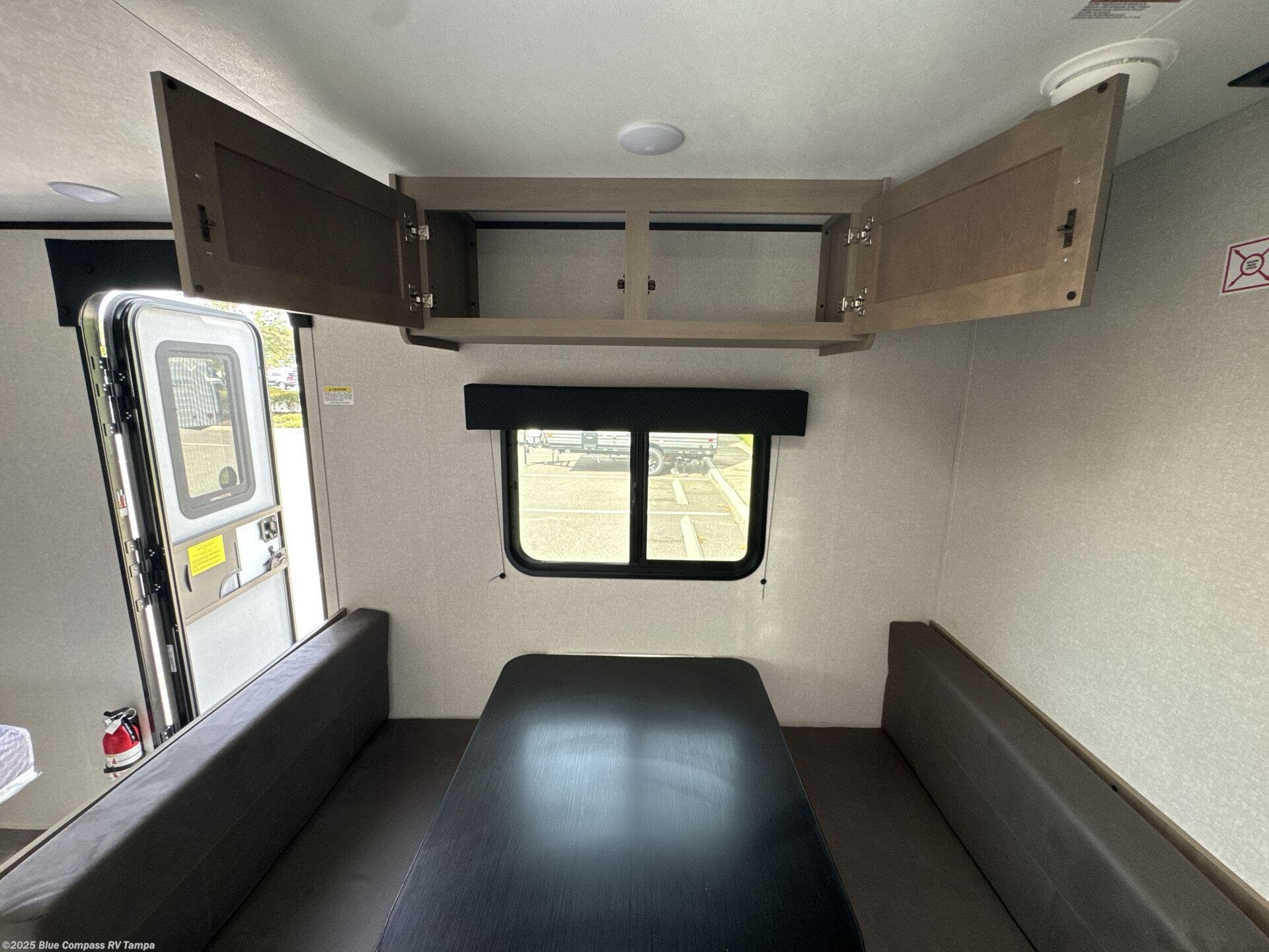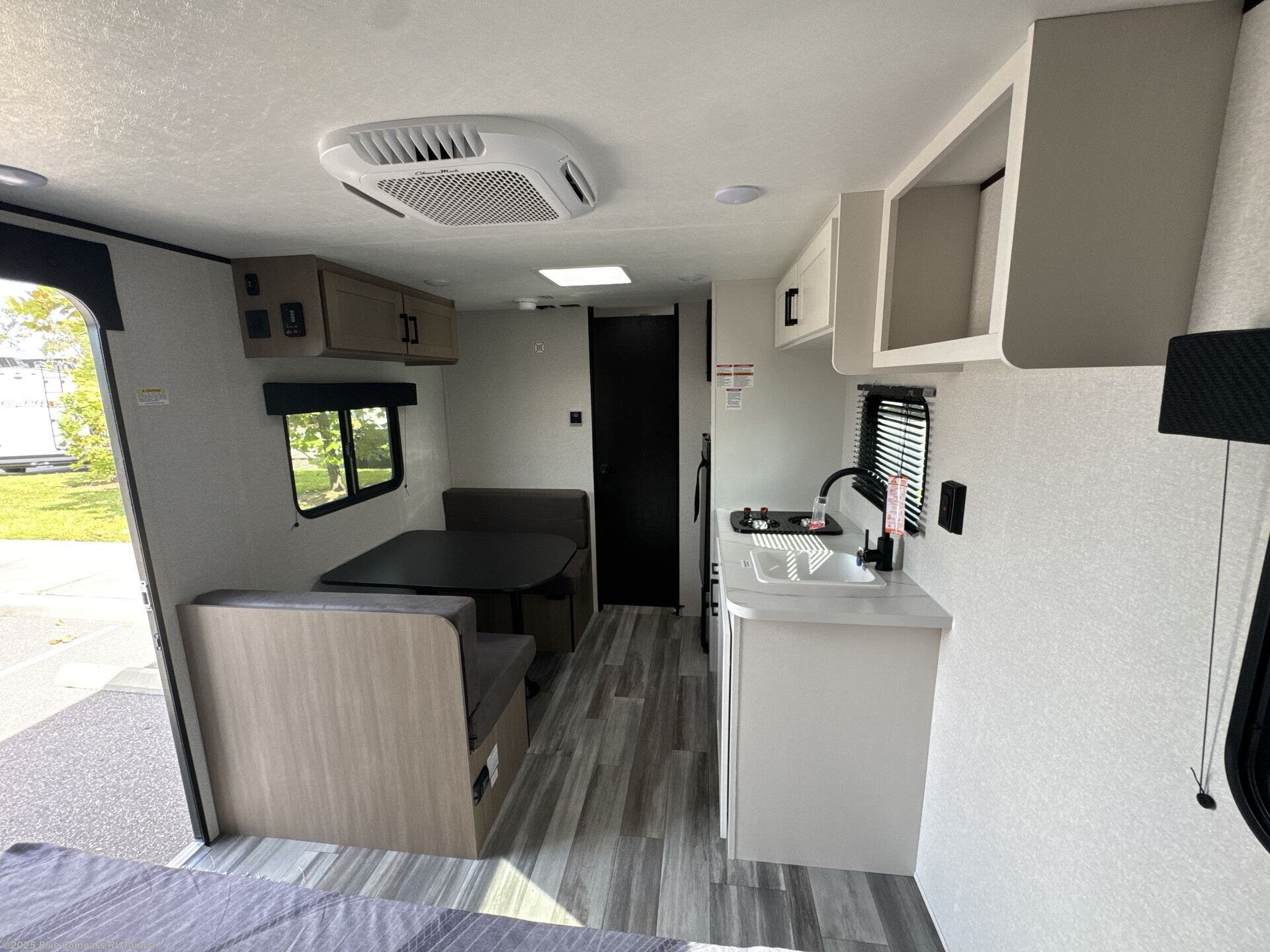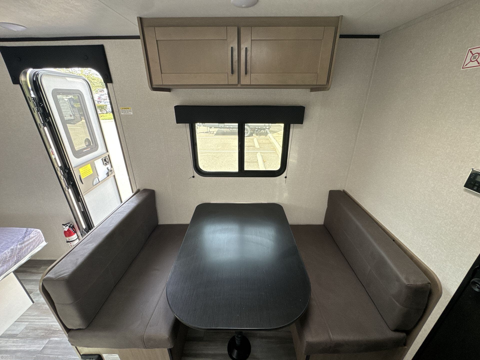 This travel trailer includes everything you need for fun trips at the lake. When you arrive at the campground, you can unload the exterior storage, then put out the 10' power awning. The booth dinette inside will provide a place to dine together, and the full rear bath with a shower will make it easier than ever to clean up after a day of hiking. A front RV queen bed will provide a great night's rest, and the overhead shelf will be perfect for books or personal belongings.