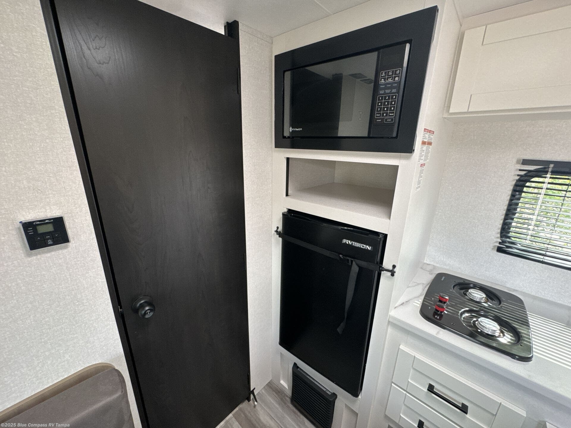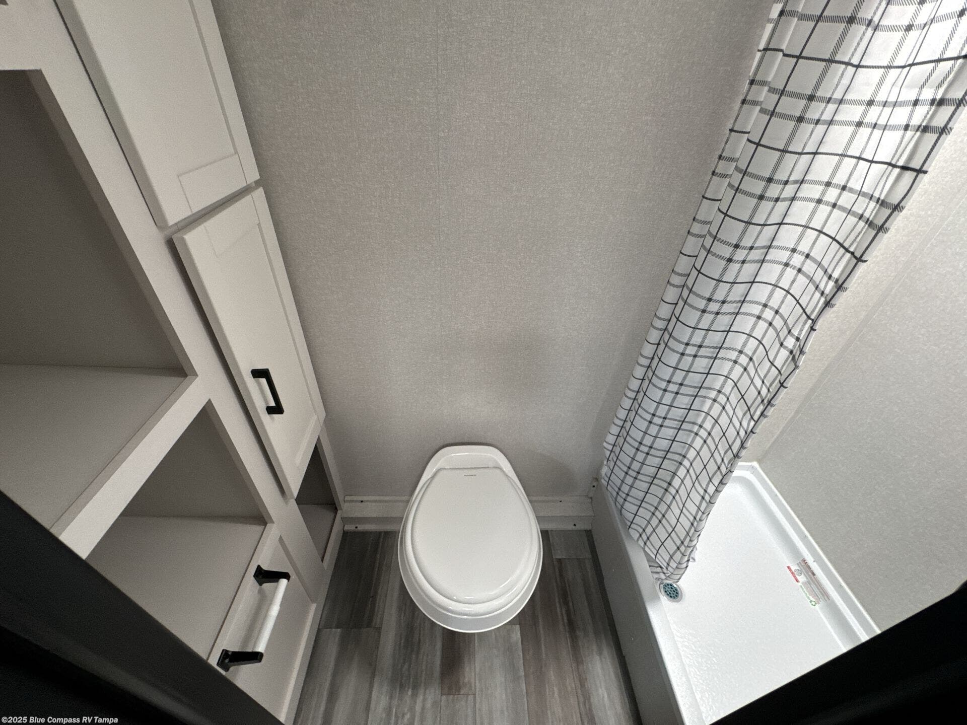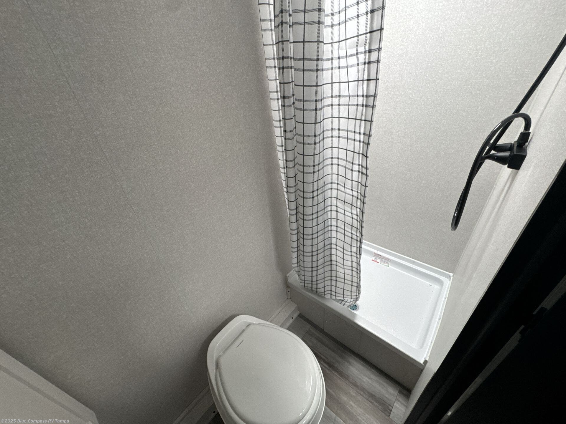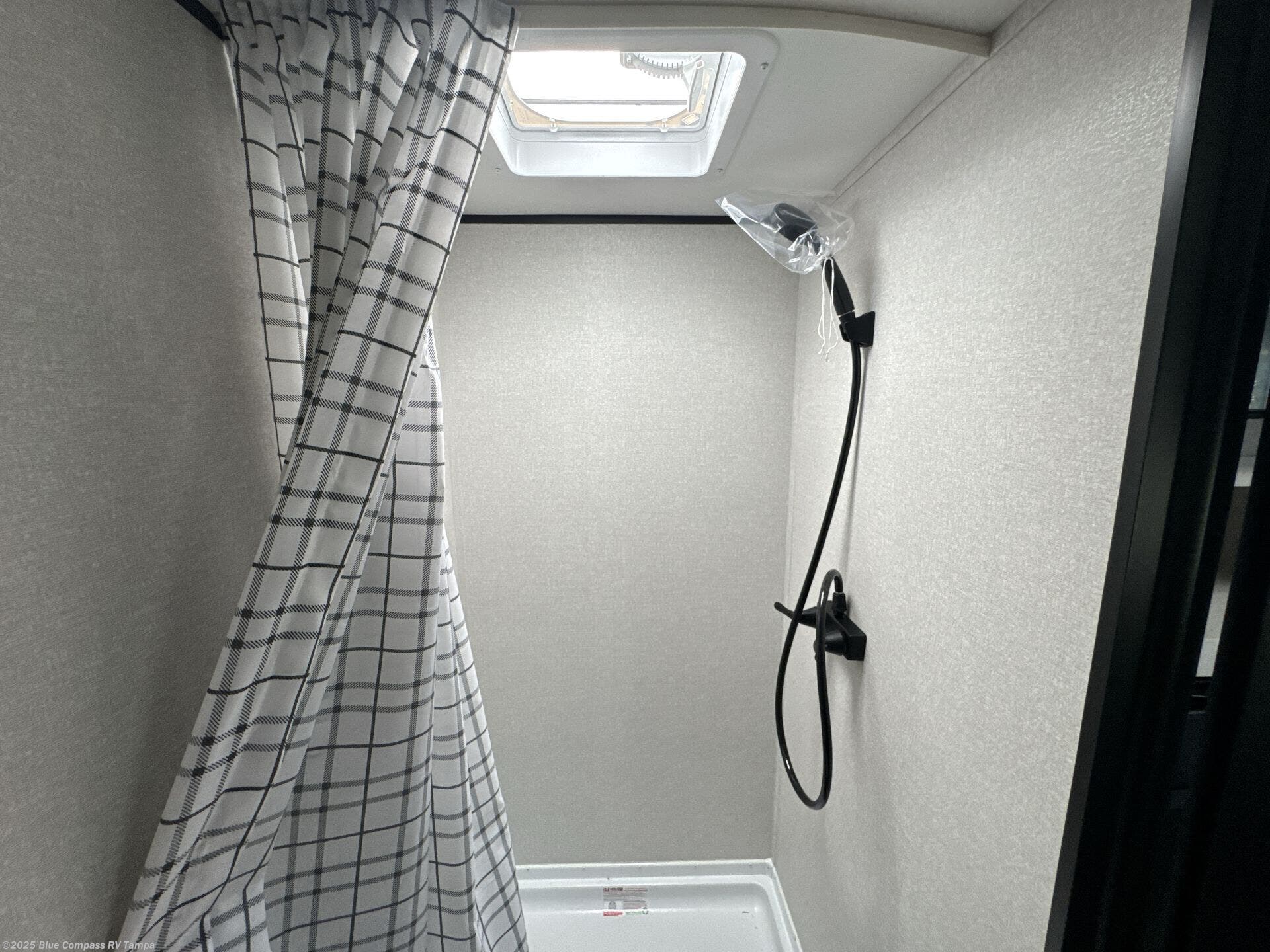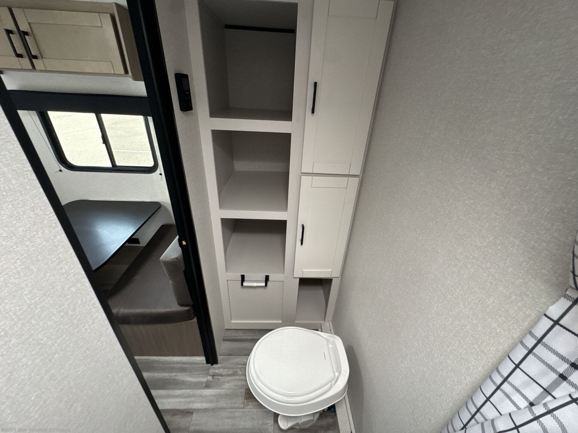 This travel trailer includes everything you need for fun trips at the lake. When you arrive at the campground, you can unload the exterior storage, then put out the 10' power awning. The booth dinette inside will provide a place to dine together, and the full rear bath with a shower will make it easier than ever to clean up after a day of hiking. A front RV queen bed will provide a great night's rest, and the overhead shelf will be perfect for books or personal belongings.