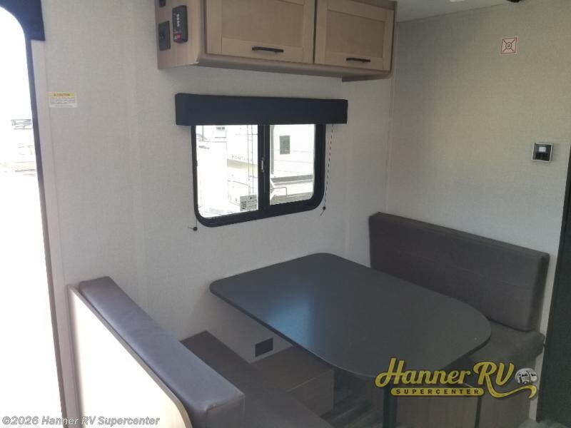 This travel trailer includes everything you need for fun trips at the lake. When you arrive at the campground, you can unload the exterior storage, then put out the 10' power awning. The booth dinette inside will provide a place to dine together, and the full rear bath with a shower will make it easier than ever to clean up after a day of hiking. A front RV queen bed will provide a great night's rest, and the overhead shelf will be perfect for books or personal belongings.