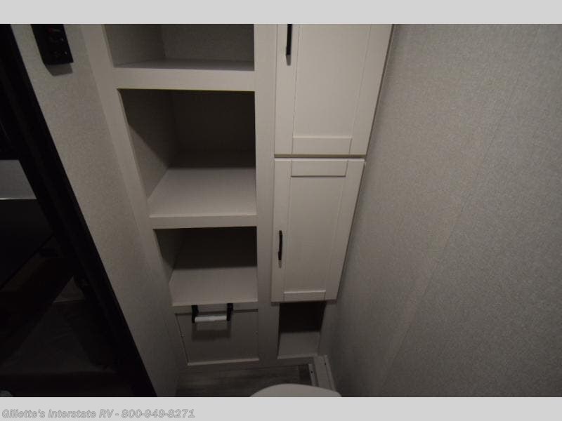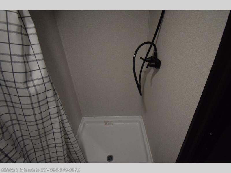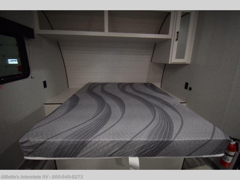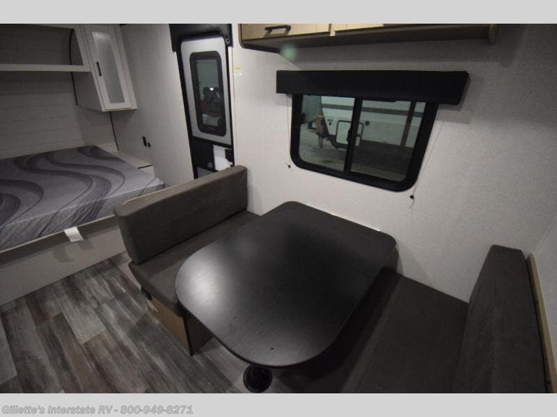 This travel trailer includes everything you need for fun trips at the lake. When you arrive at the campground, you can unload the exterior storage, then put out the 10' power awning. The booth dinette inside will provide a place to dine together, and the full rear bath with a shower will make it easier than ever to clean up after a day of hiking. A front RV queen bed will provide a great night's rest, and the overhead shelf will be perfect for books or personal belongings.