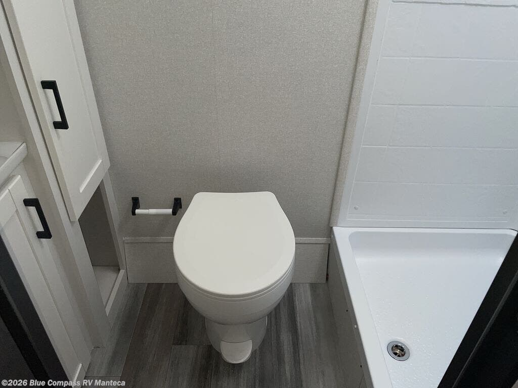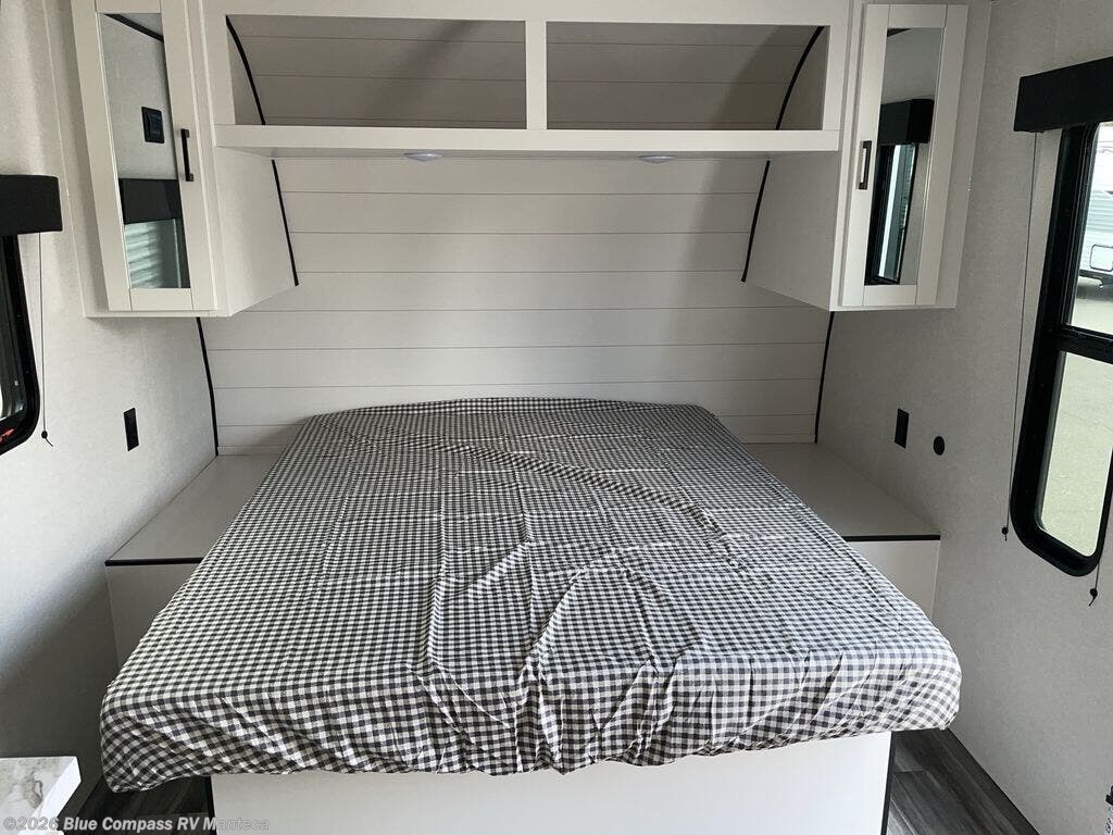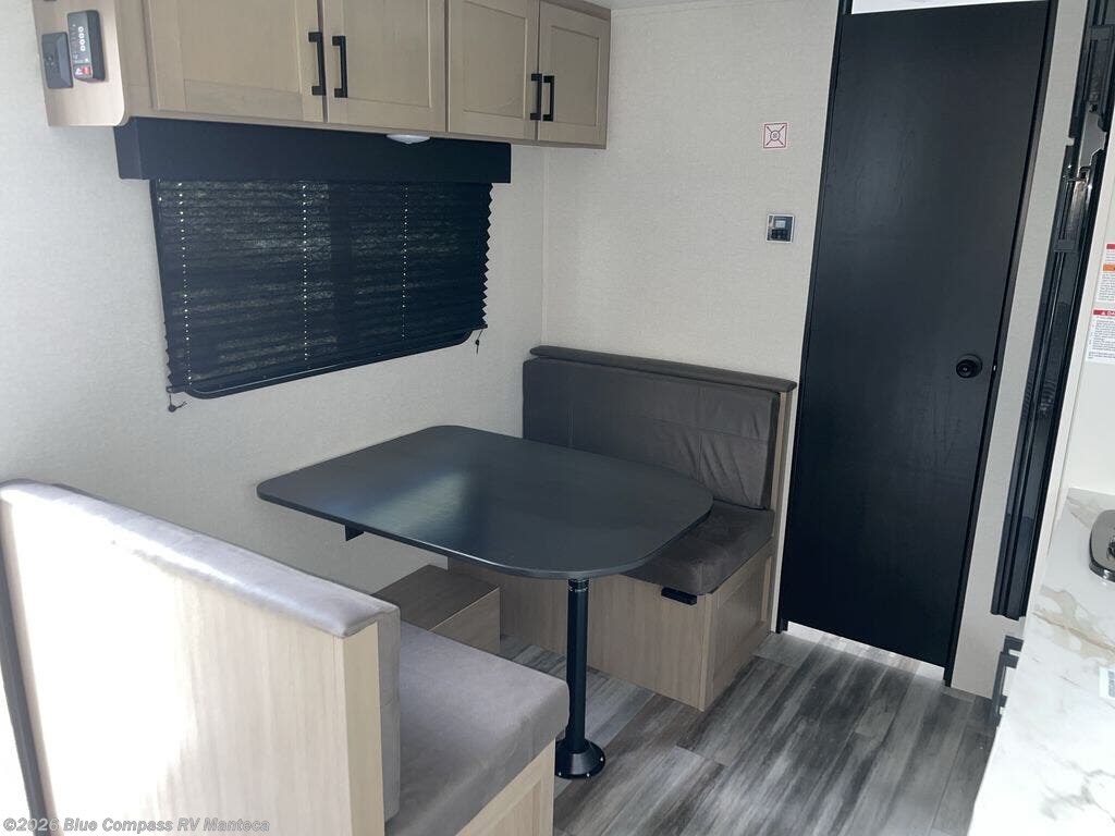 This travel trailer includes everything you need for fun trips at the lake. When you arrive at the campground, you can unload the exterior storage, then put out the 10' power awning. The booth dinette inside will provide a place to dine together, and the full rear bath with a shower will make it easier than ever to clean up after a day of hiking. A front RV queen bed will provide a great night's rest, and the overhead shelf will be perfect for books or personal belongings.